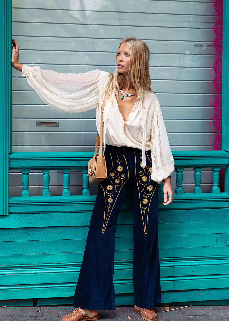 Catch A Falling Star Velvet Flares - Small/ Navy rrp$400
