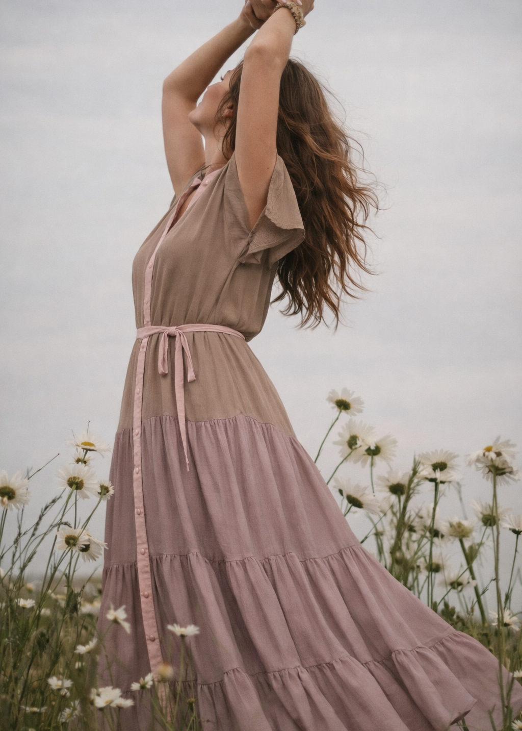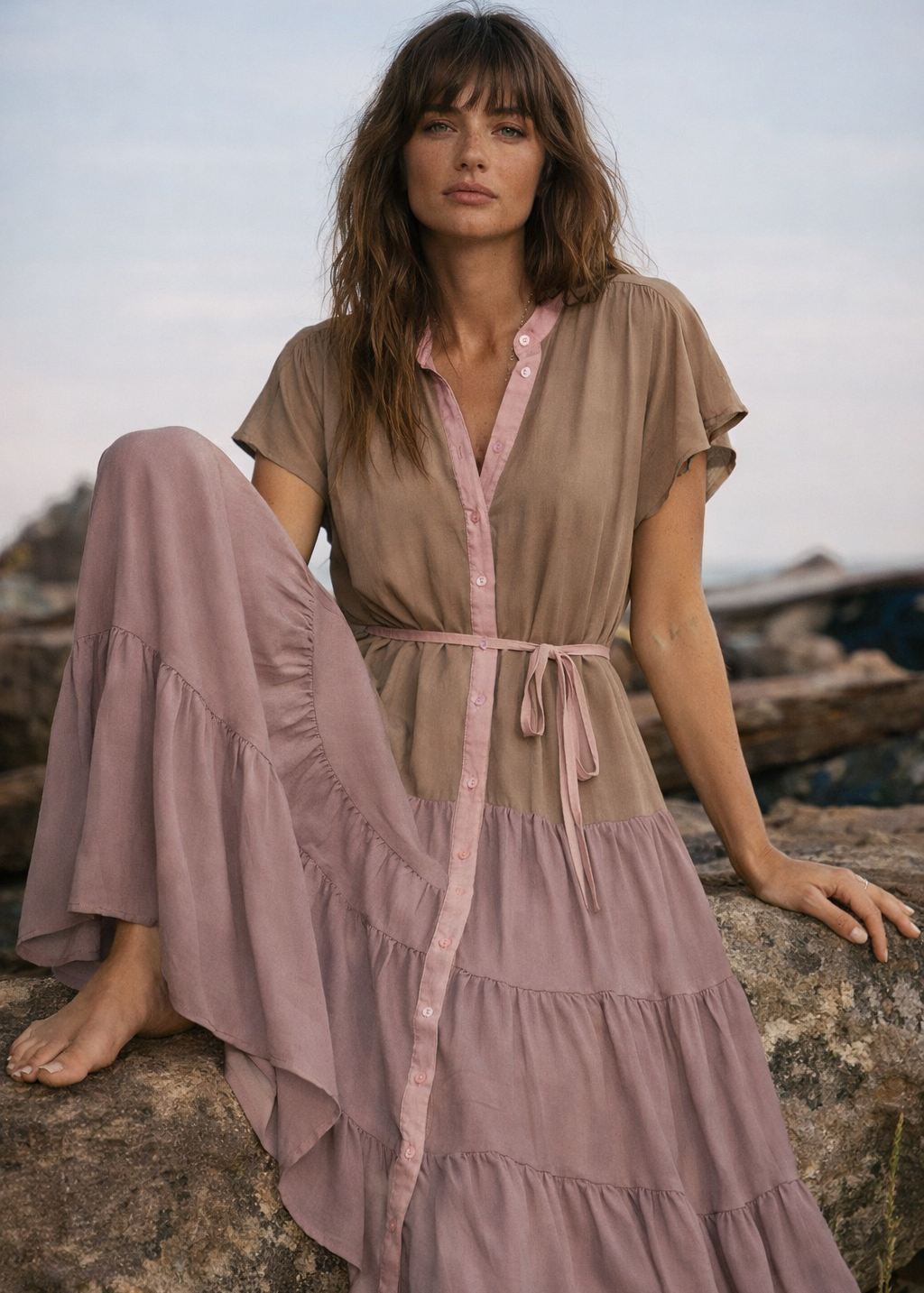 Hand-Dyed Botanical Turtleneck Top – Earth Tone Boho S/M