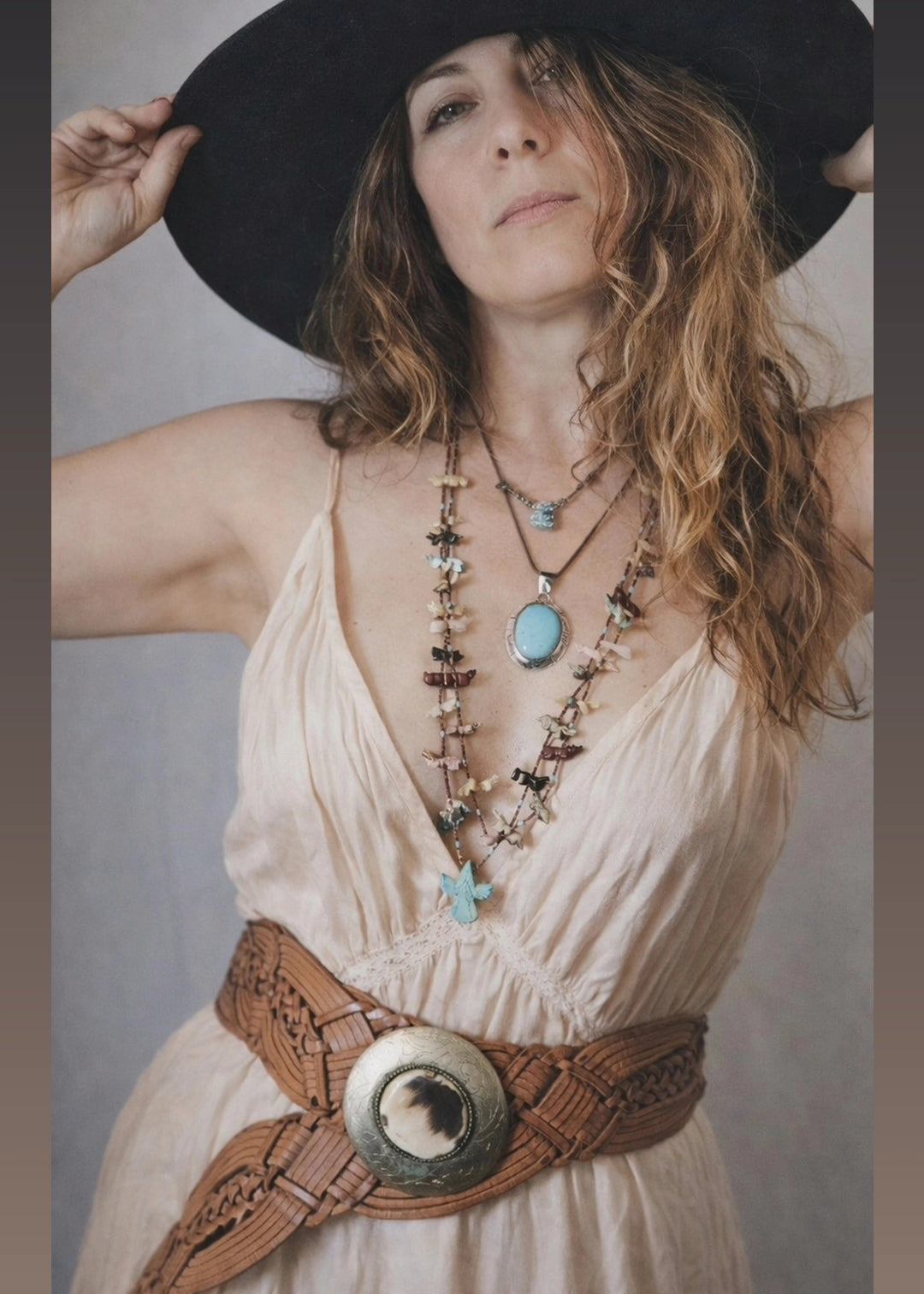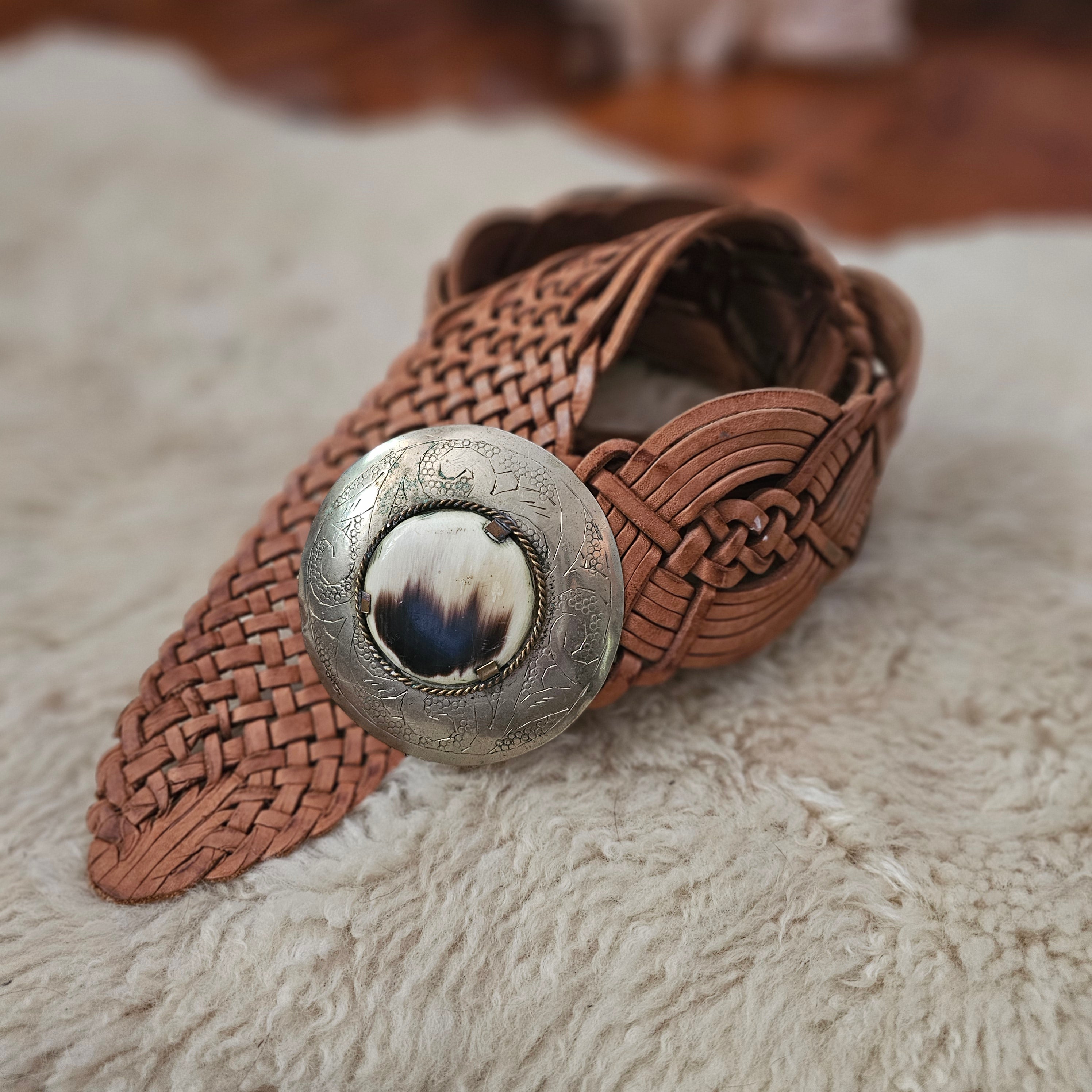 Vintage Woven Leather Concho Belt – Tan | Boho Western Statement Belt (Adjustable Fit)