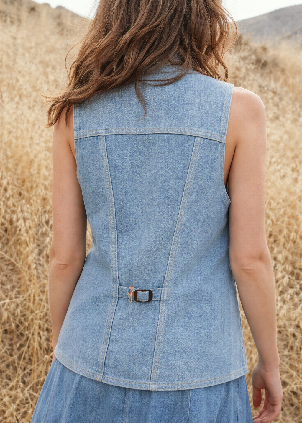 GENUINE VINTAGE 70s denim vest with button-up 10/12