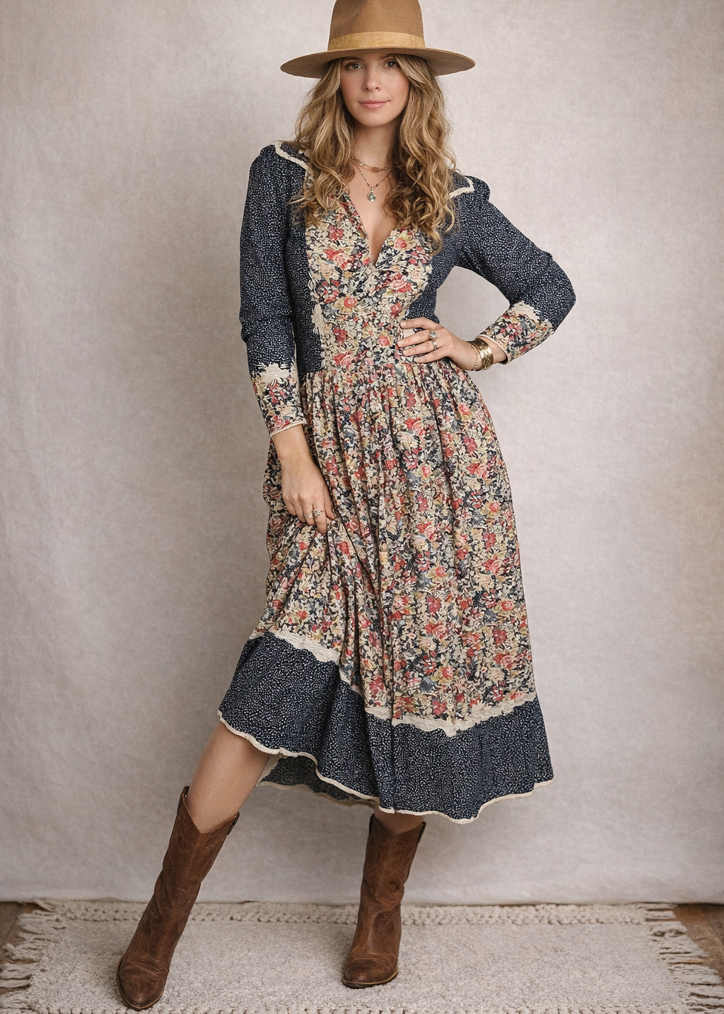 Vintage 70s Malika Prairie Dress – Edwardian Folk Revival M\10
