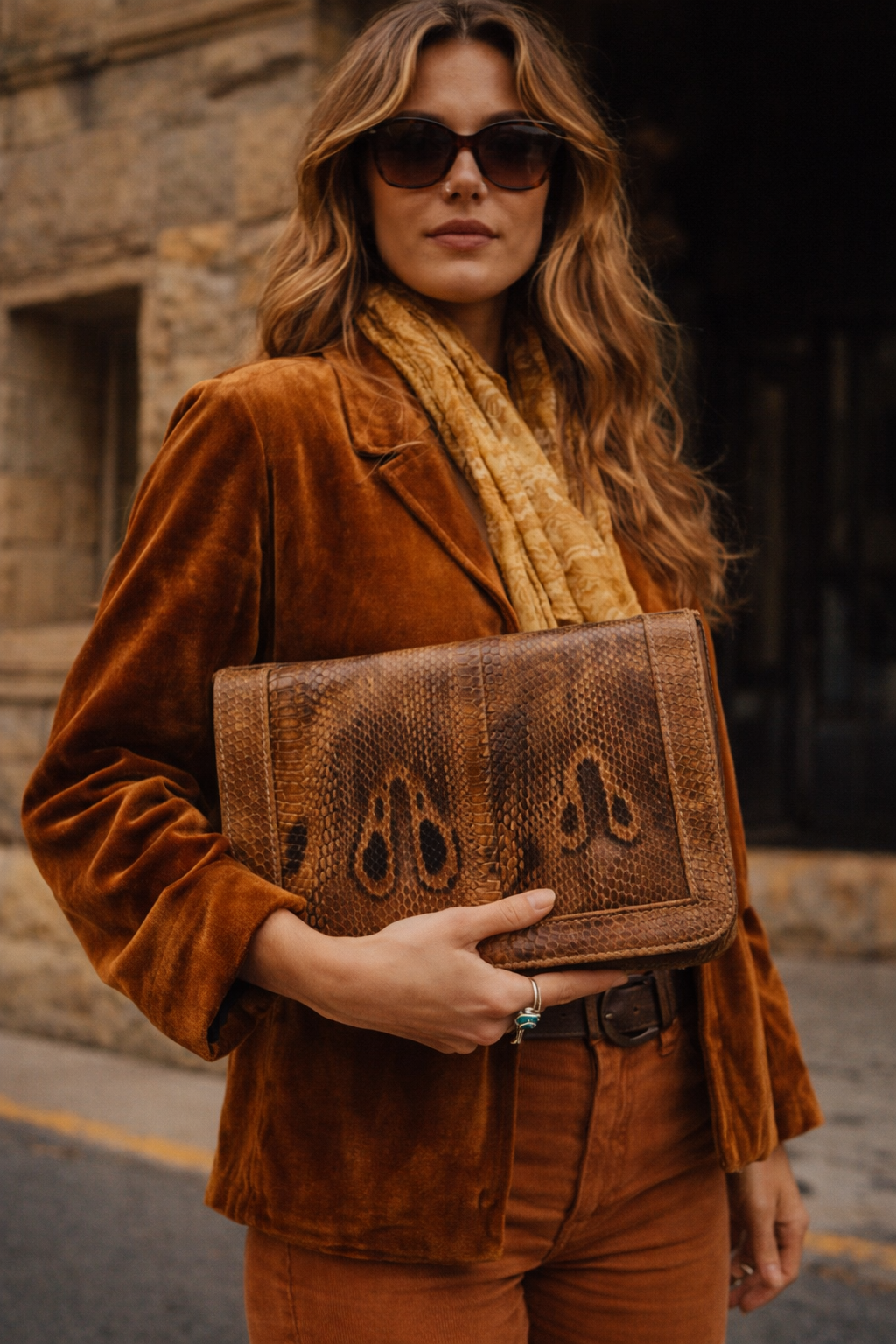 - Rich brown snakeskin tones