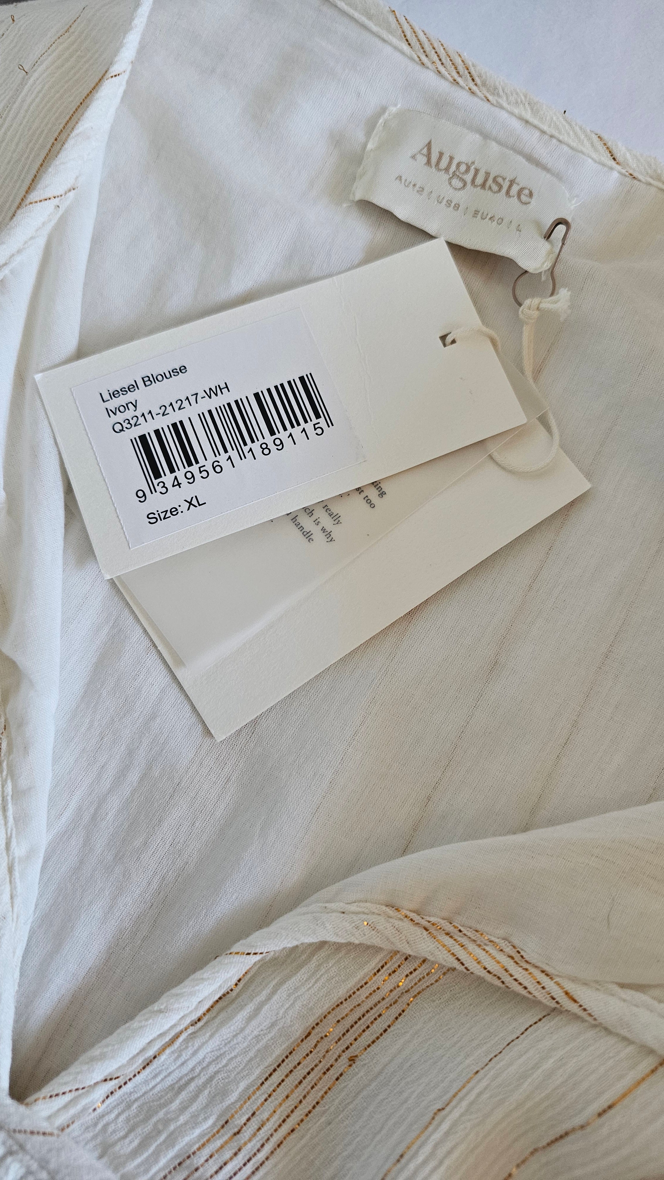 Auguste Liesel Blouse in Ivory with Gold Thread - Brand New with Tags (XL)