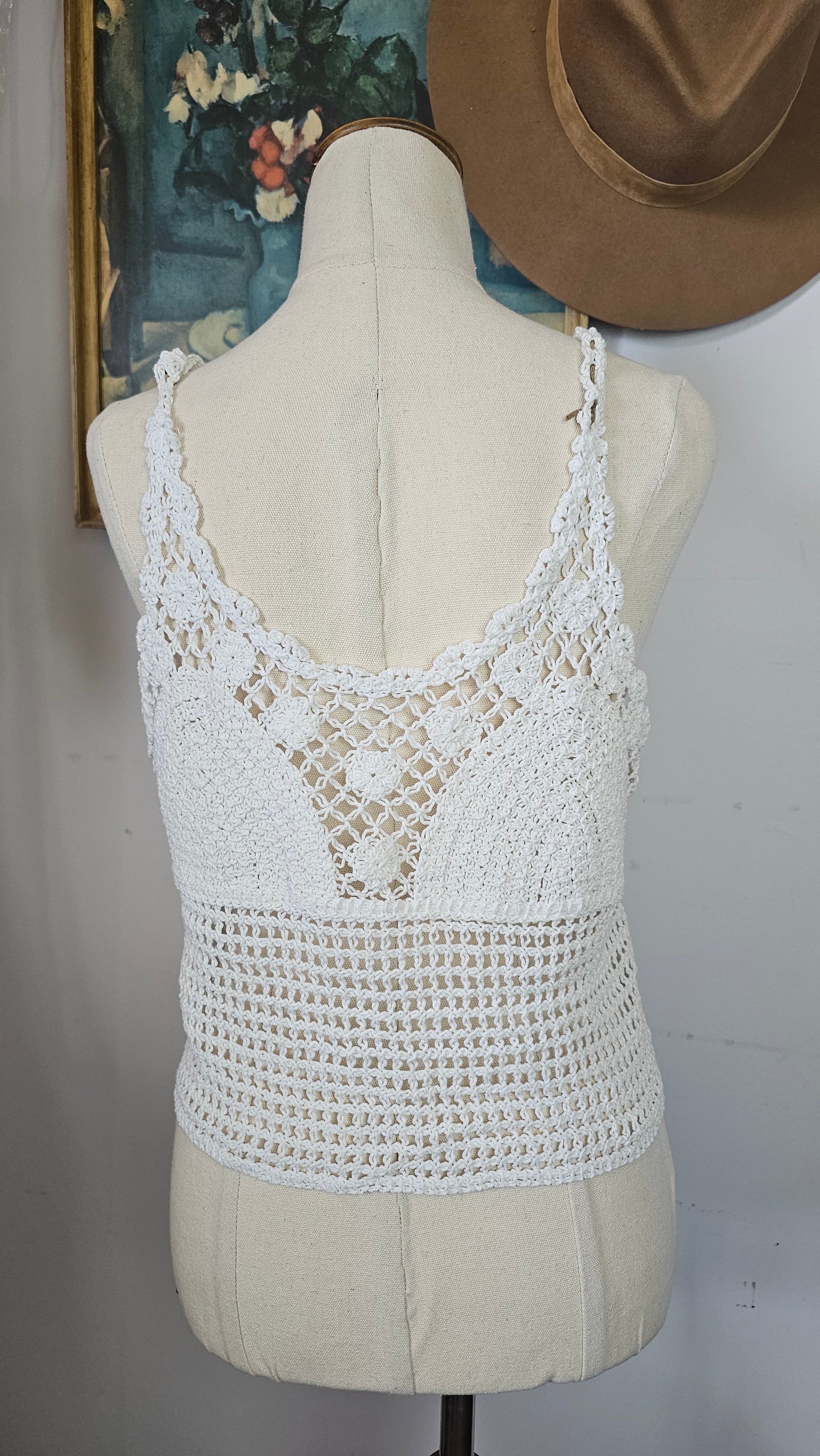 Vintage Crochet Cami Top – White Boho Knit M