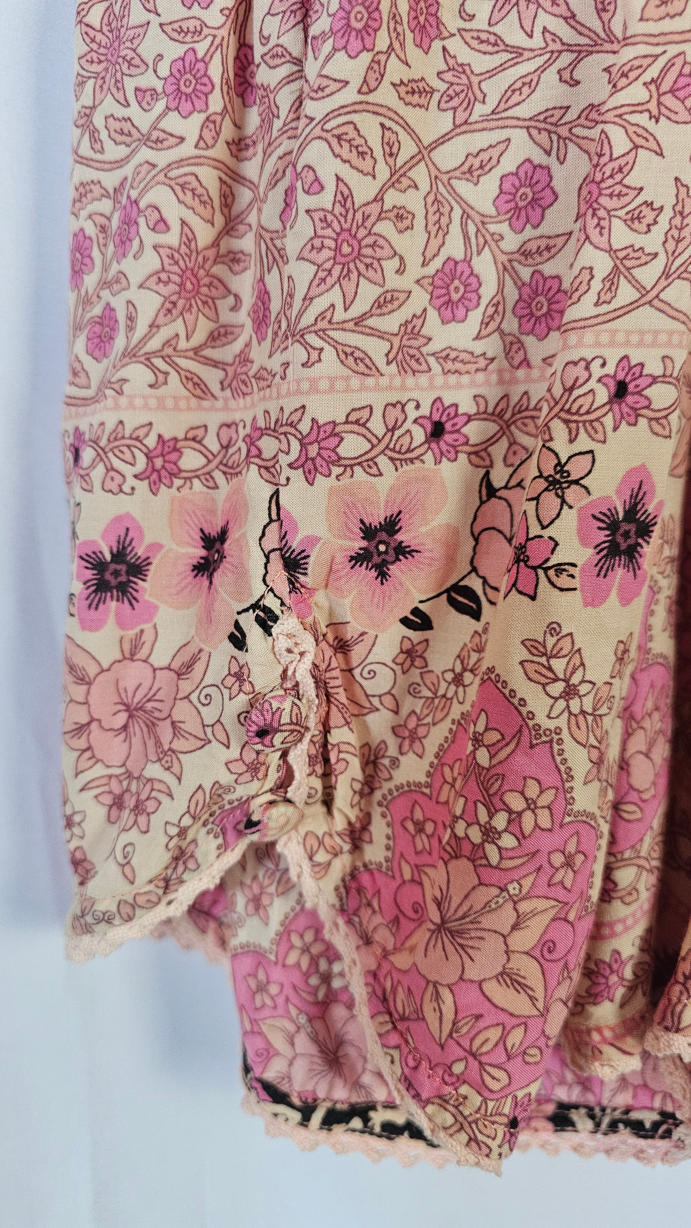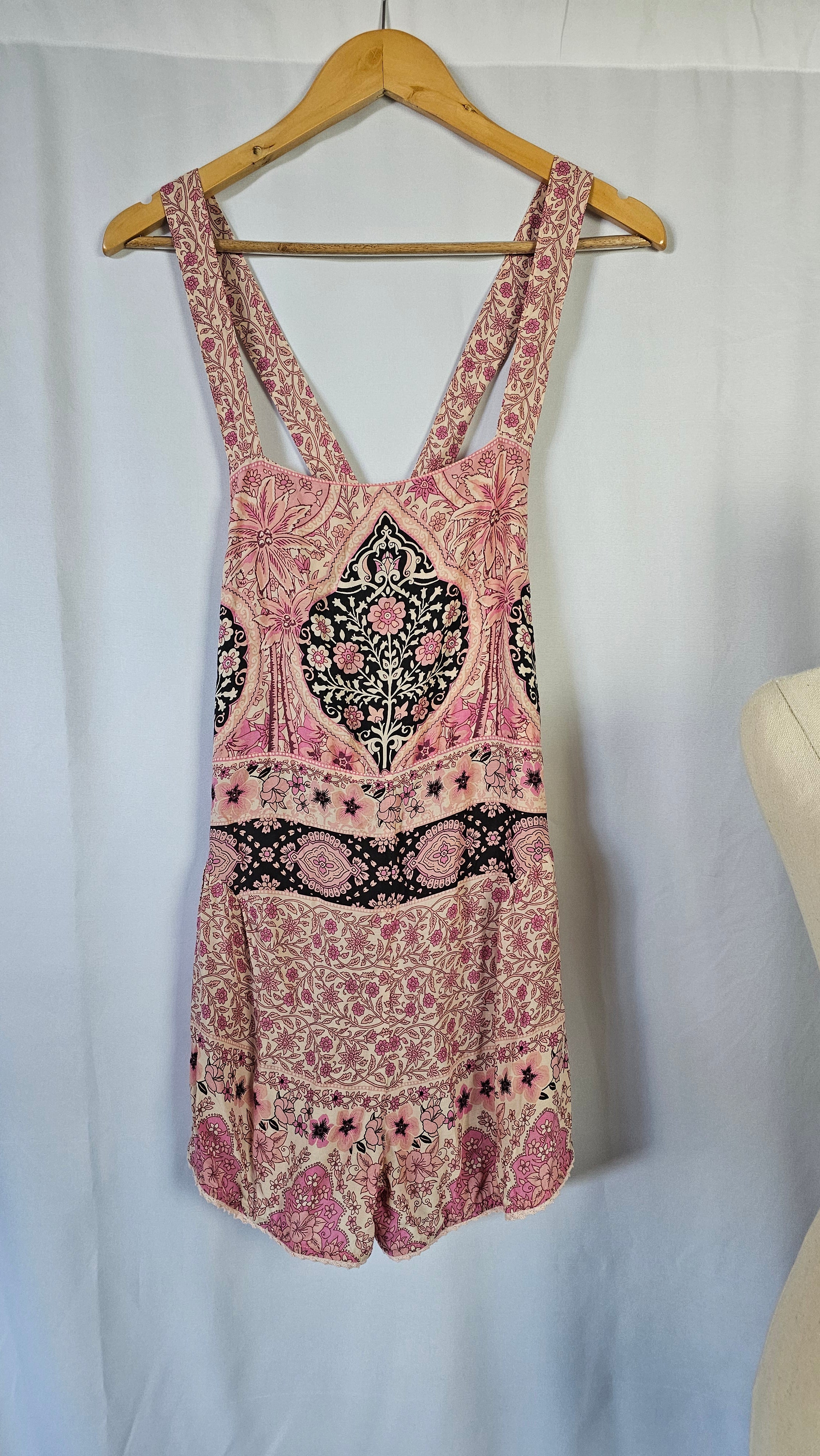 Think Gypsy print with an Aloha - hibiscus retro twist. A gorgeous overall that pairs over a vintage tee or bikinis - perfect throw on after beach wear, a great slouchy summer style. Very rare, vintage piece in this size. Item description Size Large 100% Rayon Released from the "Island Boho" drop in February 2015 ... featuring Hotel Paradiso, Aloha Fox, Ilsa Bonita, Savannah and the popular Xanadu range. These gorgeous dresses, blouses, skirts, tees and swimwear are some of the most rare and sought after vintage pieces by Spell A LOVELY piece for your rare collection...size XS
