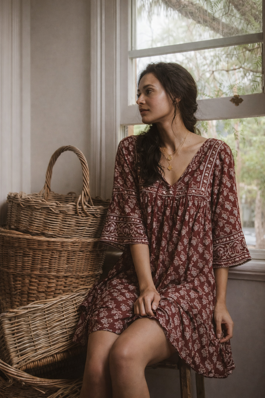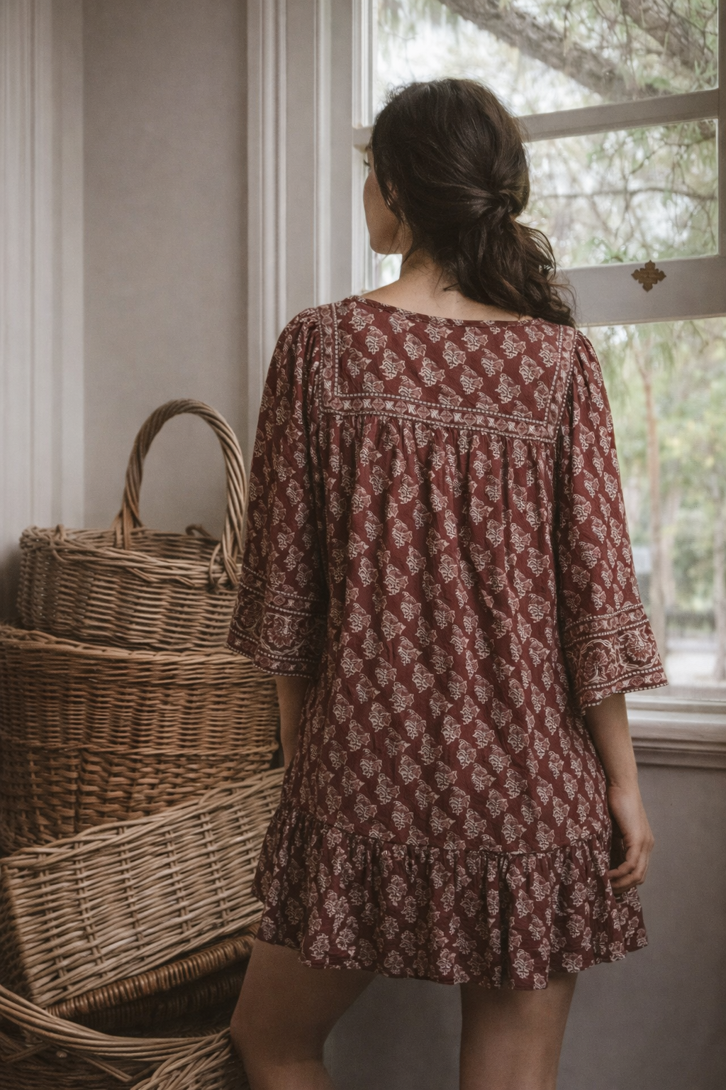 Bohemian, earthy and timeless – this Tree of Life block print mini dress is an effortless throw-on with vintage charm. Handcrafted in India from 100% breathable cotton, it features a relaxed, easy-fit silhouette with flared sleeves and a floaty hemline.