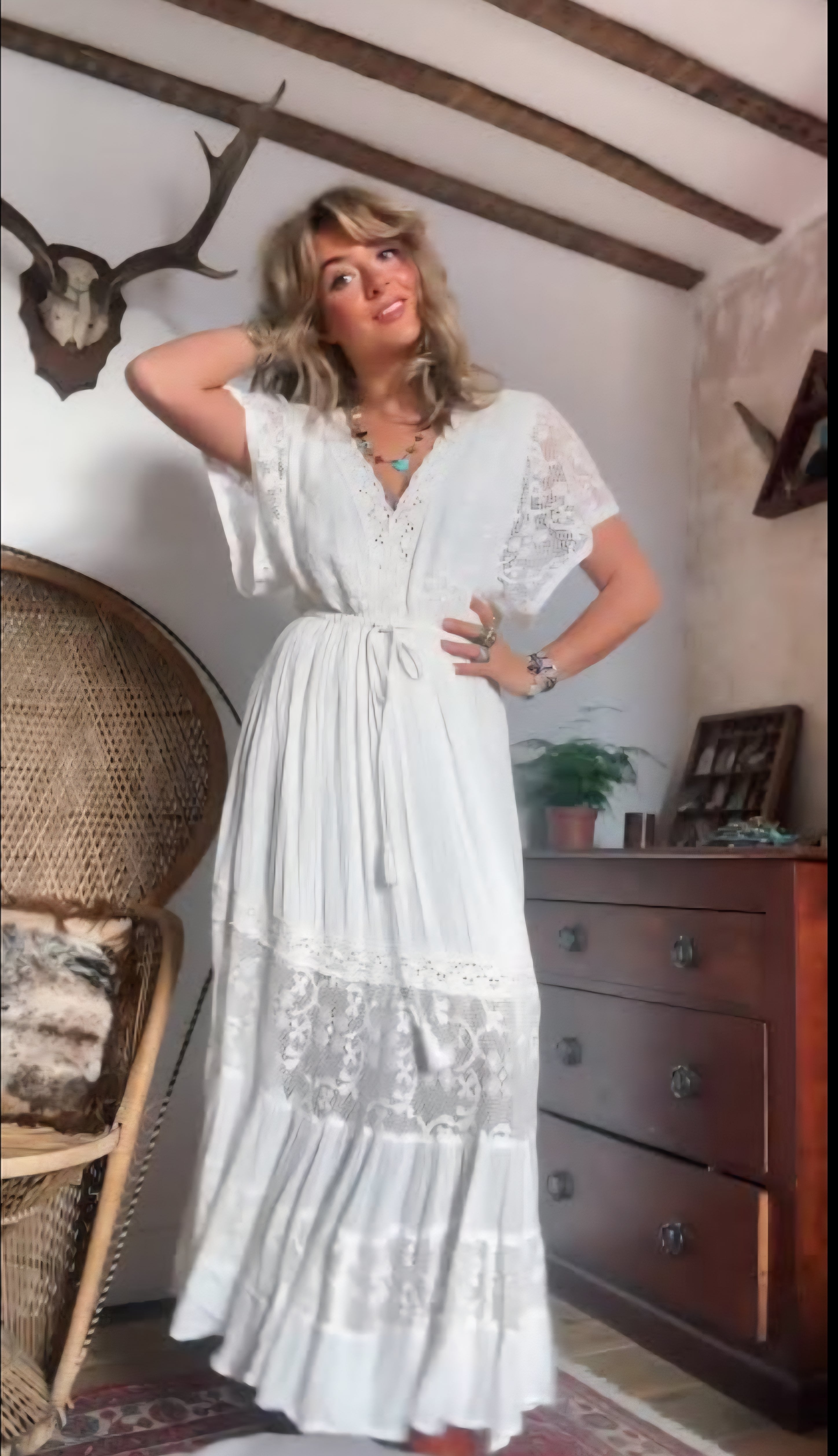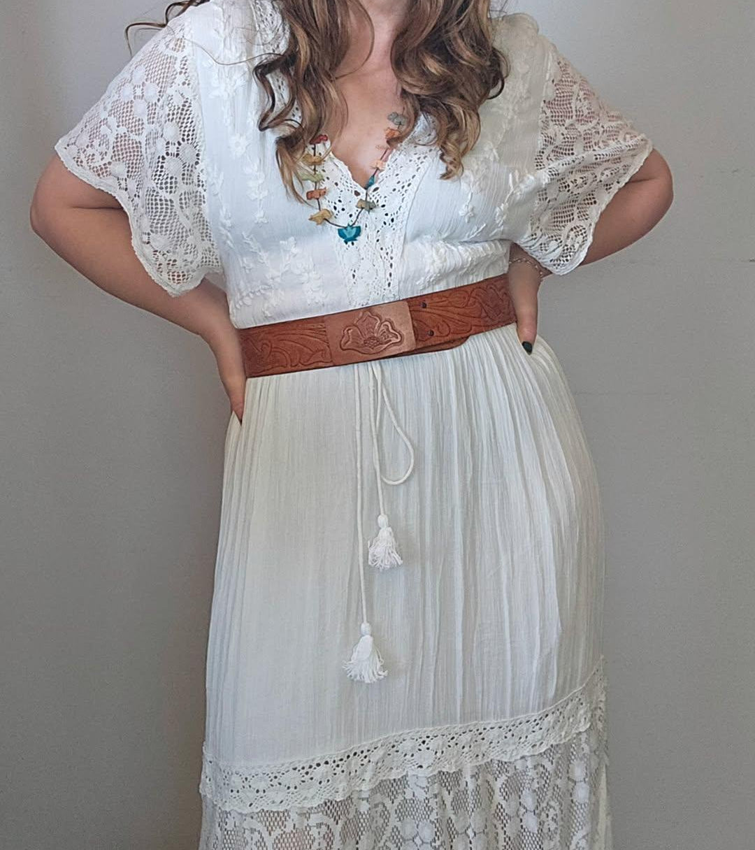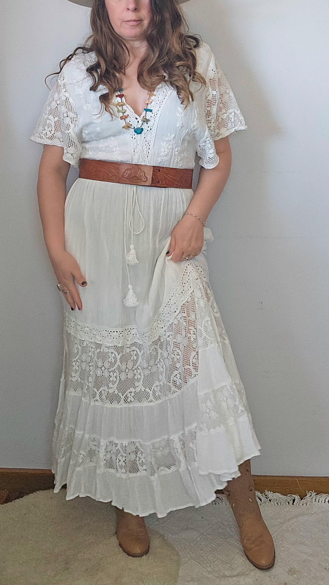 A rare and coveted piece from Tree of Life, the Alexandria Dress is a dreamy bohemian treasure that blends romance with effortless wearability. Crafted in soft, lightweight cotton and detailed with panels of vintage-style lace, it floats with every step and captures that timeless 70s free-spirited vibe.