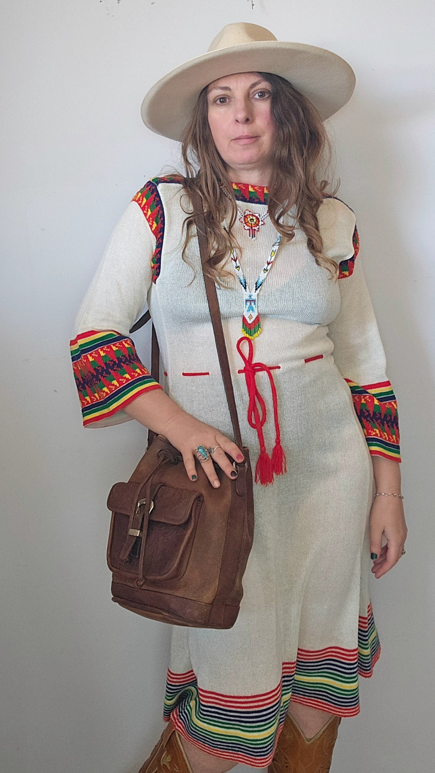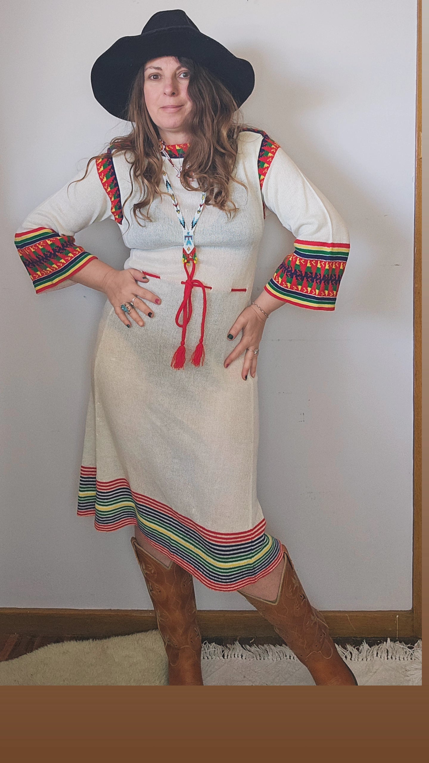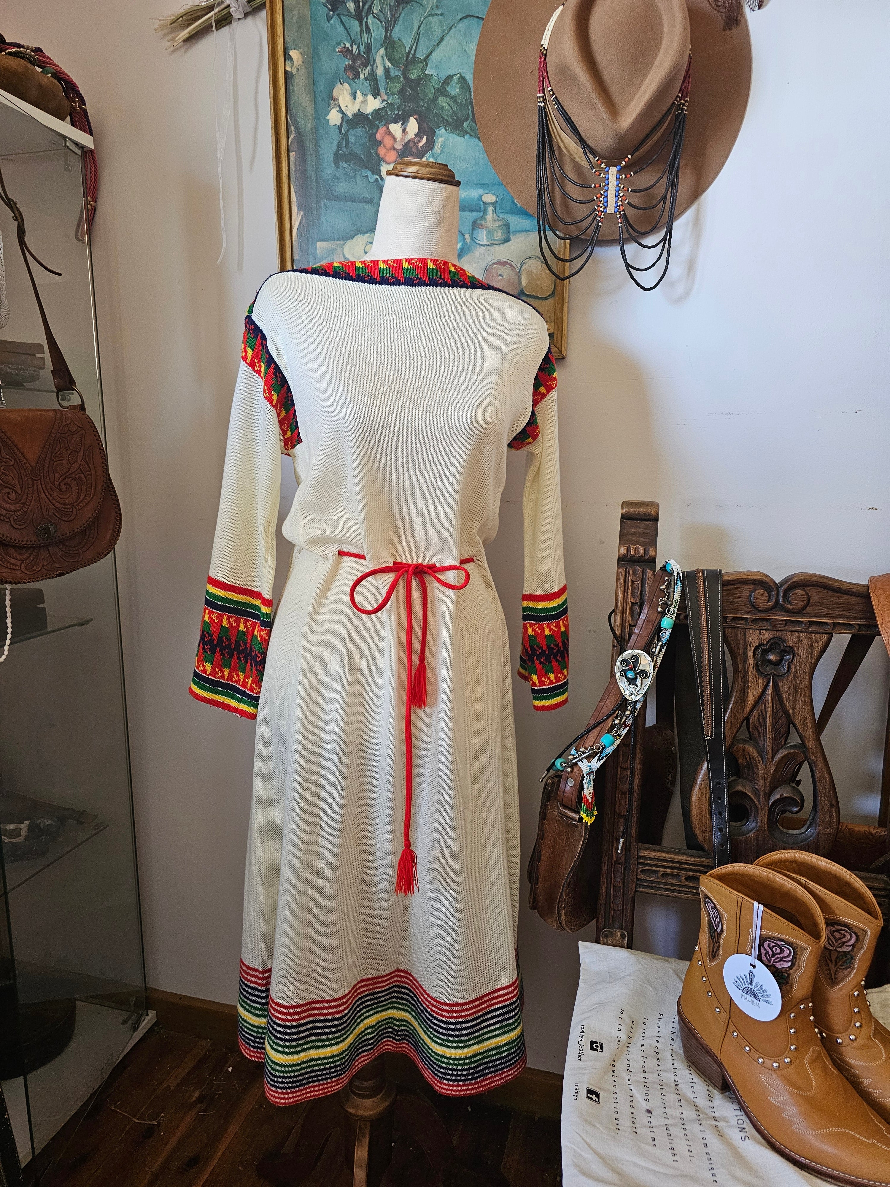 Vintage 70s Mexican Knit Dress – Size Small / Medium
