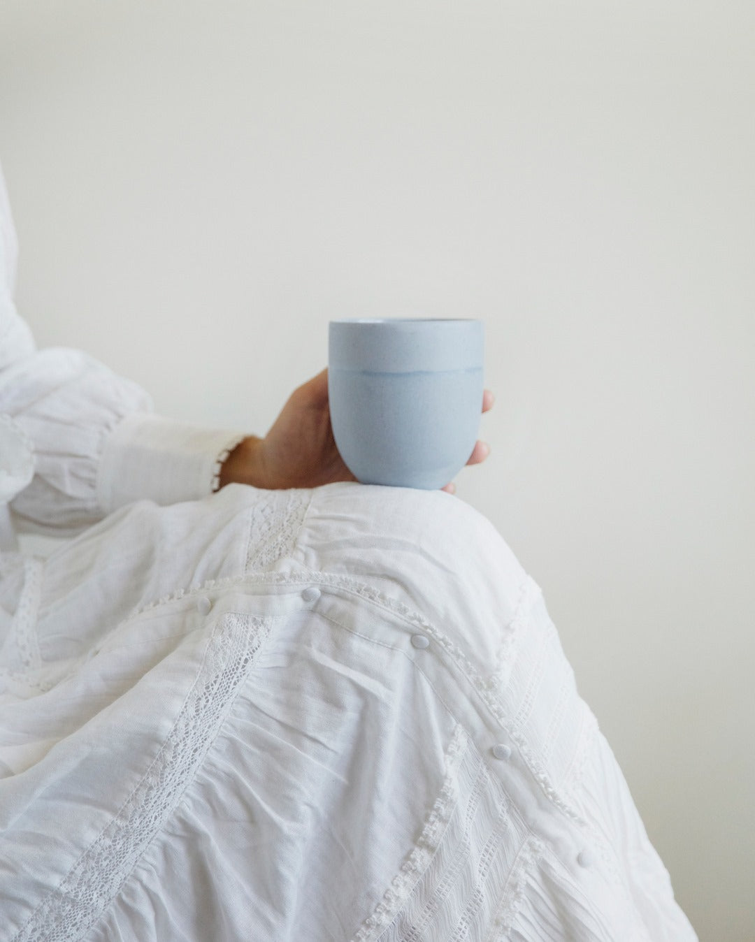 White dress on a mannequin against a neutral background