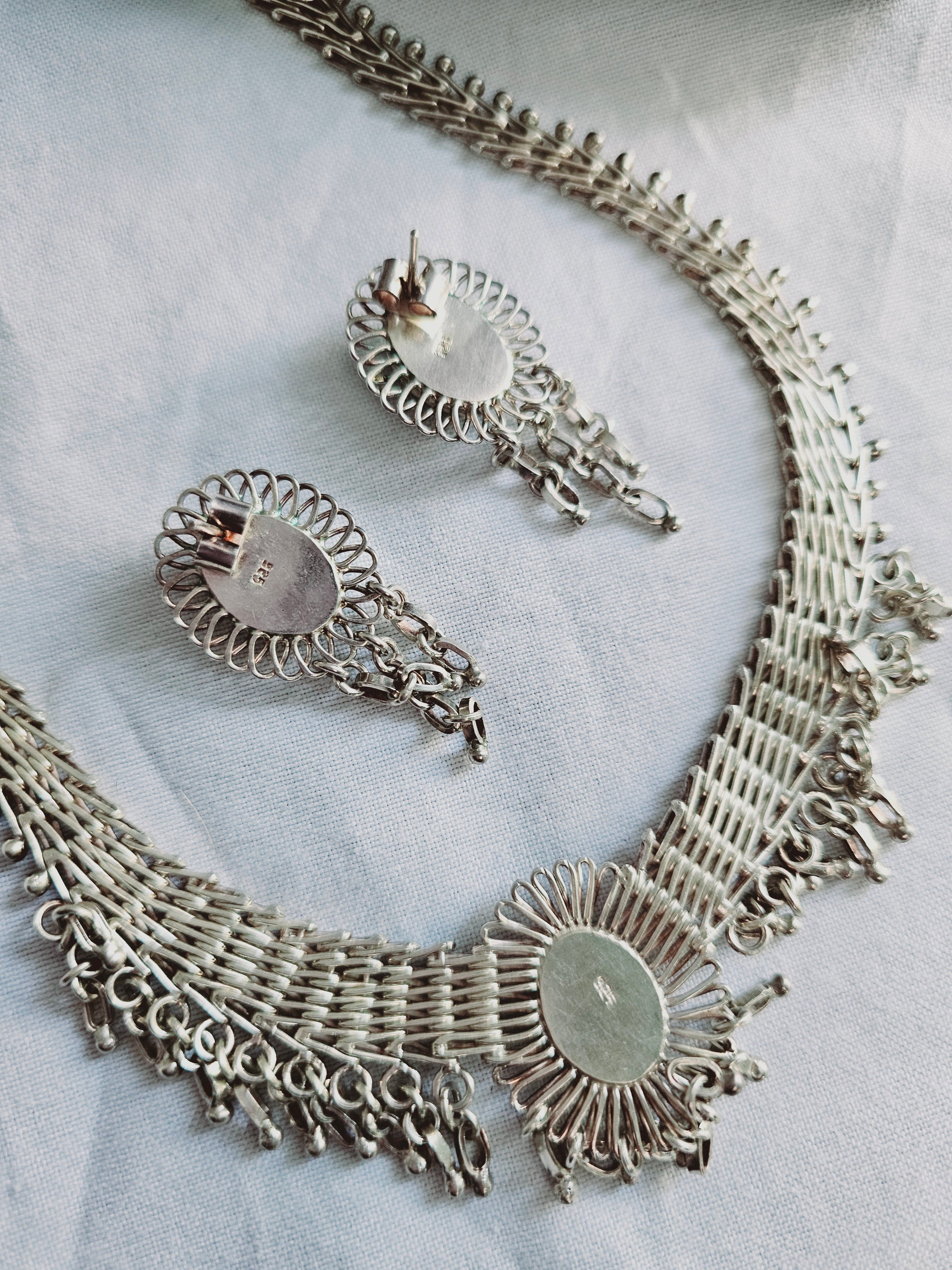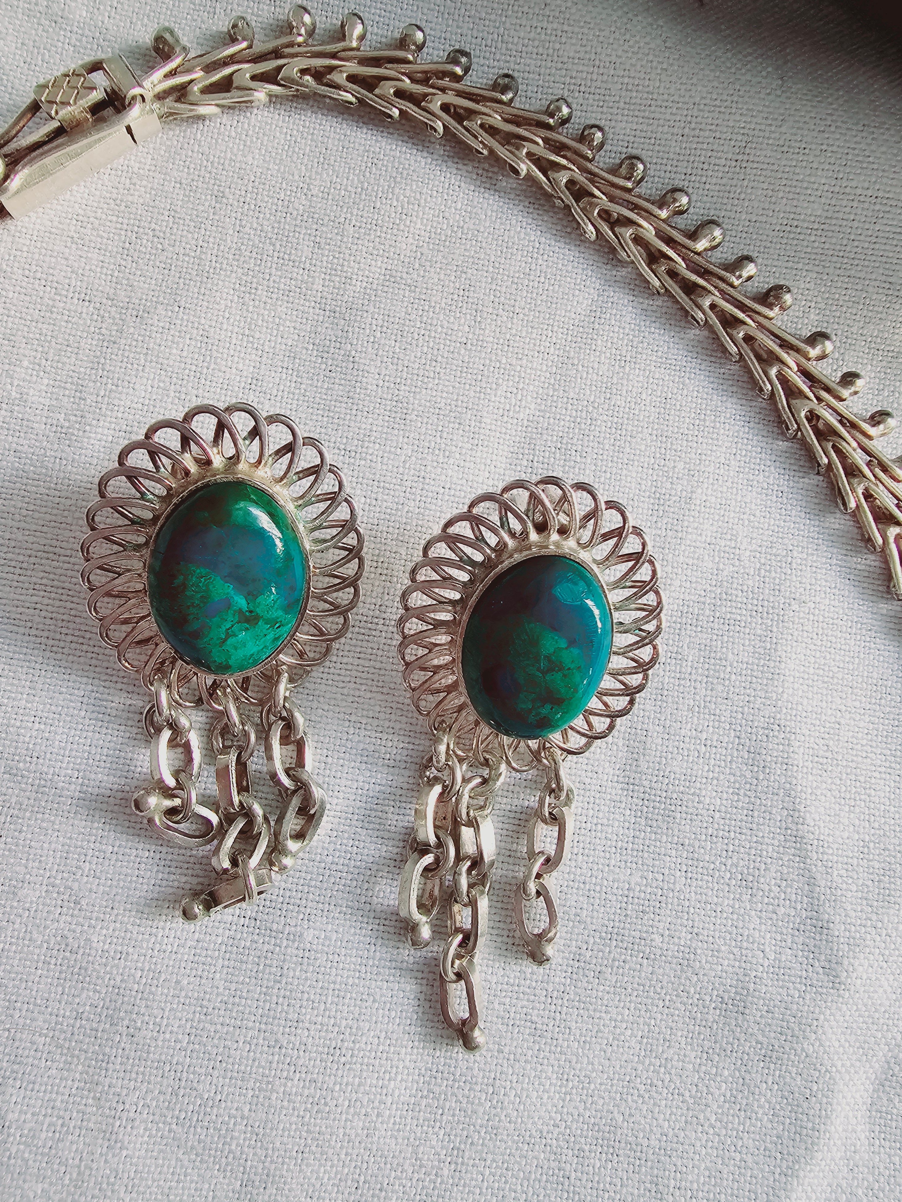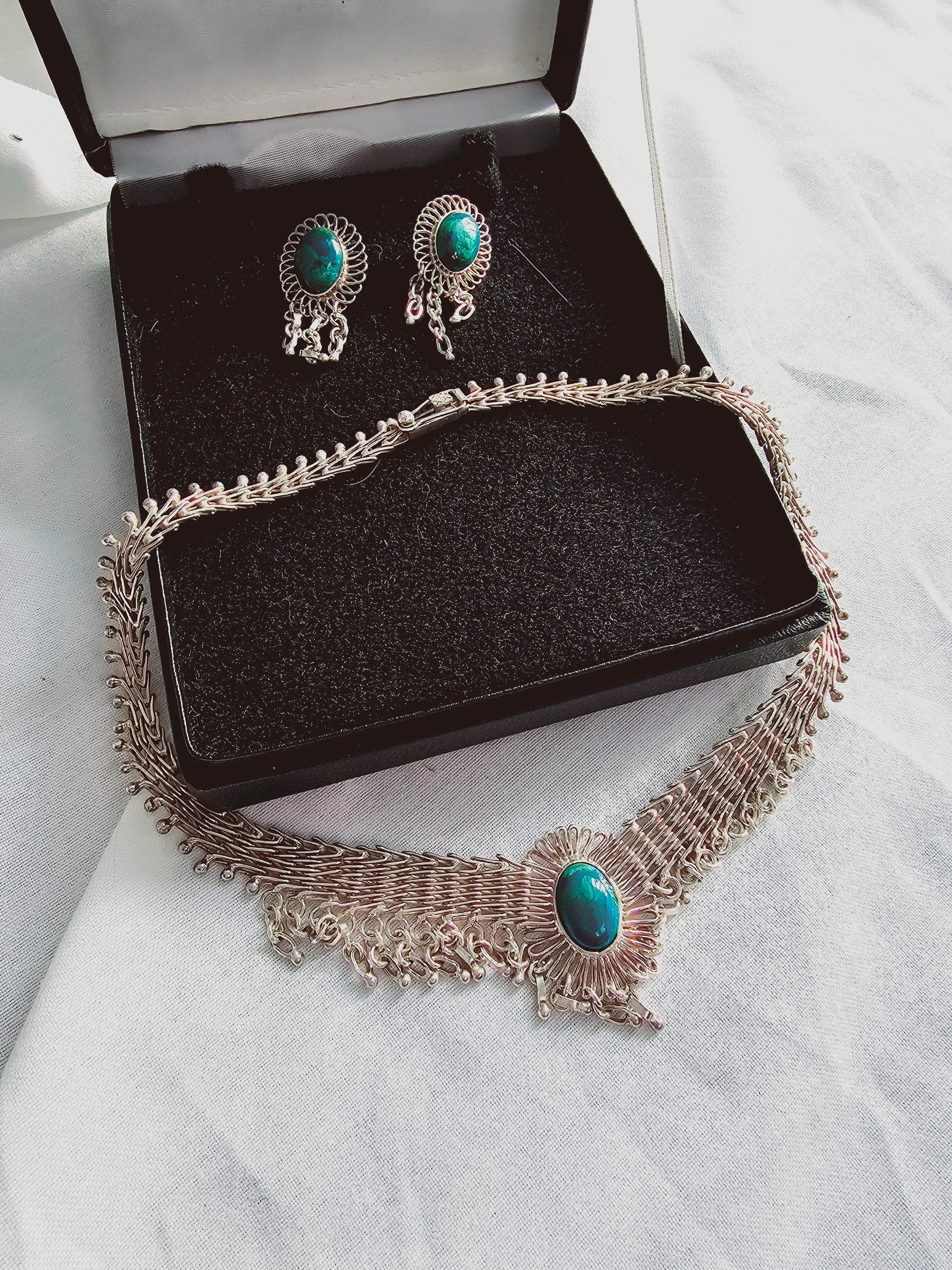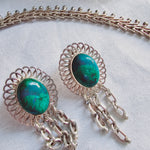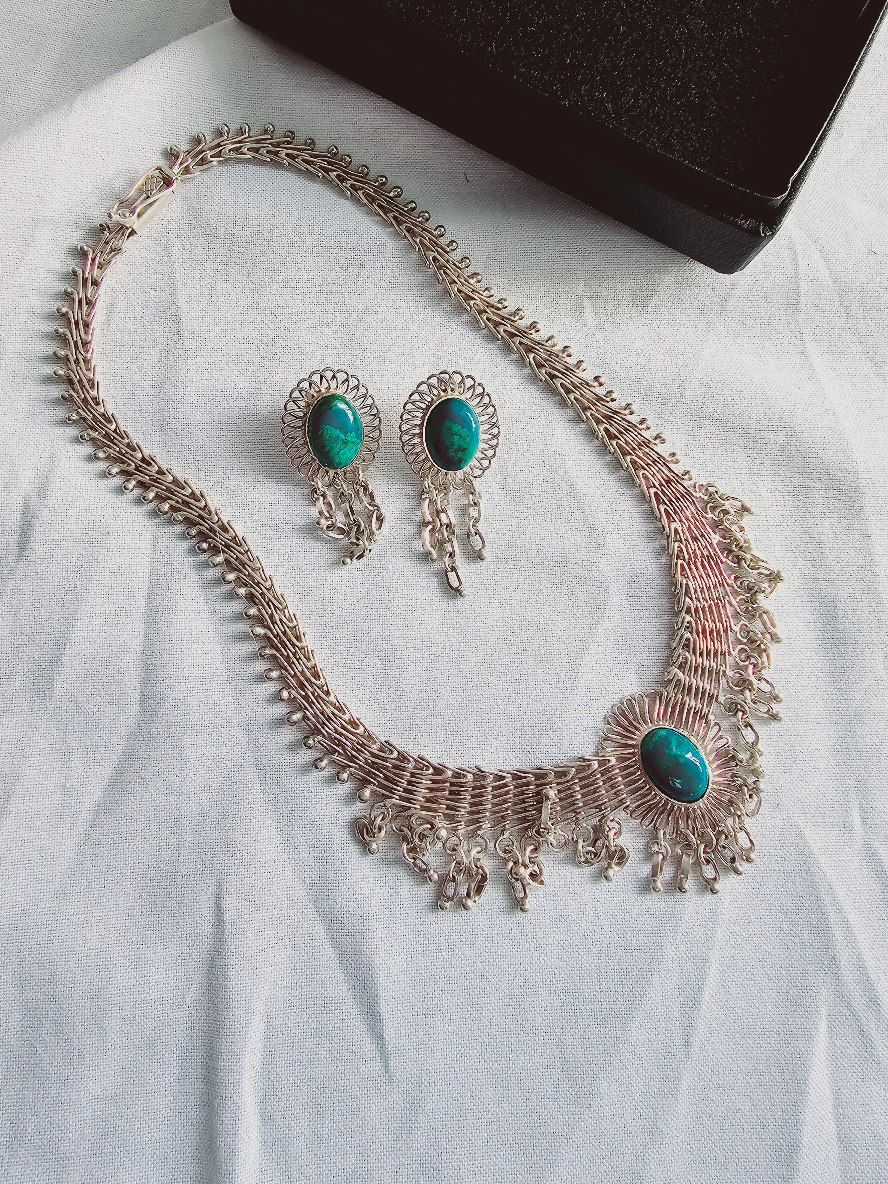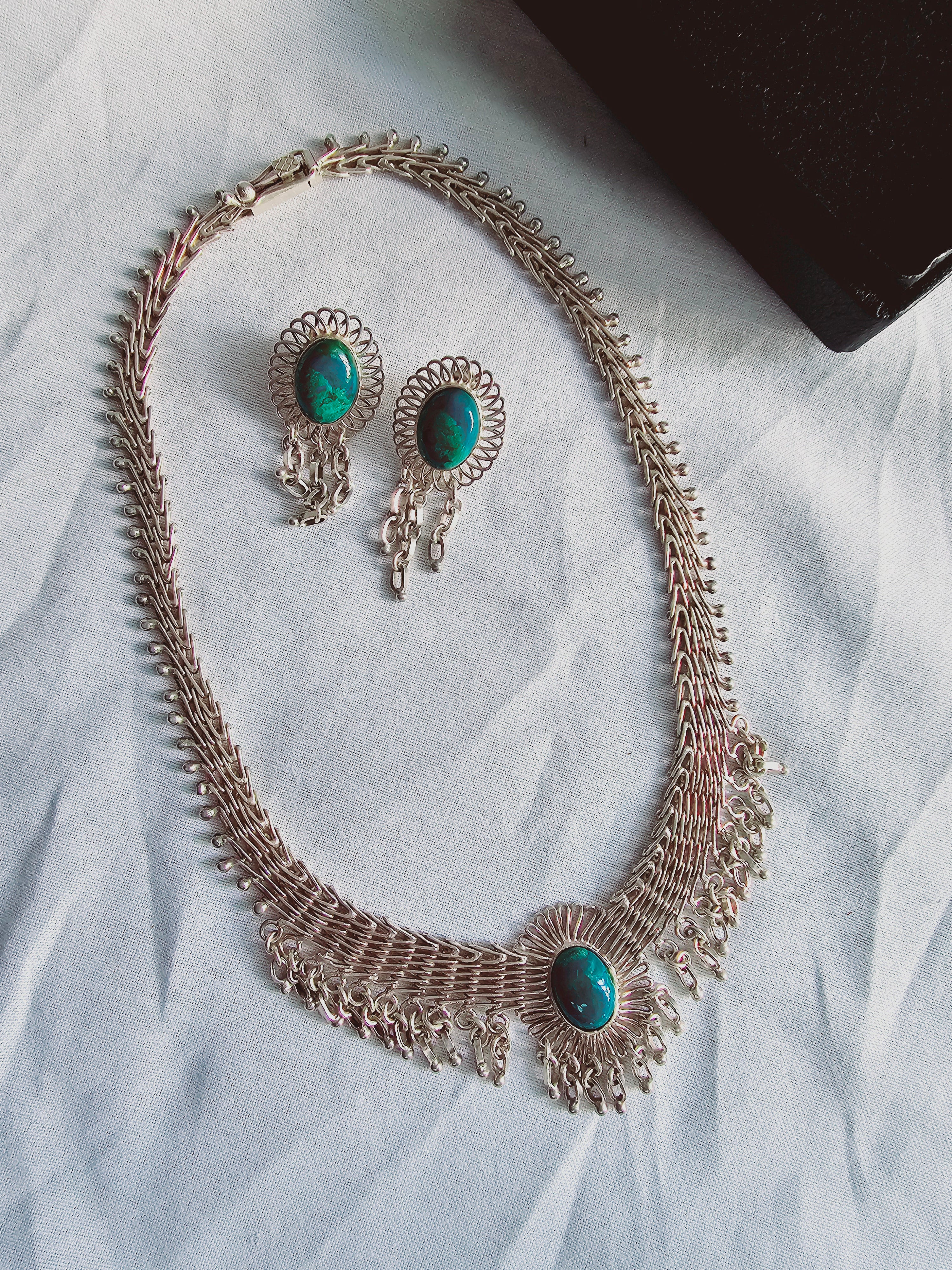 Vintage Art Deco sterling silver fine jewelry set Turquoise stones