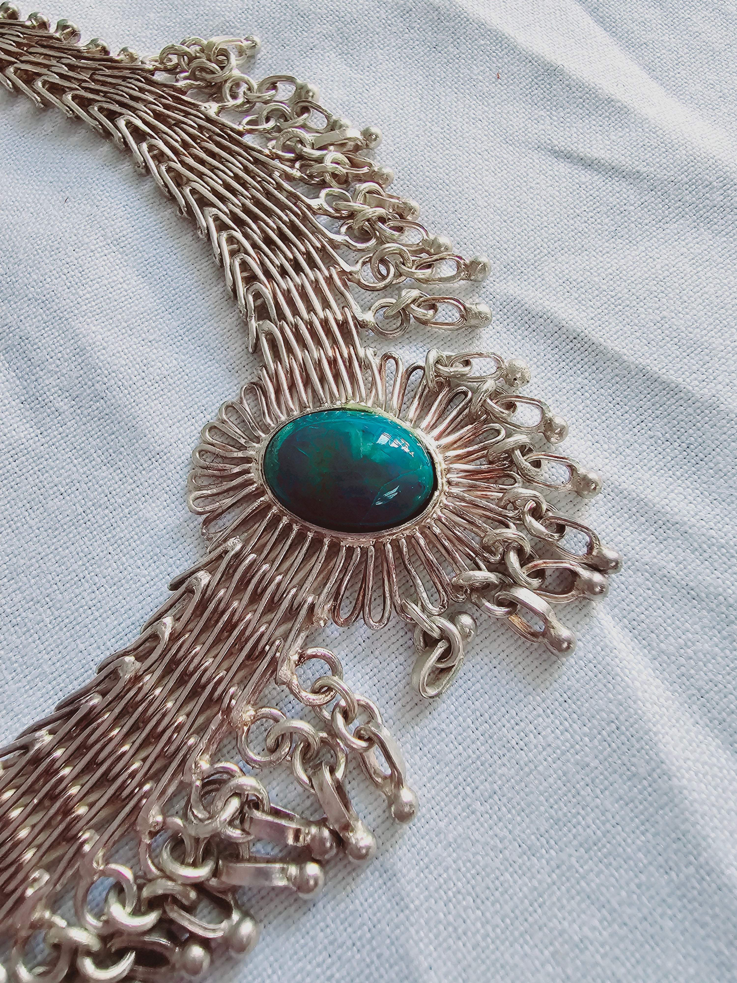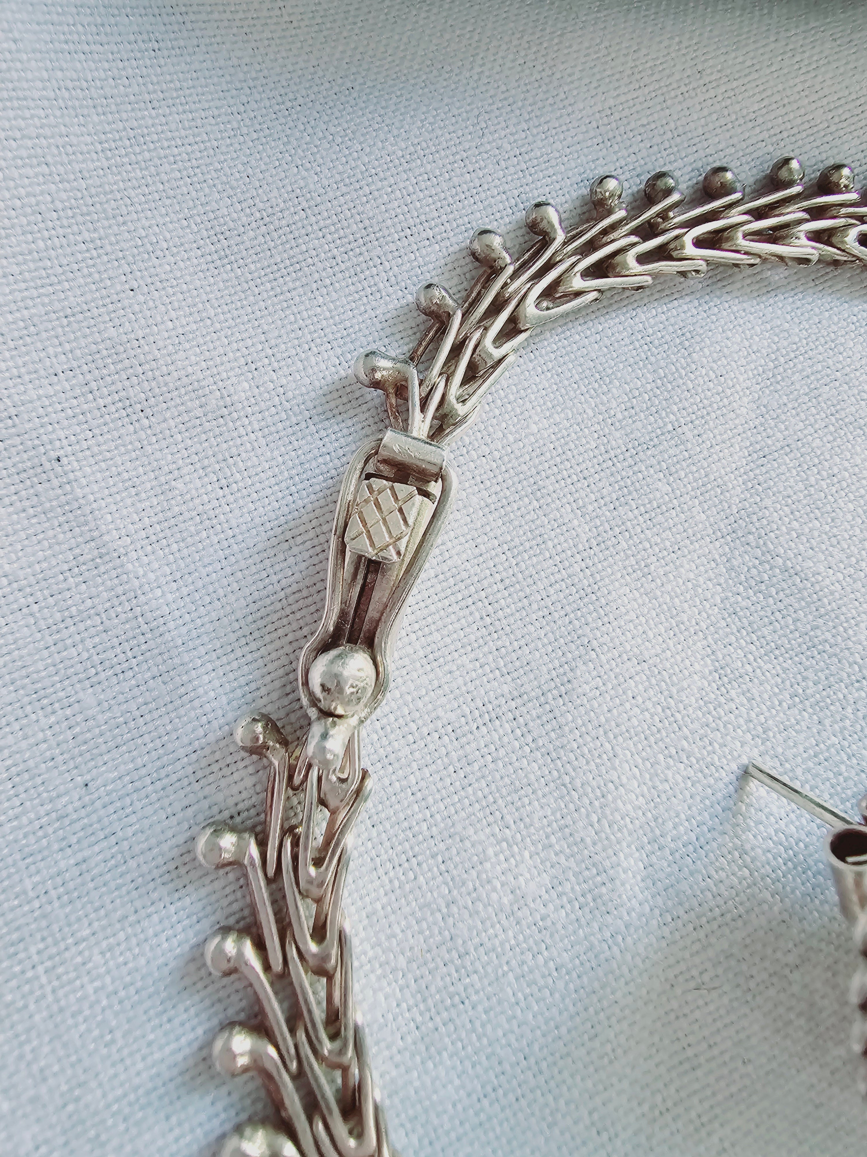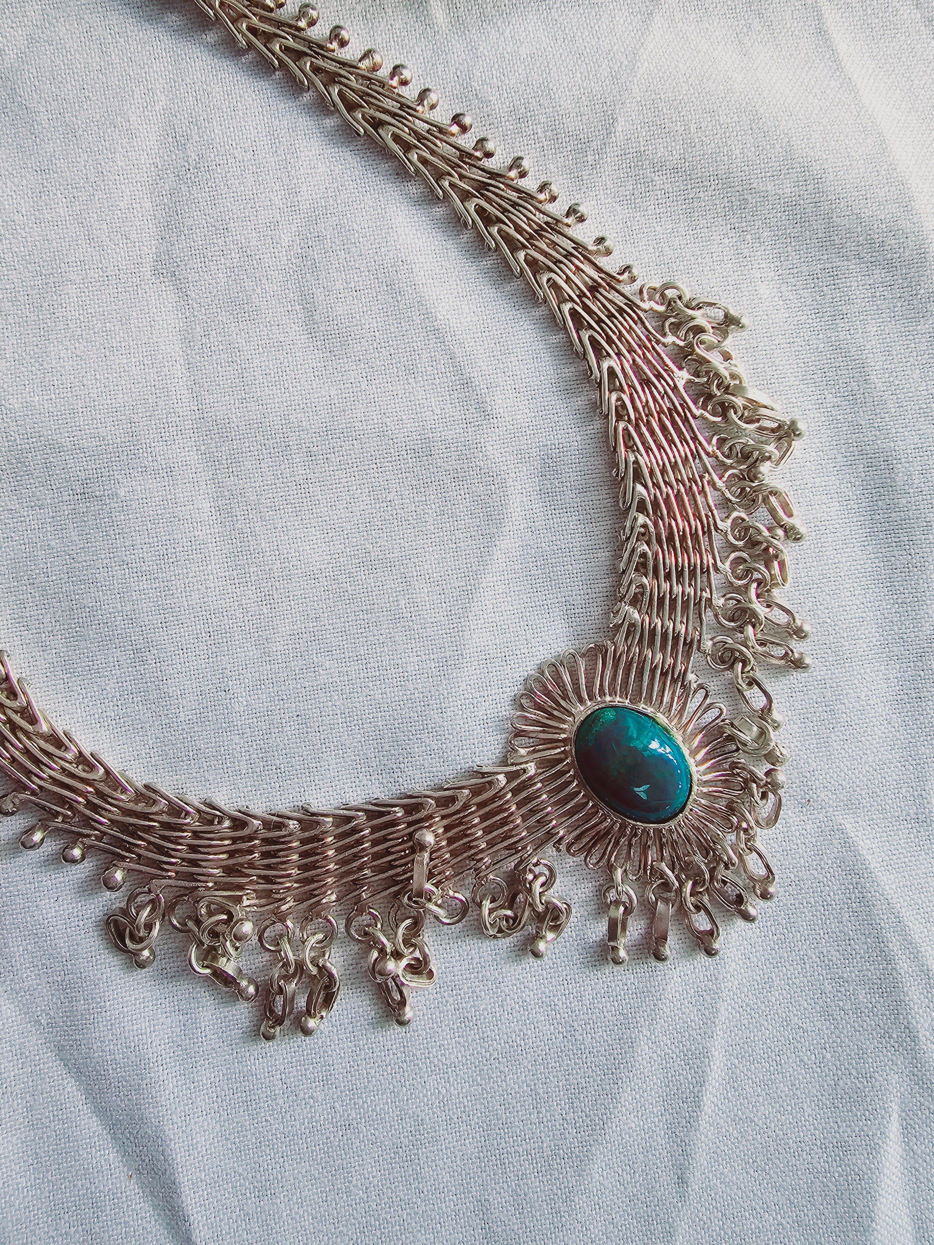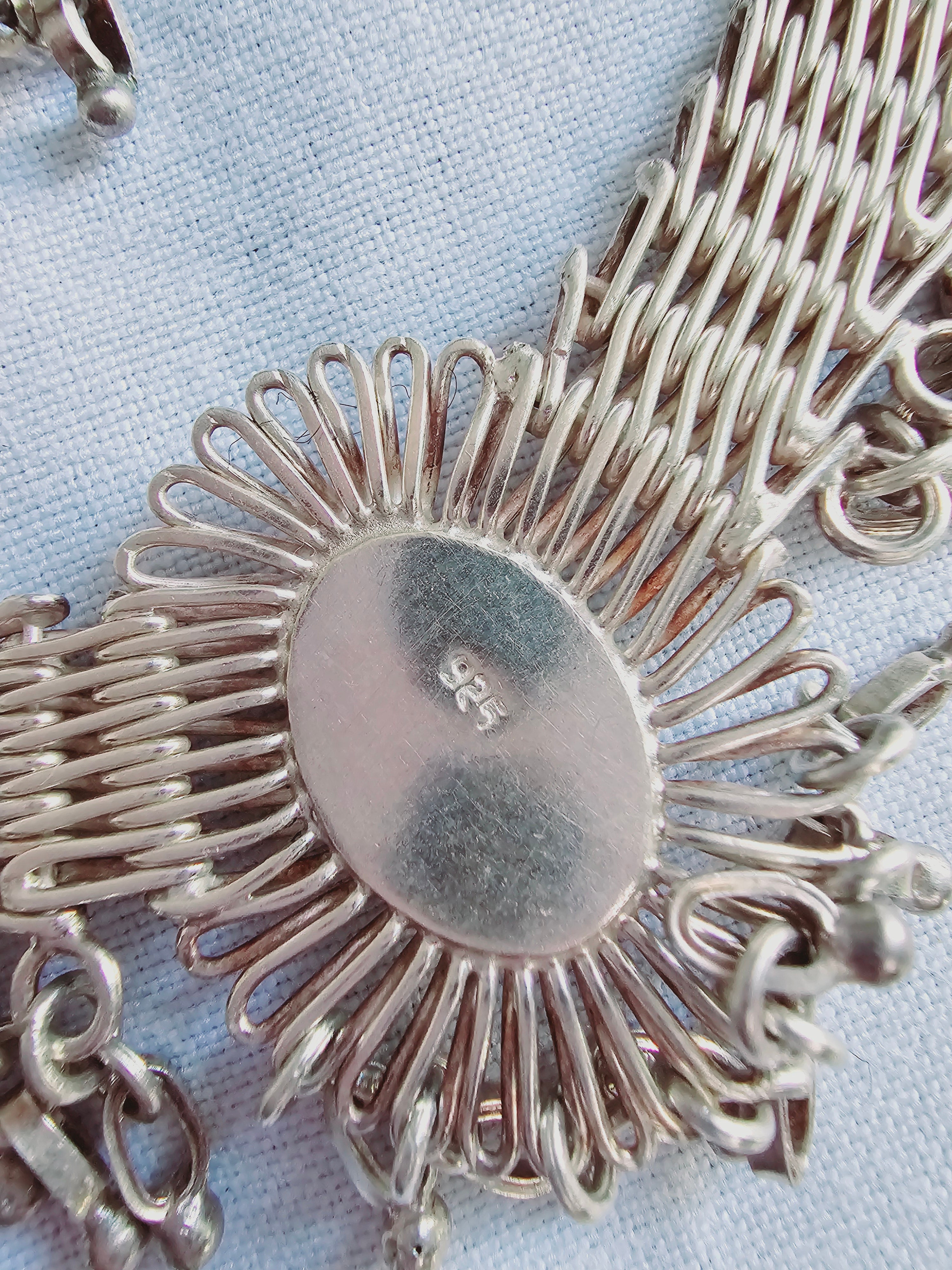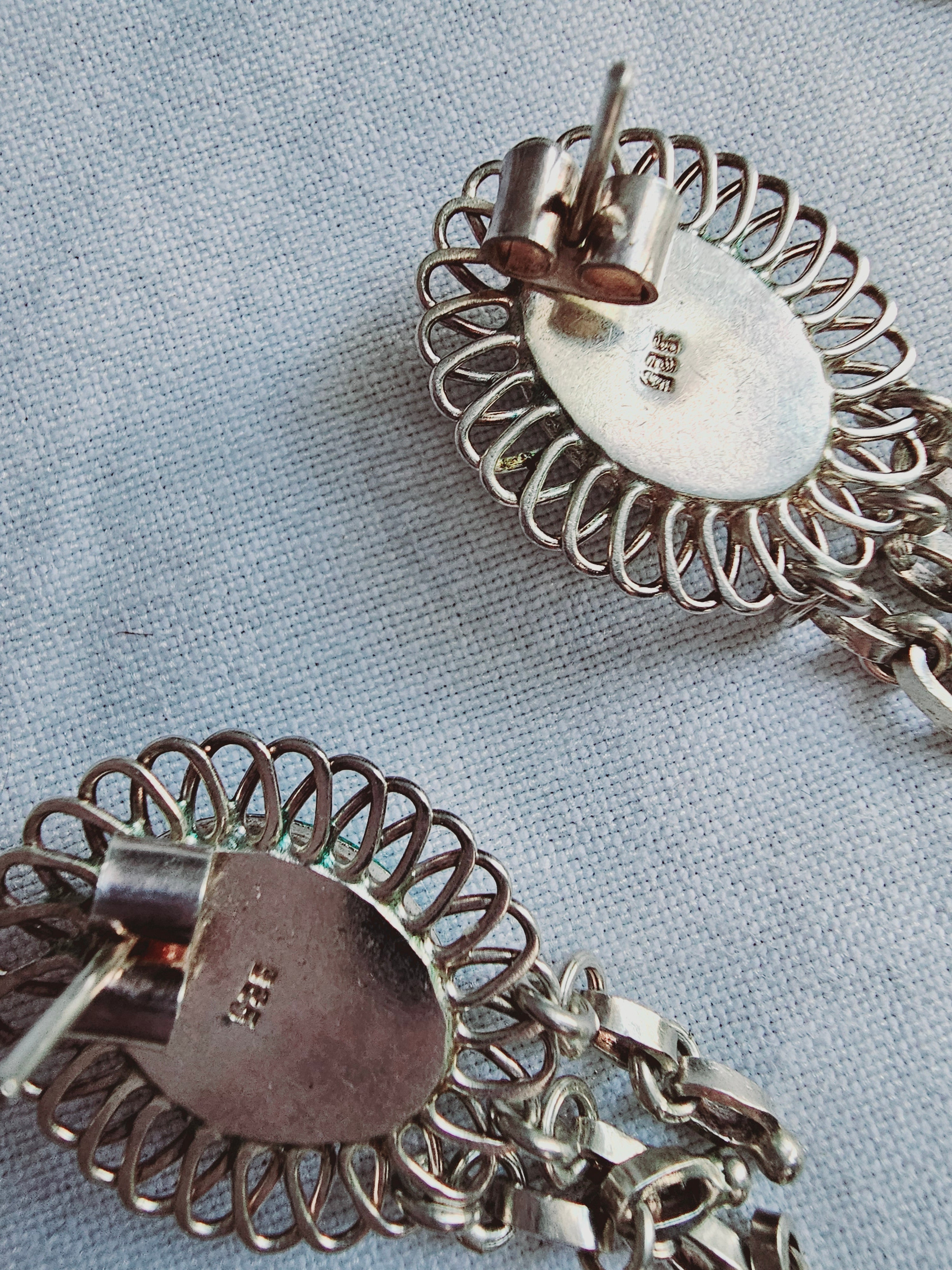 Vintage Art Deco sterling silver fine jewelry set Turquoise stones