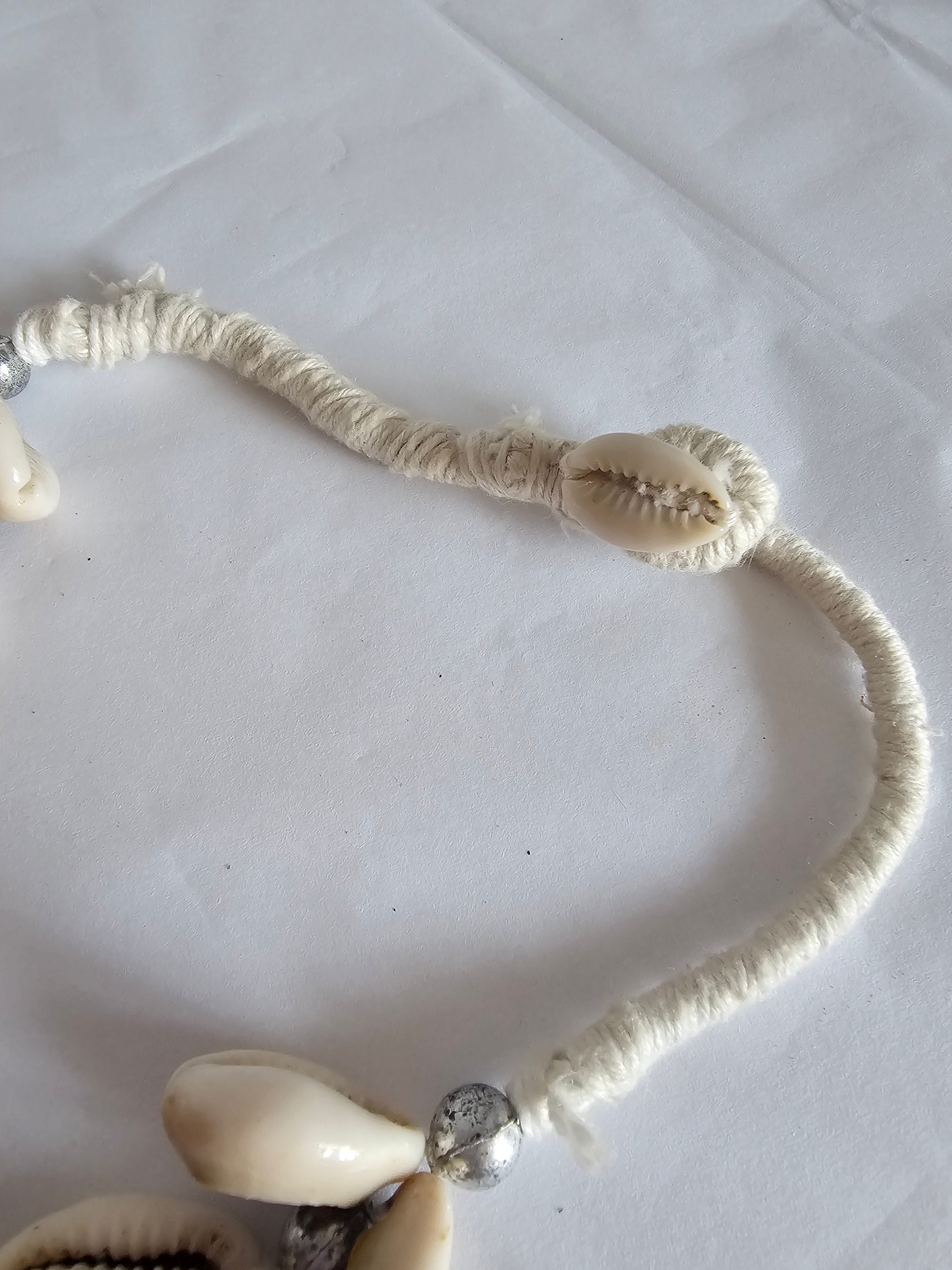 • Materials & Craft: Hand-strung with rows of natural cowrie shells, once used as currency and cherished as symbols of prosperity, protection, and femininity across Africa, India, and the Middle East. The shells are layered with silver-tone tribal beads, knotted onto thick cord for strength and texture.