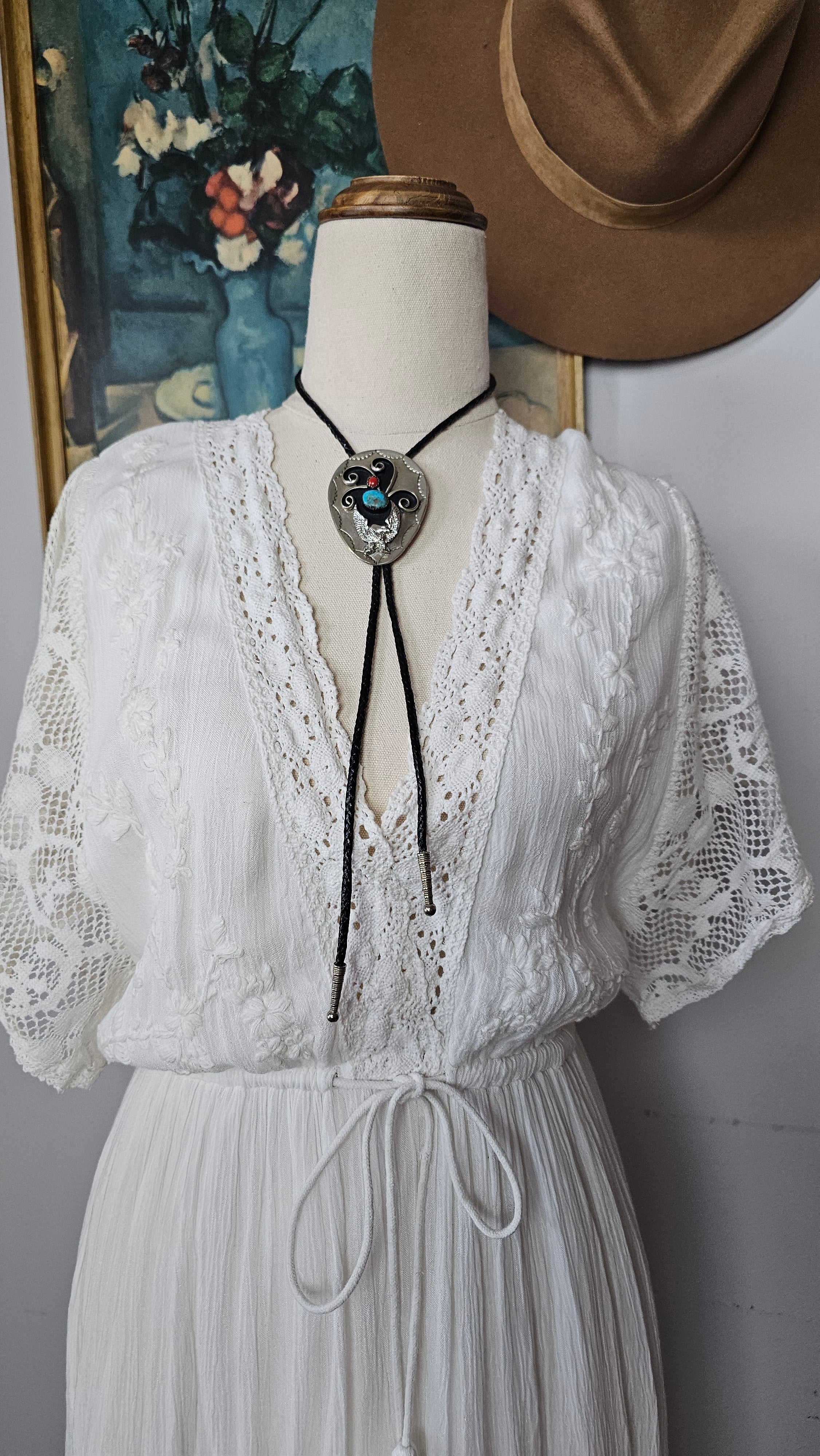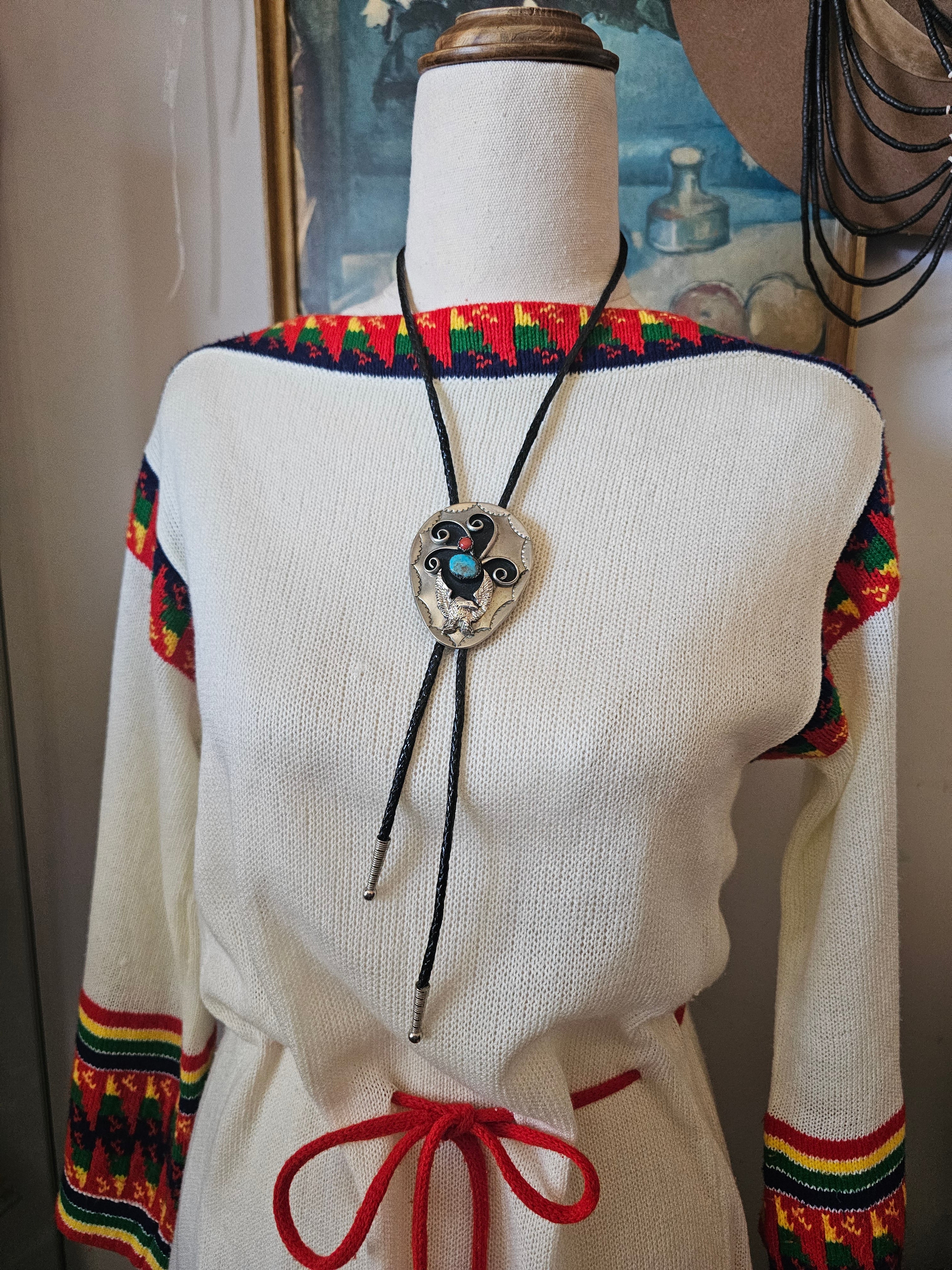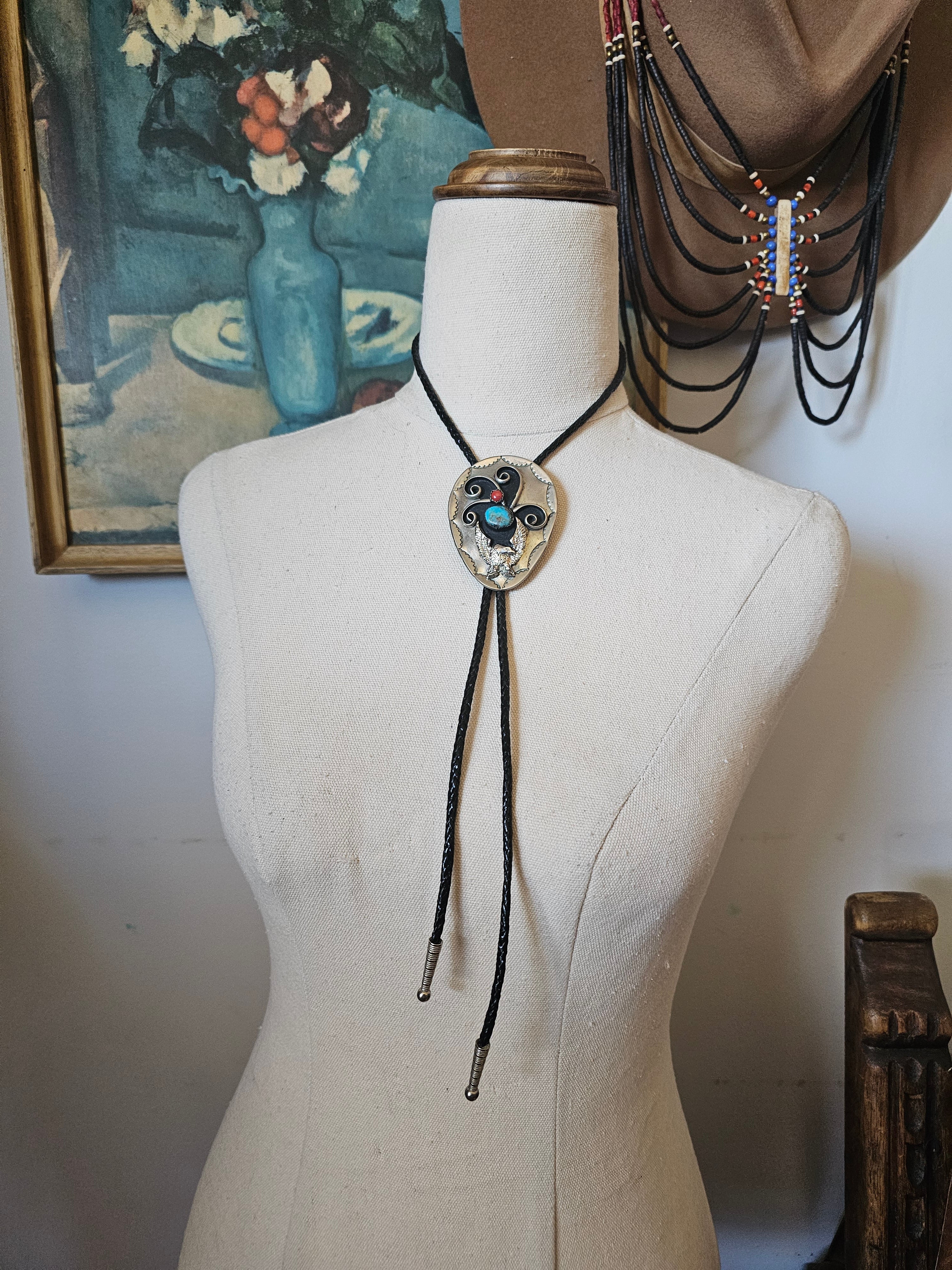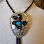 Vintage Navajo Silver Bolo Tie – Eagle, Turquoise & Coral