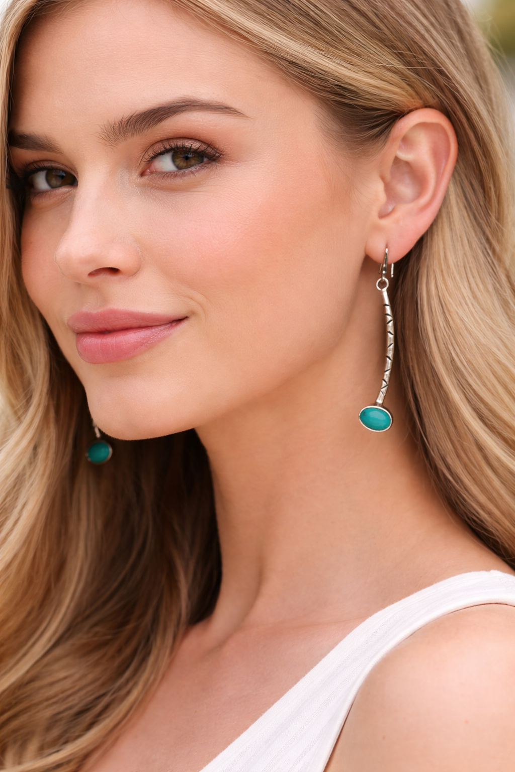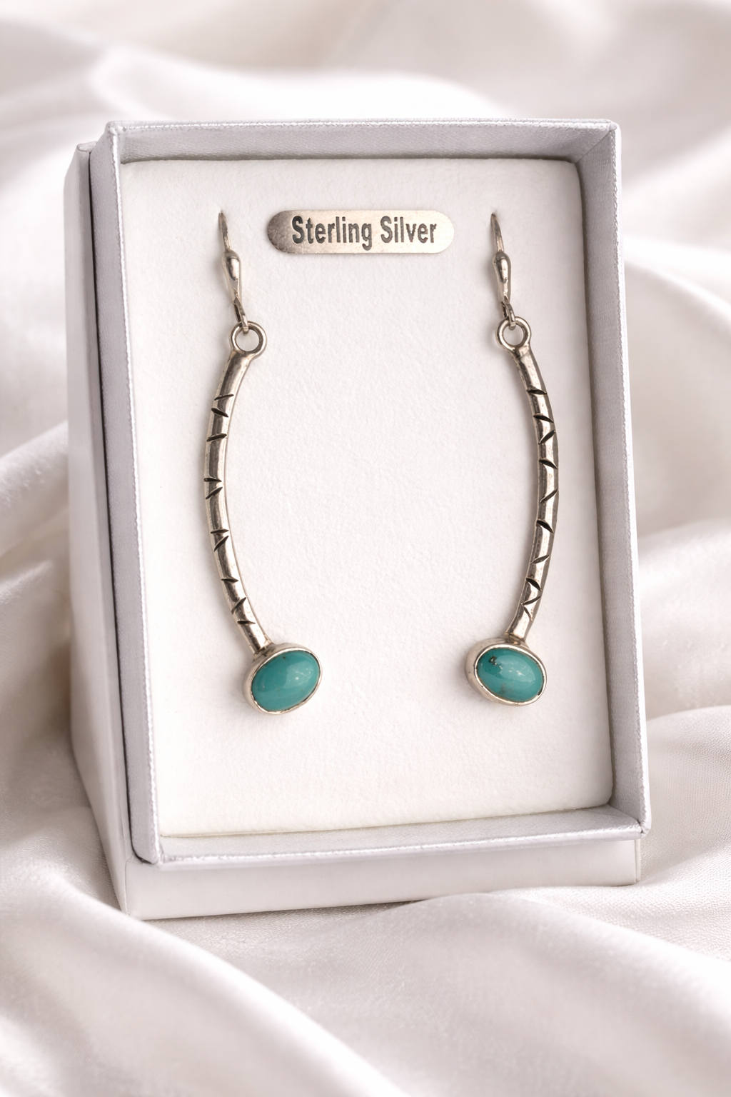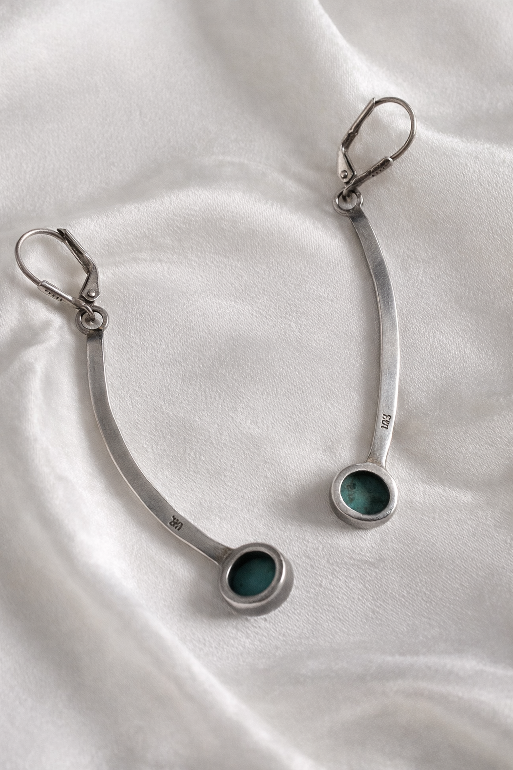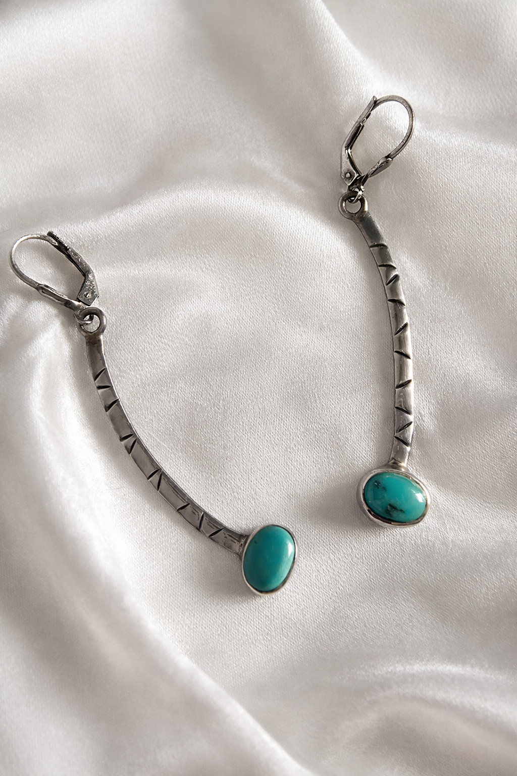 A unique pair with a subtle artisan feel — perfect for lovers of turquoise and classic silver jewellery.