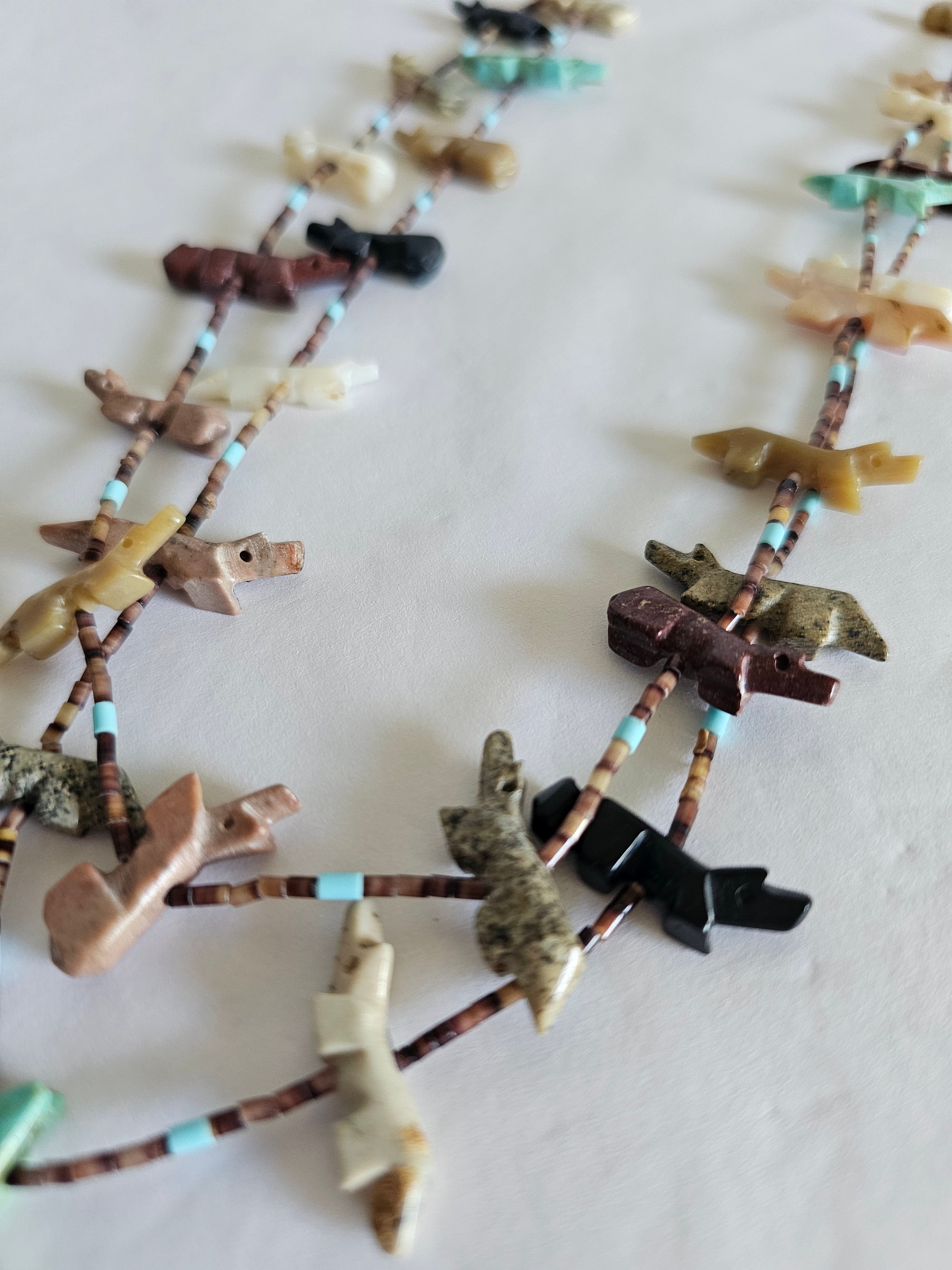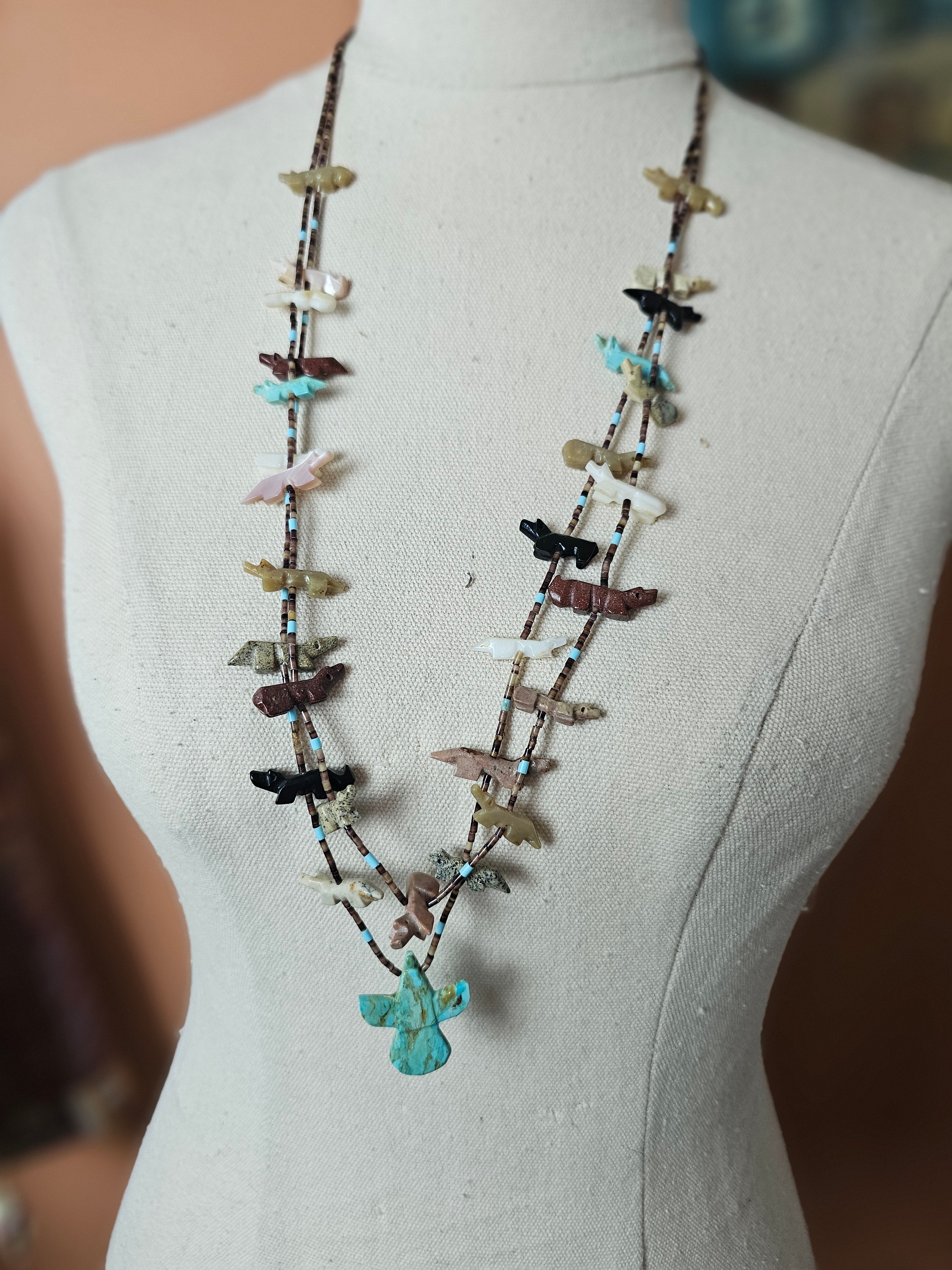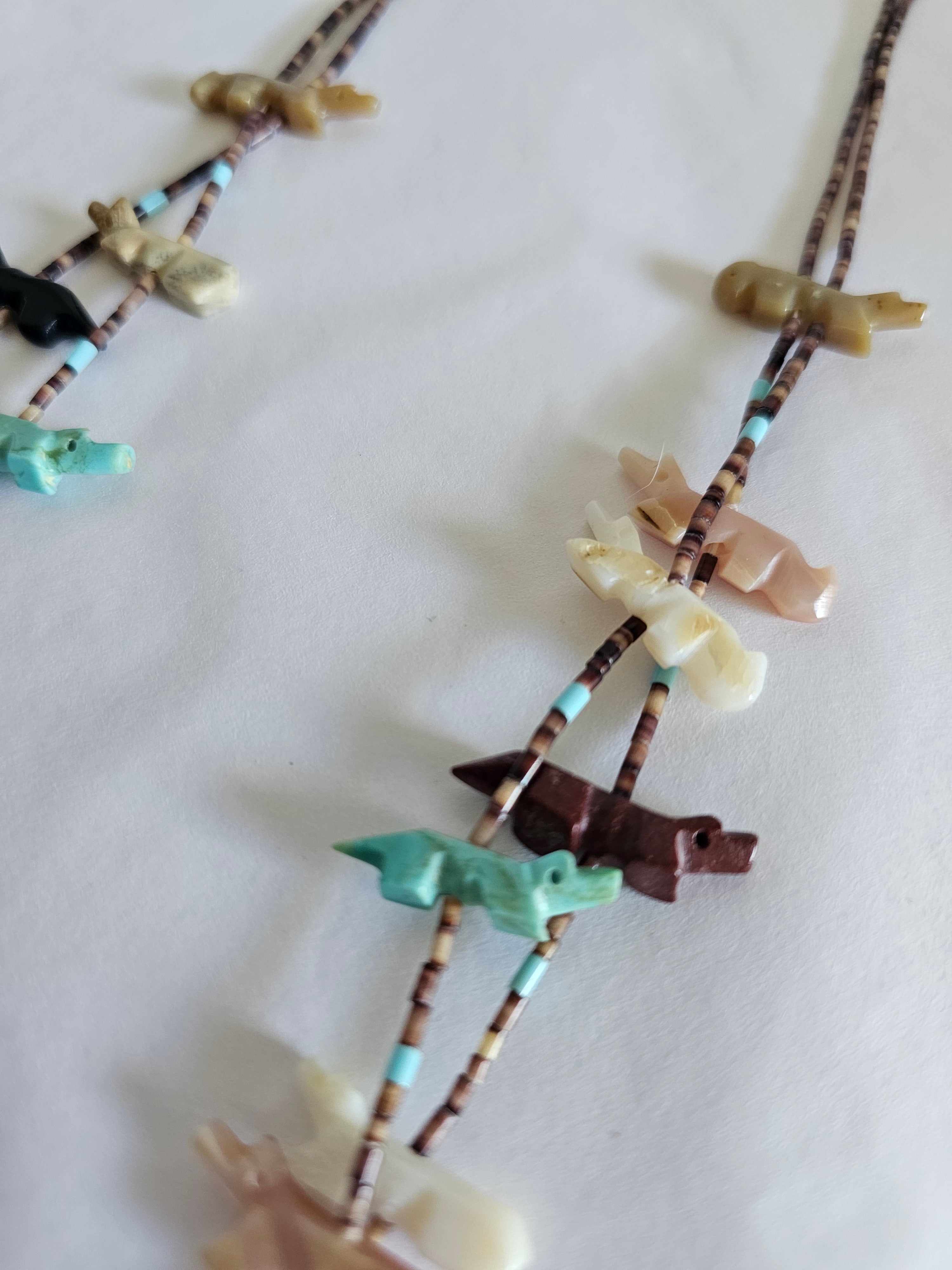 • Traditional Zuni hand-carved fetish necklace