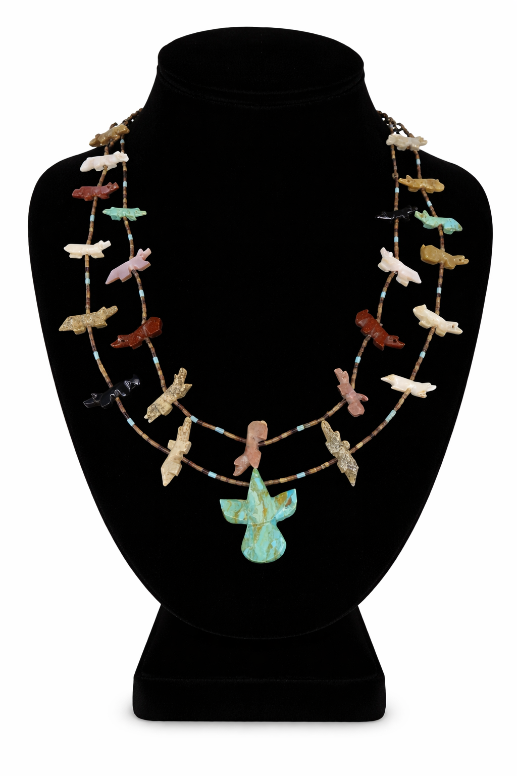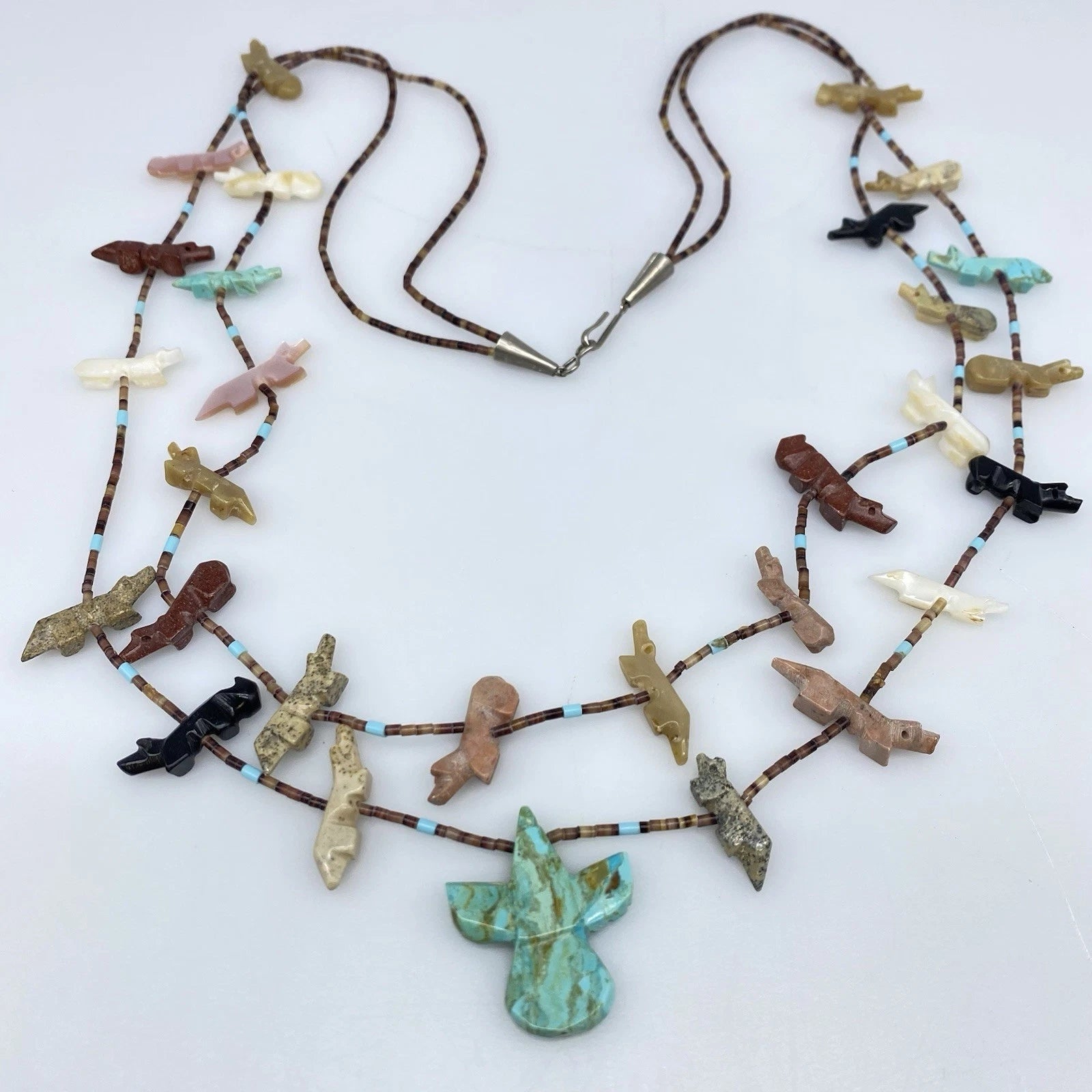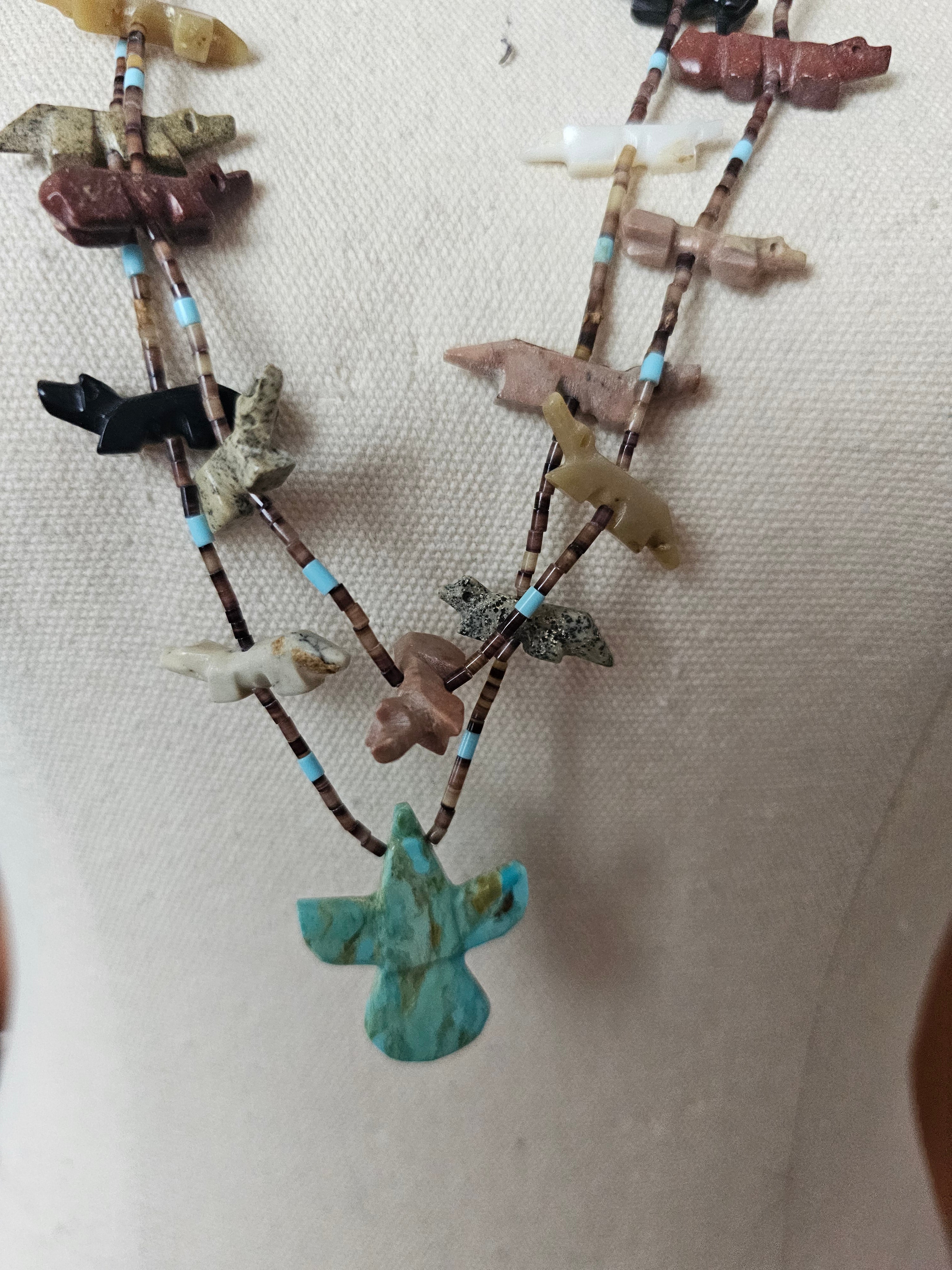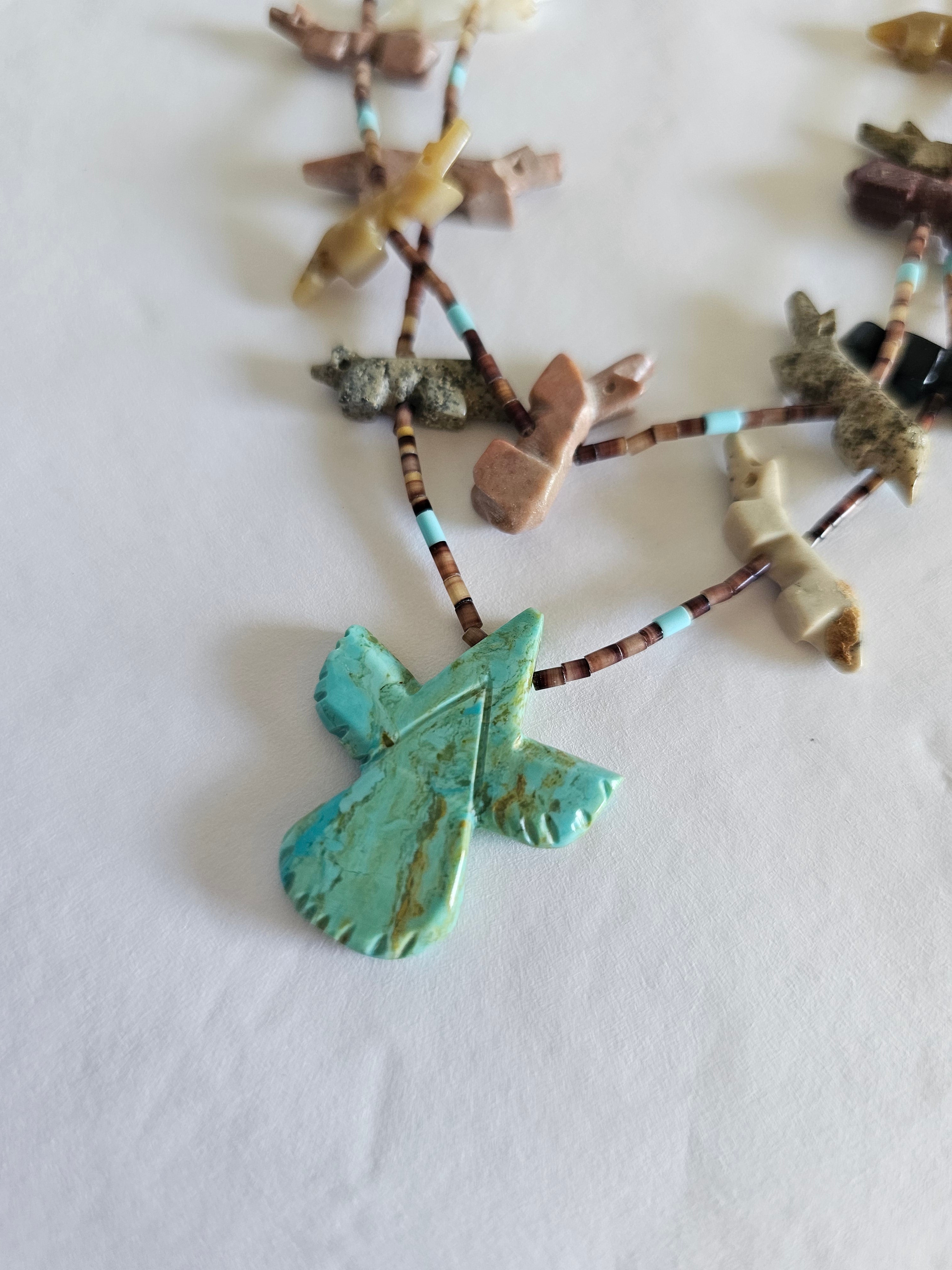 • Traditional Zuni hand-carved fetish necklace