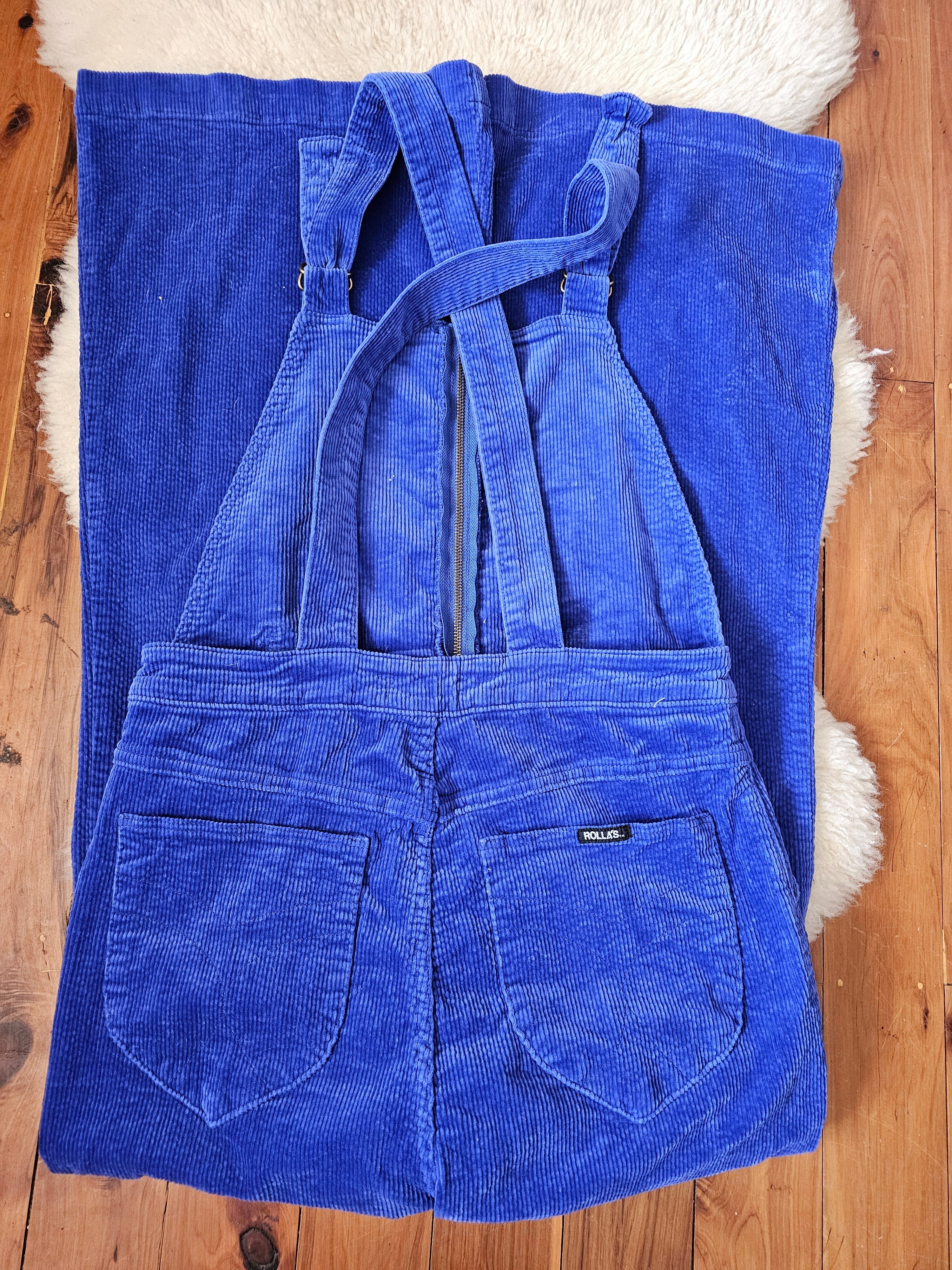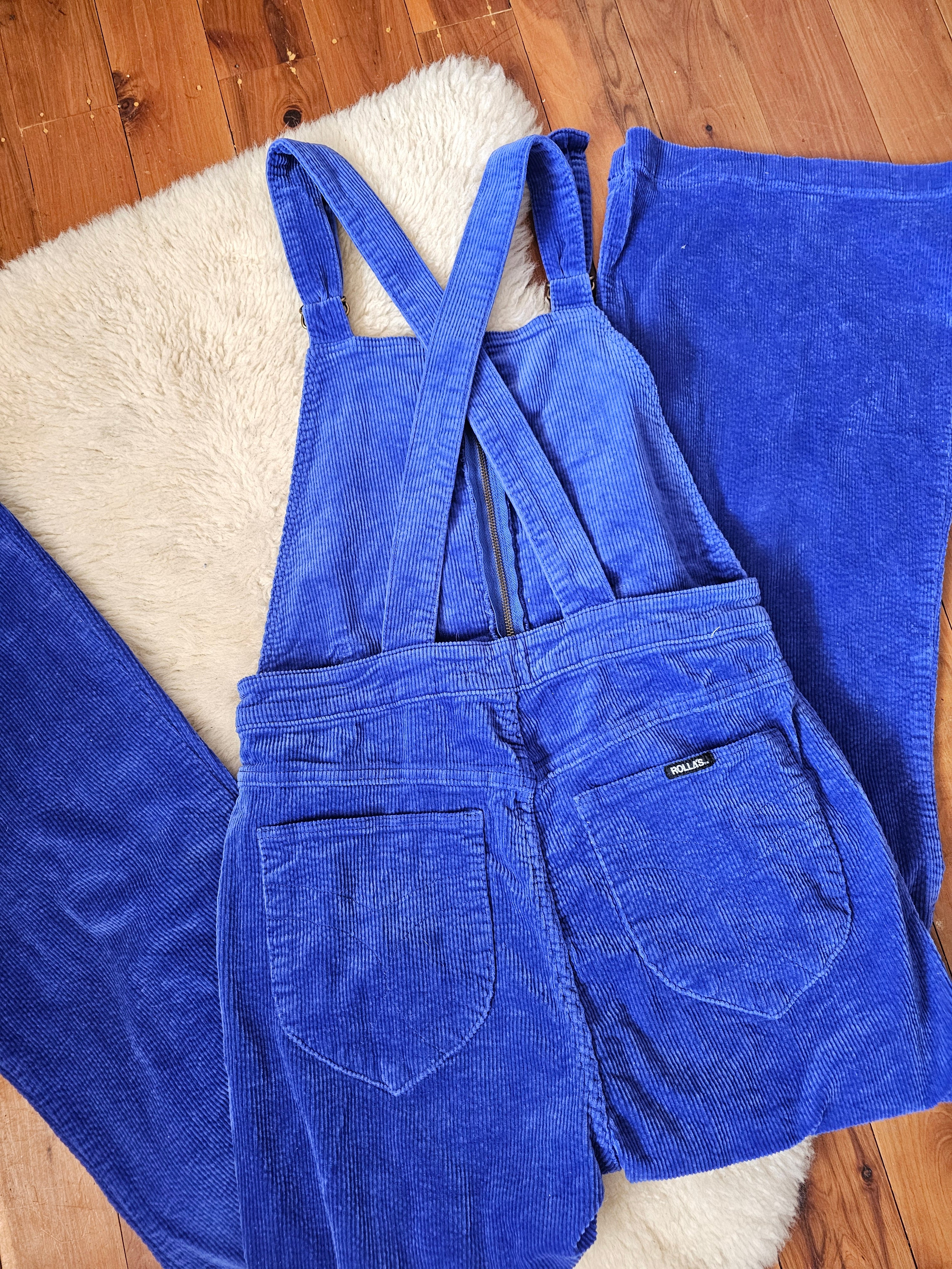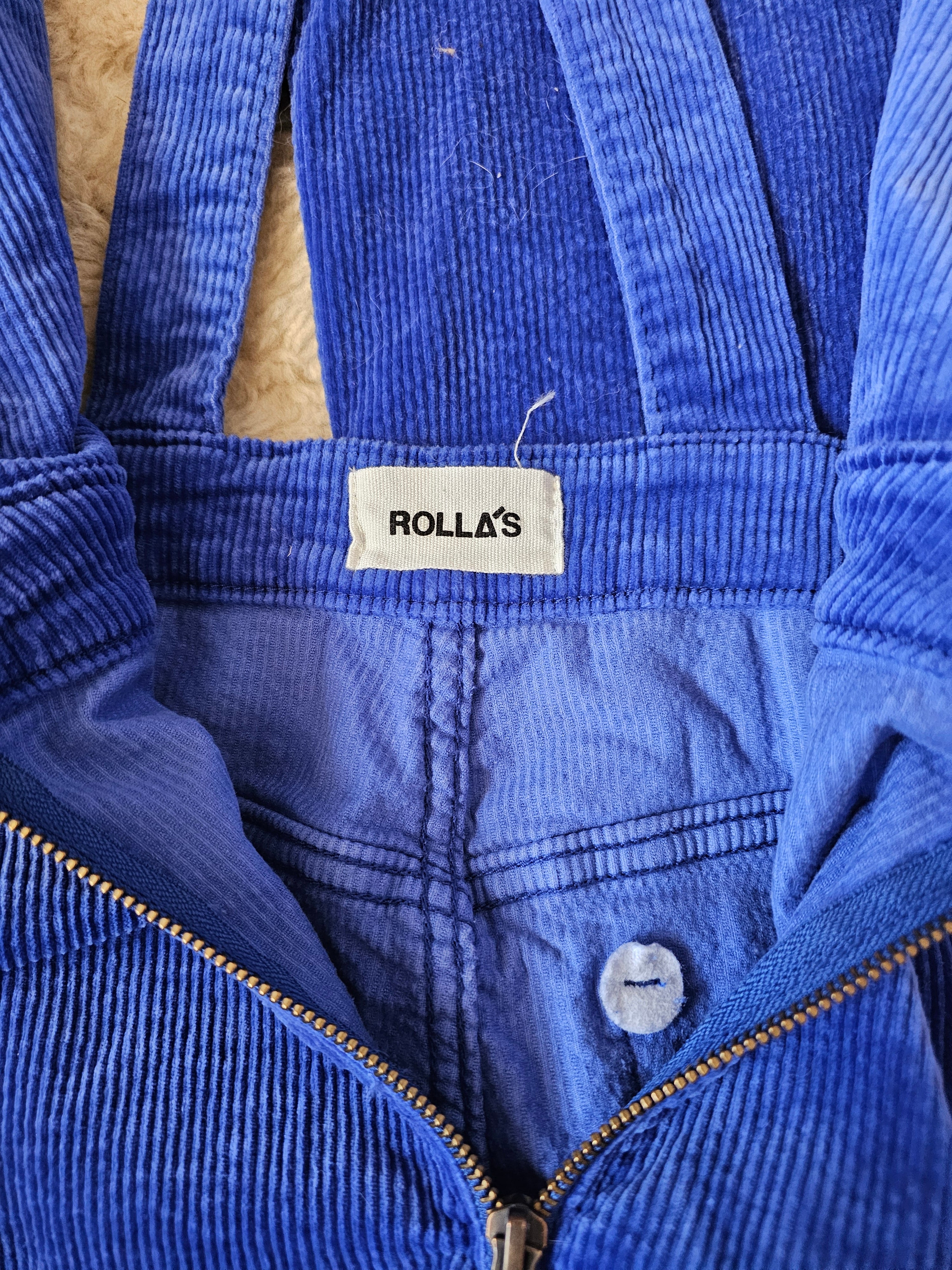 Step into 70s-inspired perfection with these rare cobalt blue corduroy overalls from the Phoebe Tonkin X Rolla’s collaboration. A sell-out style that’s become highly sought-after, designed in the signature Eastcoast Flare fit – snug through the hips and thighs with a dramatic retro flare leg.