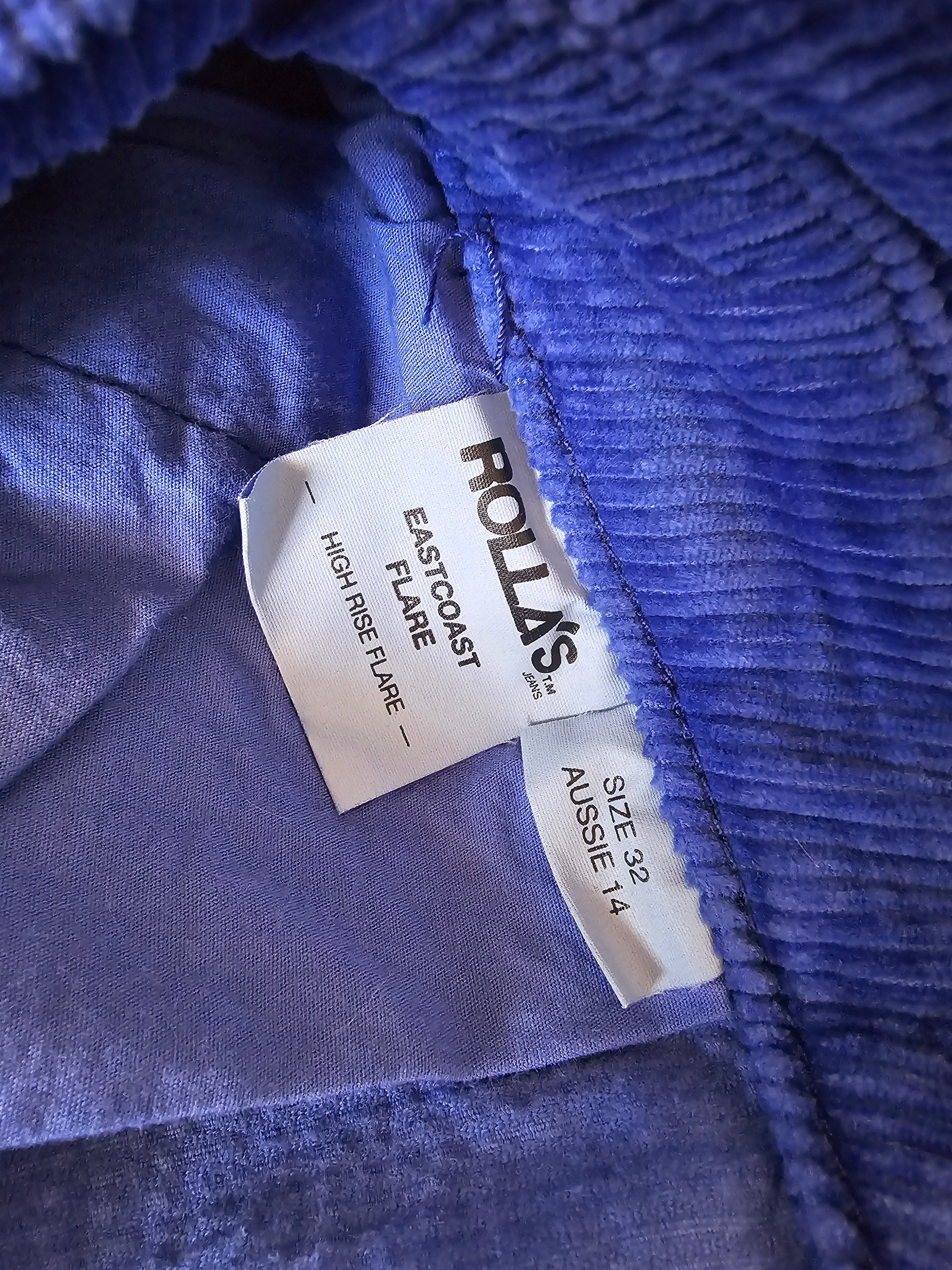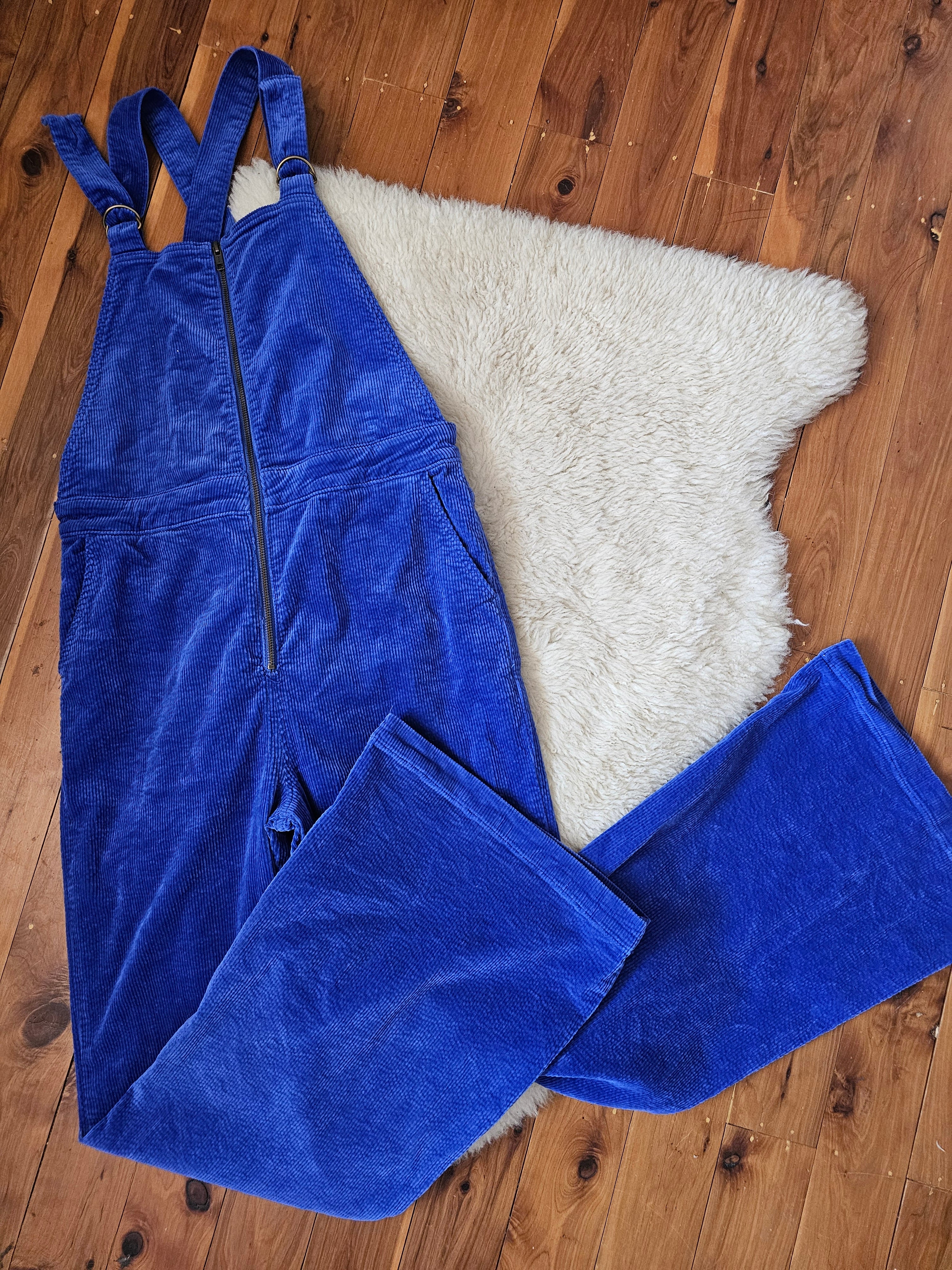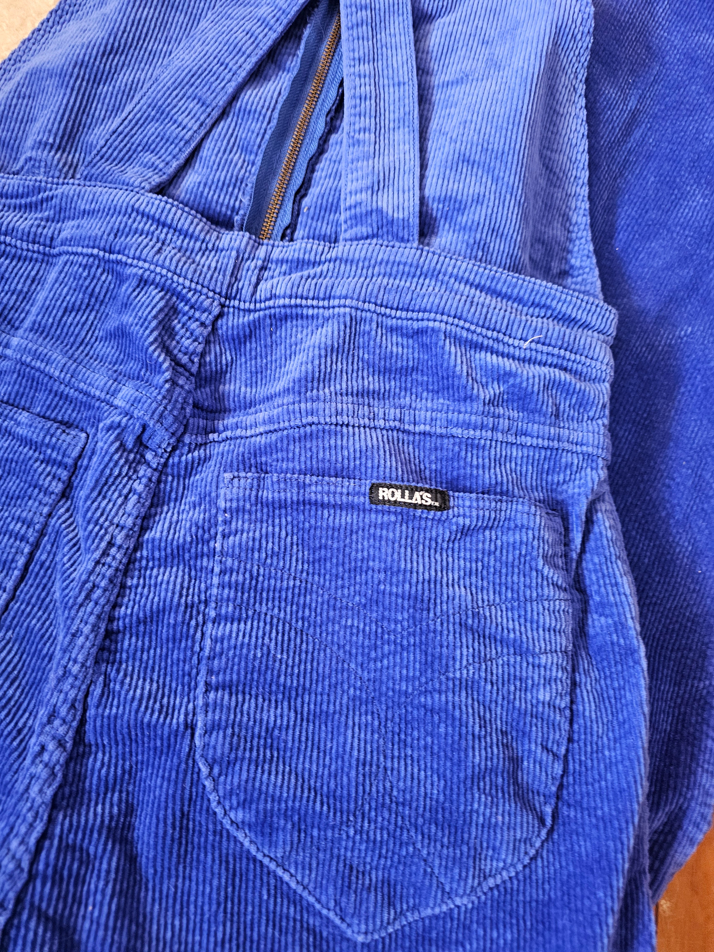 Step into 70s-inspired perfection with these rare cobalt blue corduroy overalls from the Phoebe Tonkin X Rolla’s collaboration. A sell-out style that’s become highly sought-after, designed in the signature Eastcoast Flare fit – snug through the hips and thighs with a dramatic retro flare leg.