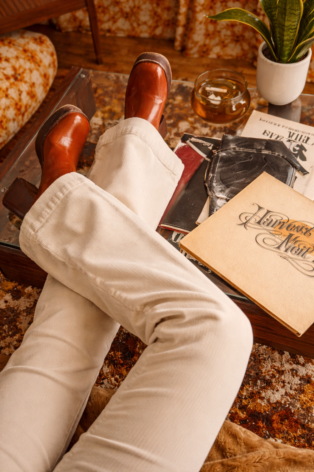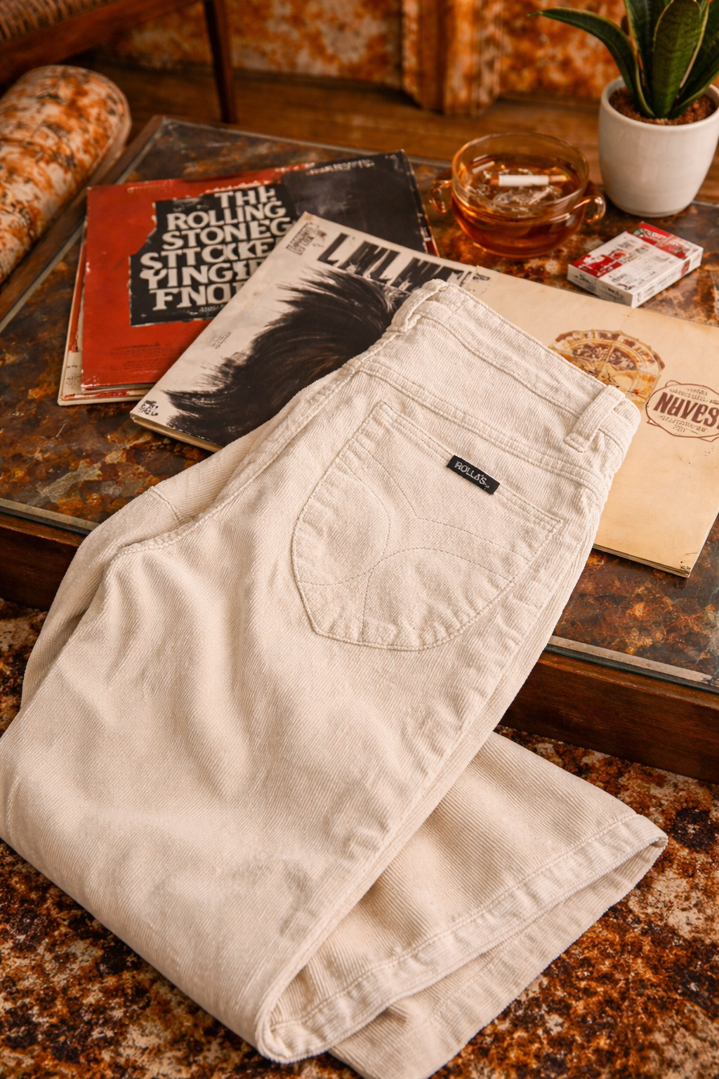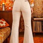There’s something about vanilla cord in the 70s — soft cream under stage lights, desert dust at golden hour, boots scuffing across wooden floors while records spin in the background. These are that kind of flares. Clean. Confident. Effortlessly cool.