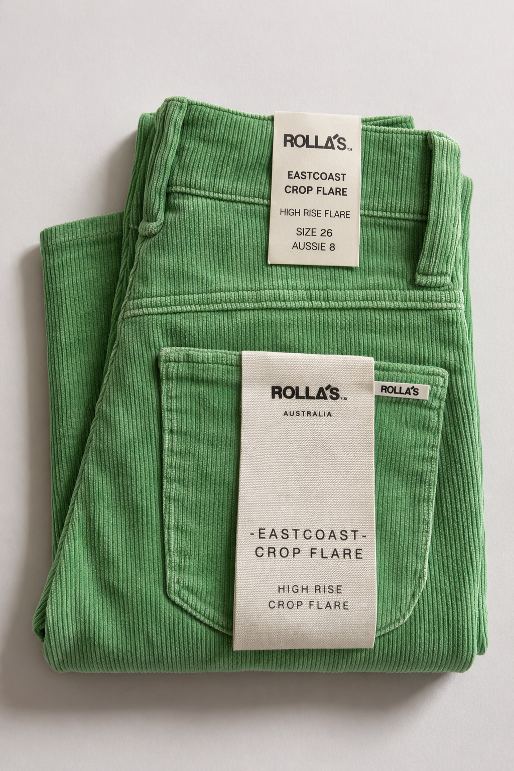 Turn heads in the Rolla’s Eastcoast Flare Crop Corduroy Pants in a vibrant Apple Green. These brand new with tags high-waisted flares feature a cropped leg and soft stretch corduroy for the ultimate mix of retro charm and modern comfort.