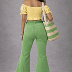 These green cropped flare pants are a bold choice for lovers of vintage vibes, colour-pop styling, and flattering fits. A standout piece for festival outfits, streetwear layering, or everyday retro flair.