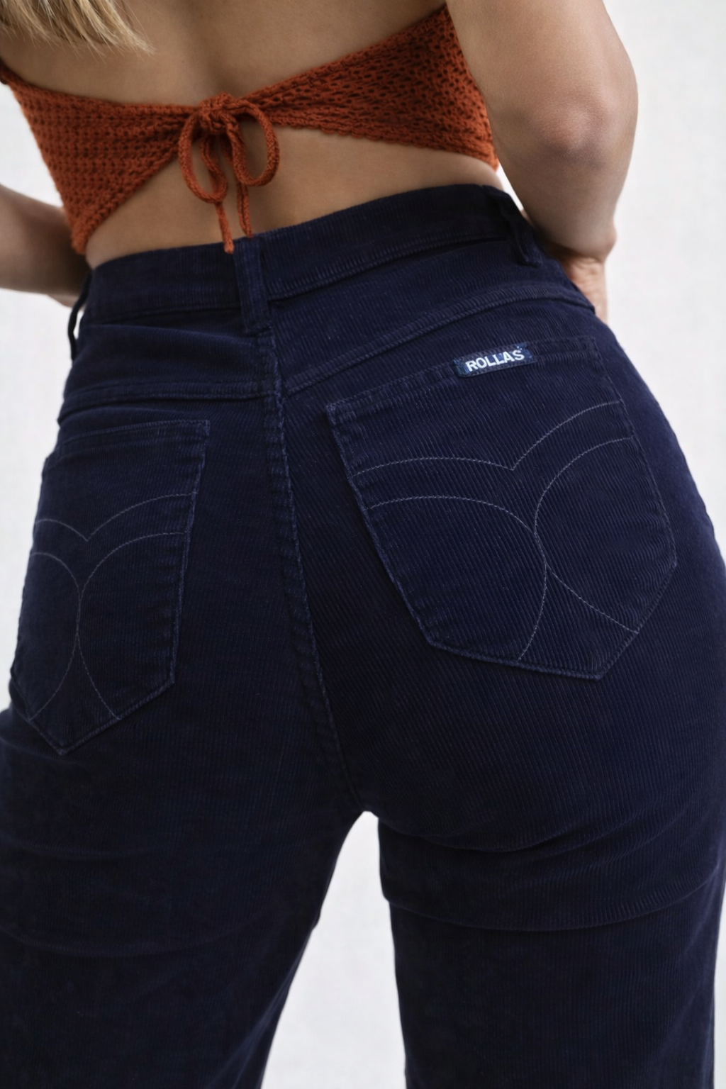 • Authentic Rolla’s navy corduroy flare pants