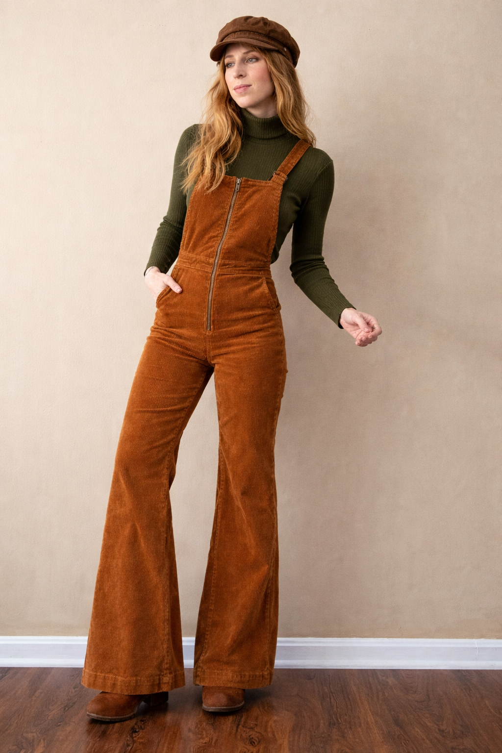 These Rolla’s corduroy overalls capture that effortless 70s vintage spirit — fitted through the waist with dramatic flared legs and a statement zip front. The warm rust tone and soft corduroy texture give them that iconic retro feel Rolla’s is known for, making them an easy standout piece for any boho or vintage wardrobe.