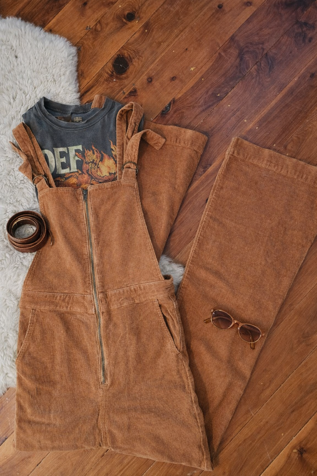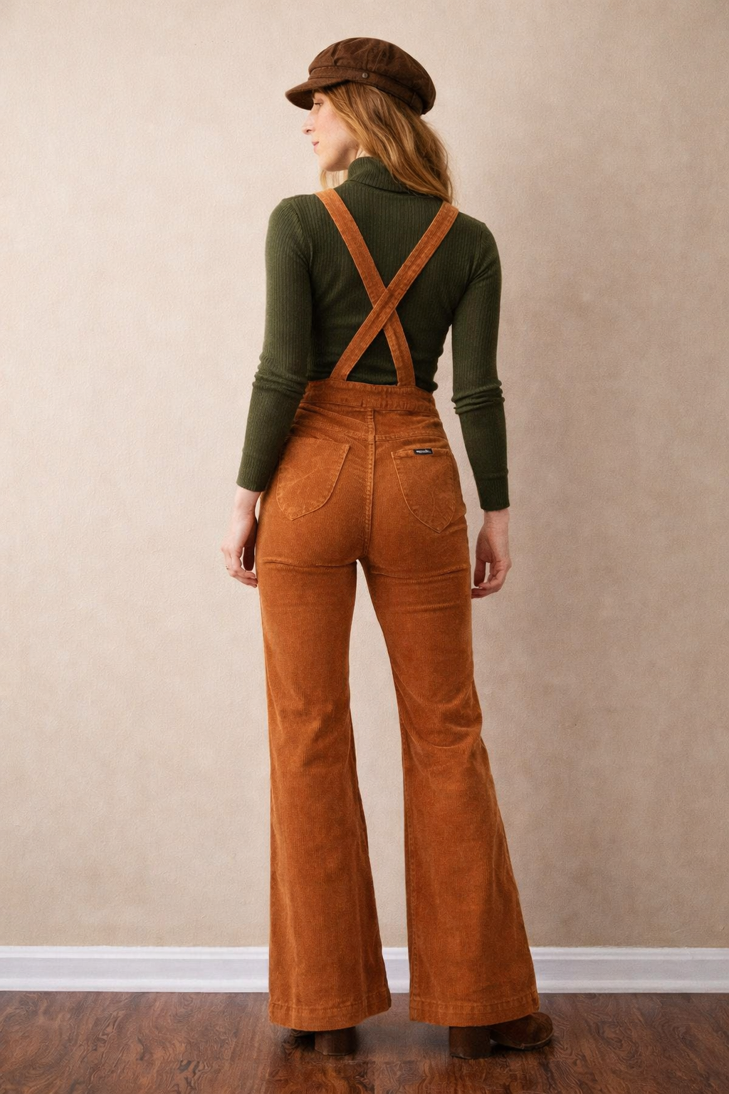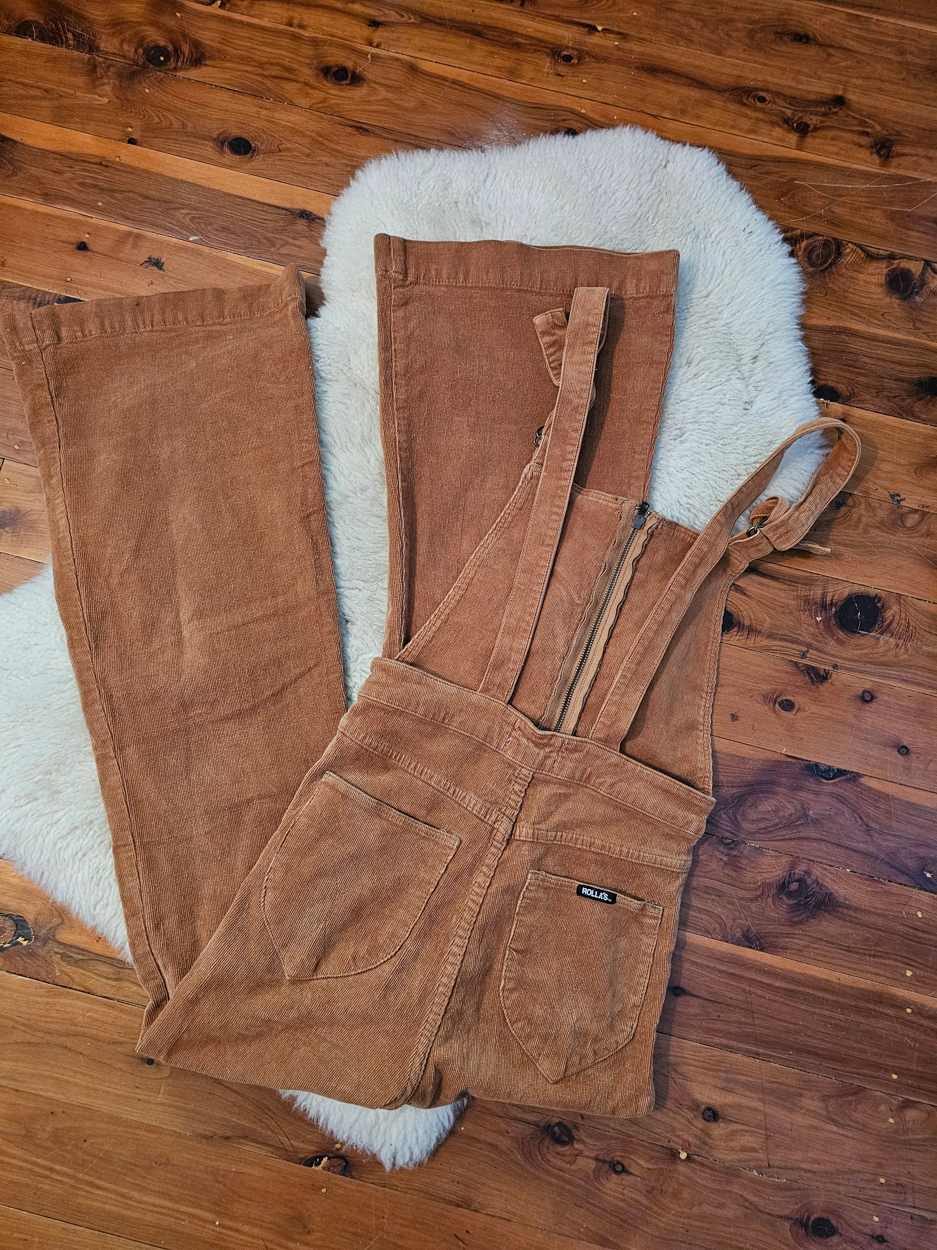 Rollas Rust Corduroy Dungarees – 70s Inspired Flared Overalls 26/8