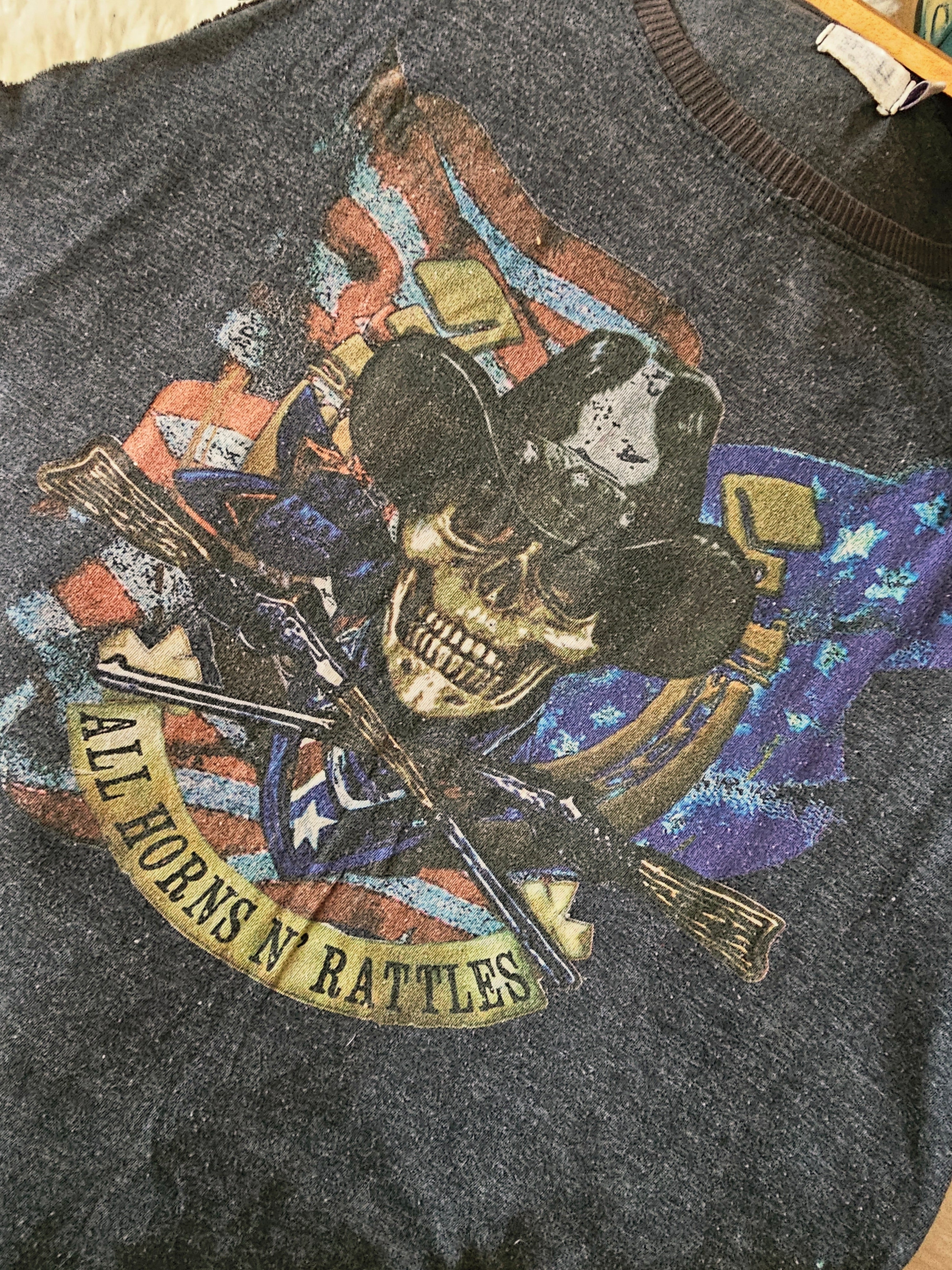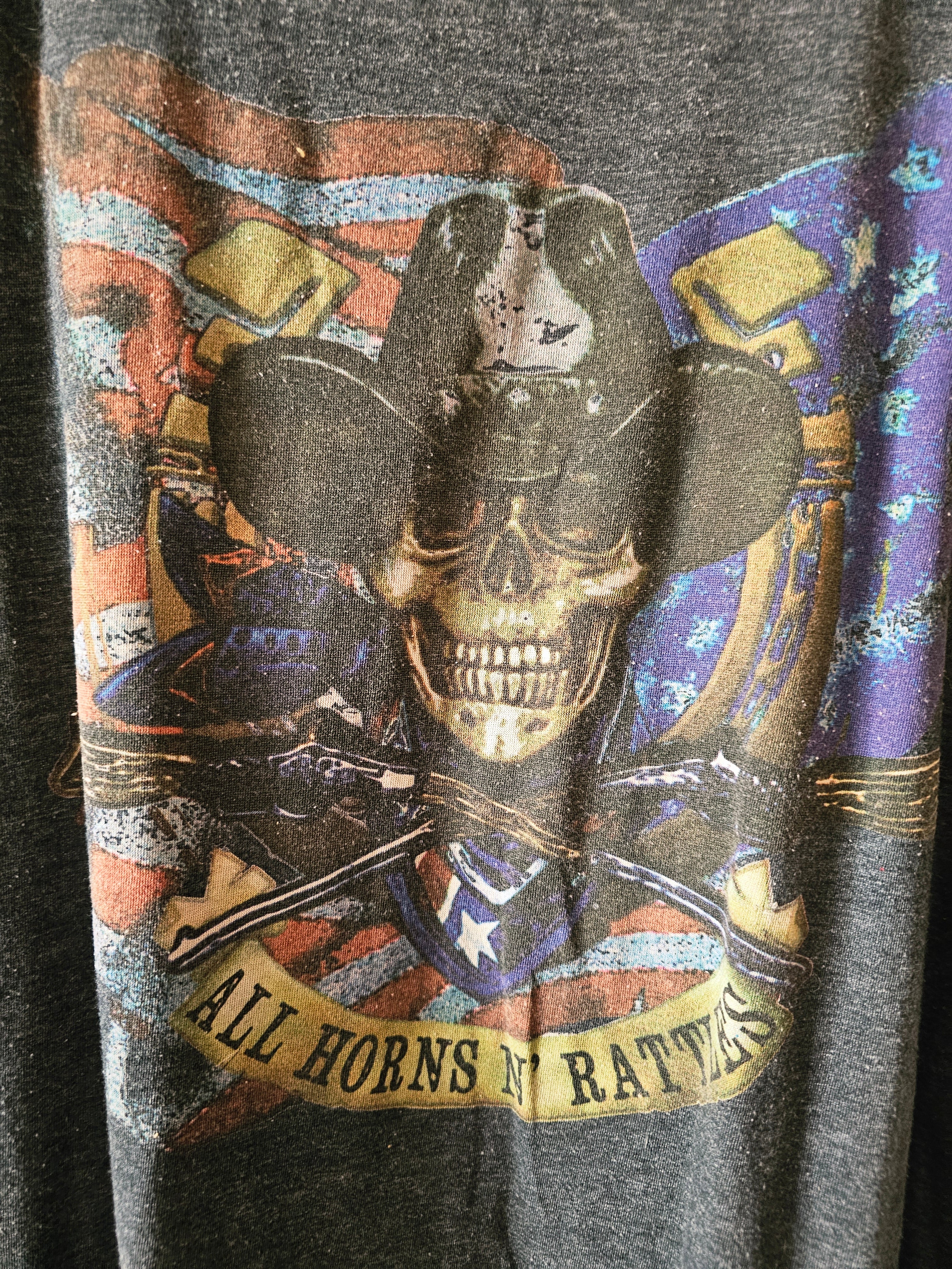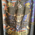 Super sought-after early Spell drop from 2012 – the kind of piece collectors hunt down. Originally a tee, the sleeve cuffs have been cut off, giving it more of a tank-style edge while keeping the original Spell vibes alive. Size 8 (XS) – also fits Small to Medium depending on desired fit Measures 45cm pit to pit, 59cm length No holes, only light pilling from age Beautifully broken-in and full of life Rare early-day Spell design, aged with character A true one-off from Spell’s beginnings – the perfect piece for anyone who loves collecting and wearing their vintage originals.