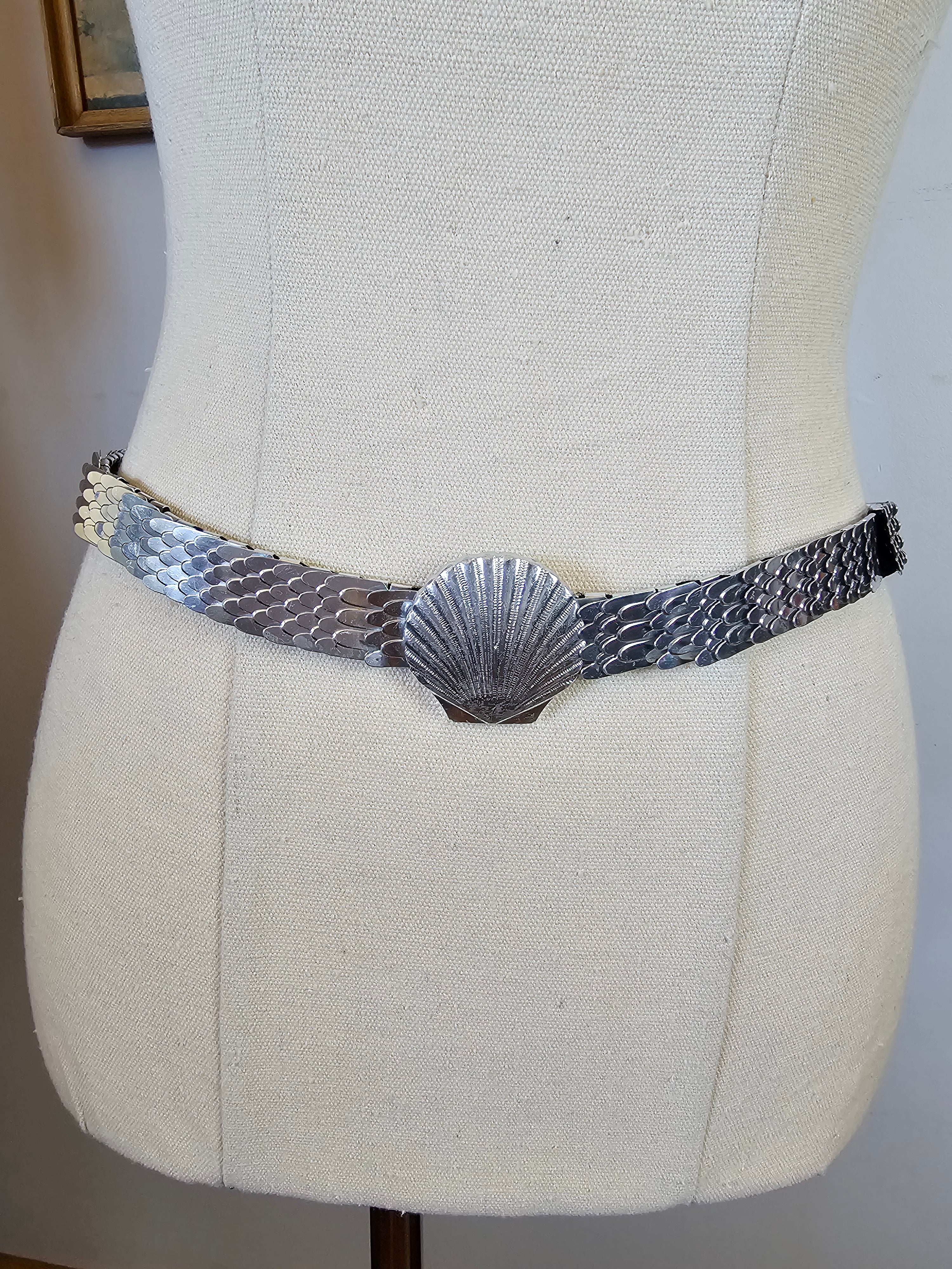 Vintage Silver-Tone Seashell Stretch Belt – Coastal Boho