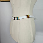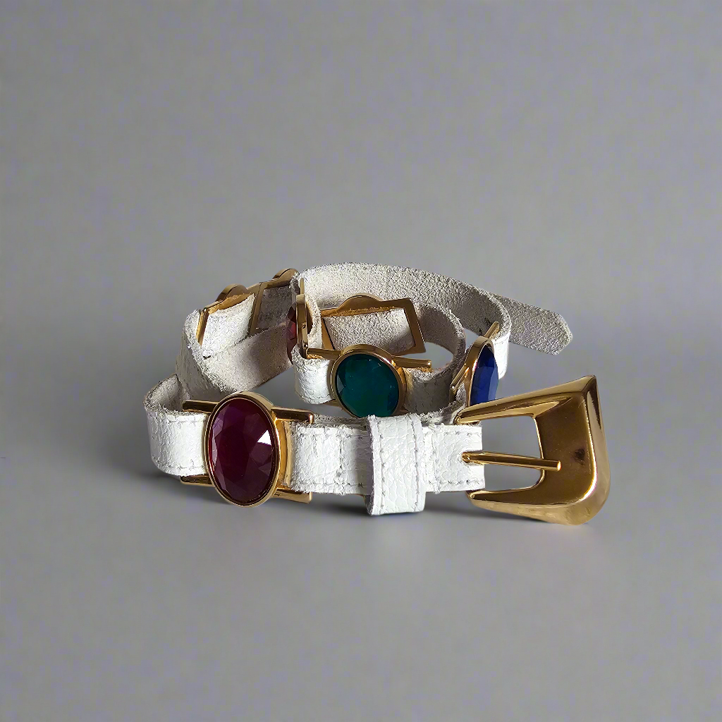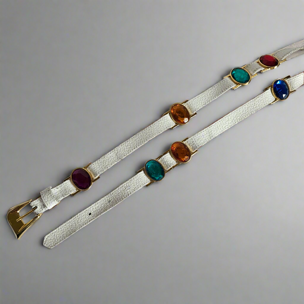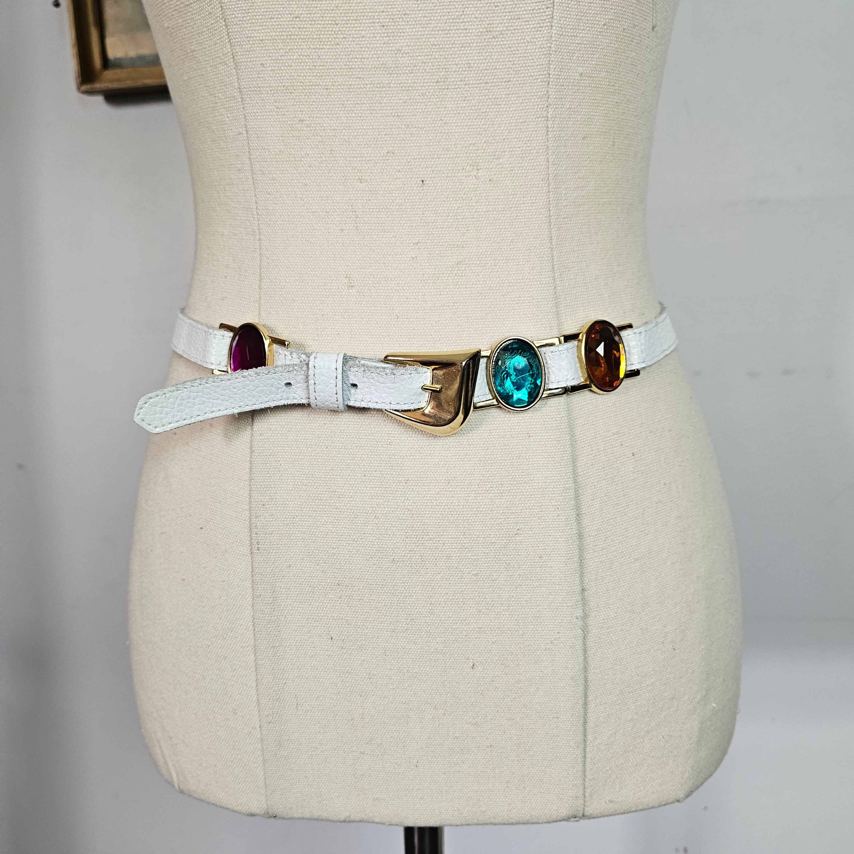Vintage White Leather Belt with Jewel Tones – 80s Glam Vibes