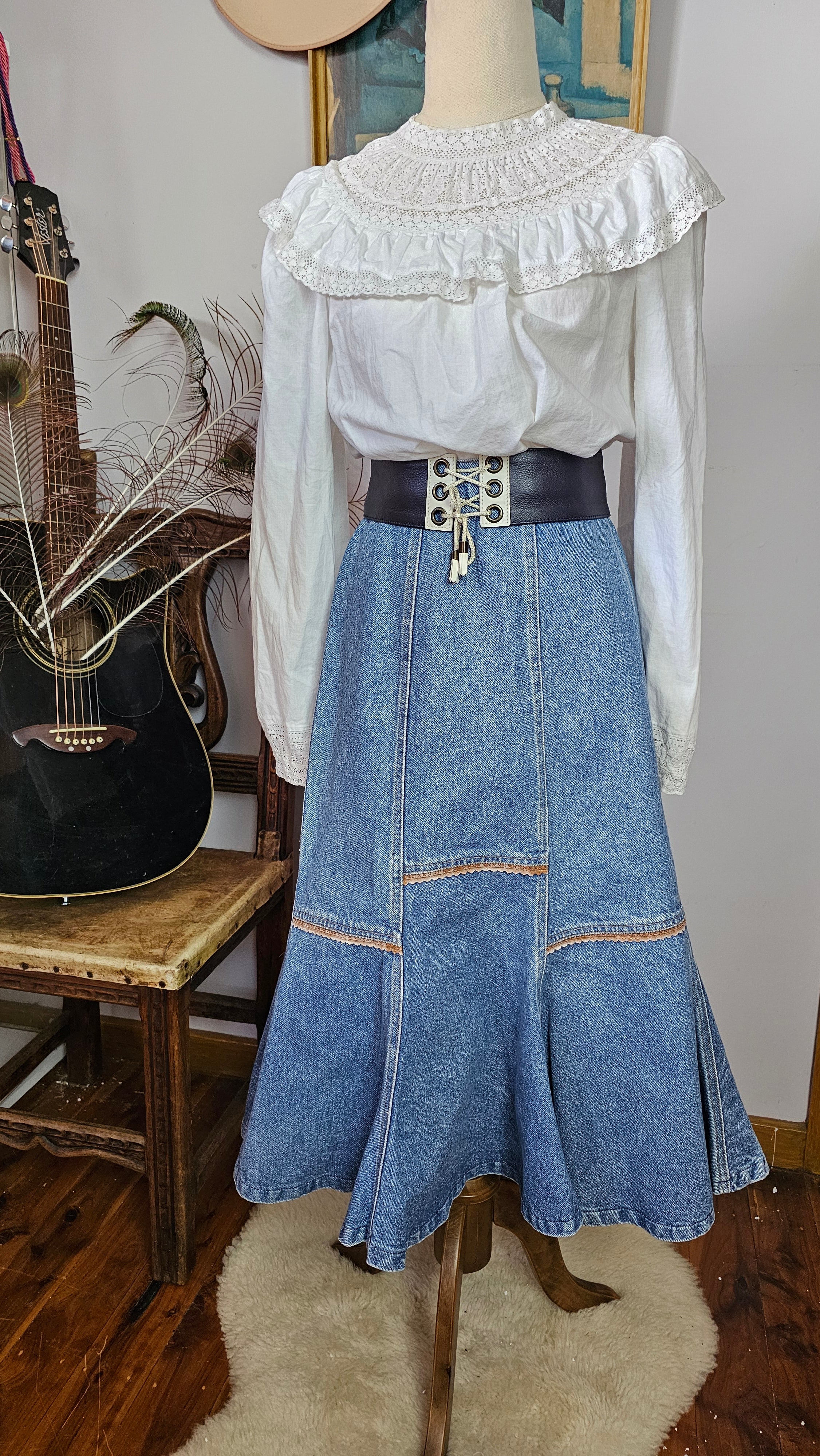 Perfect with a romantic blouse or chunky knit — this one’s made for weekend wandering and vintage-loving souls.