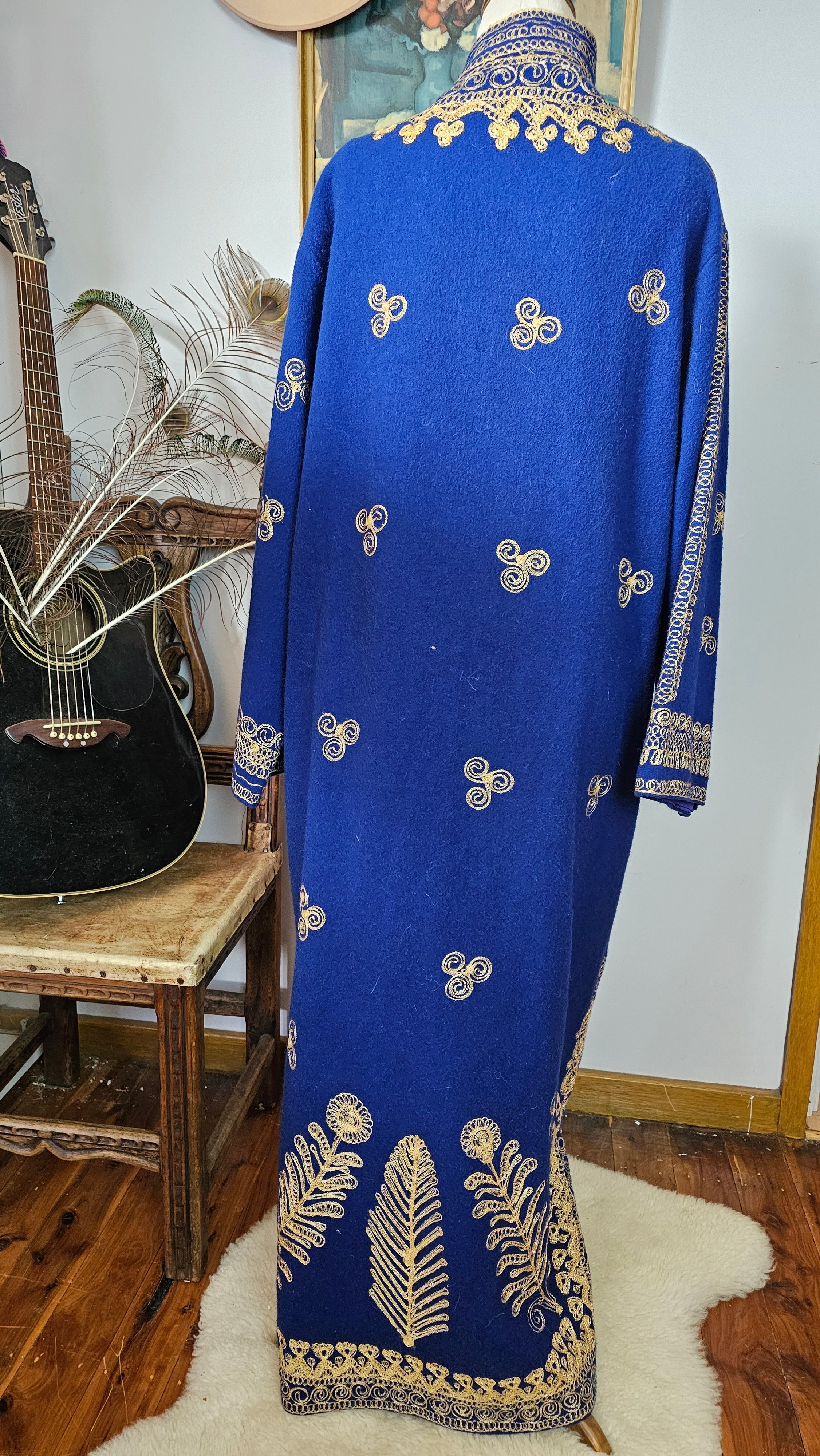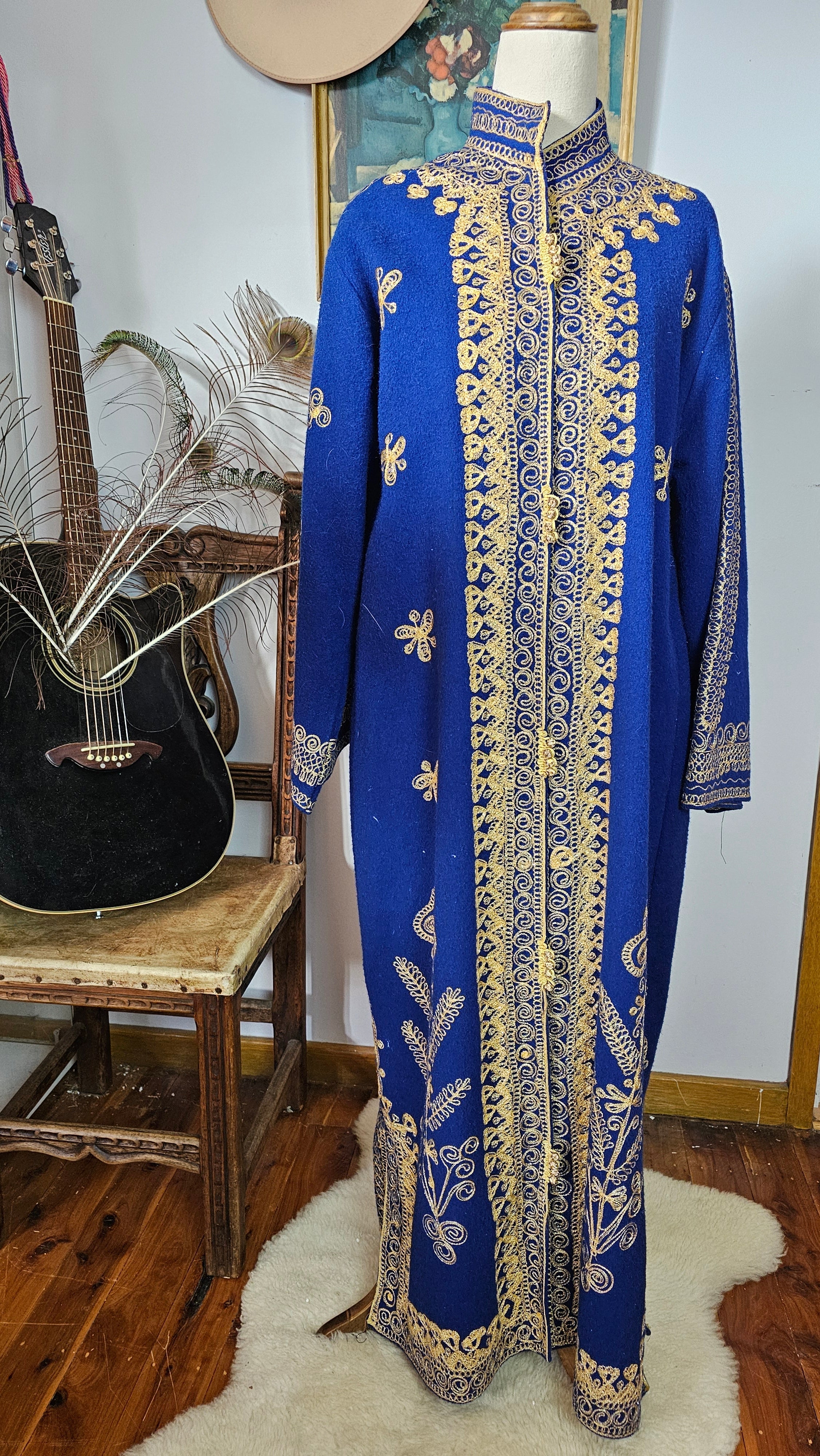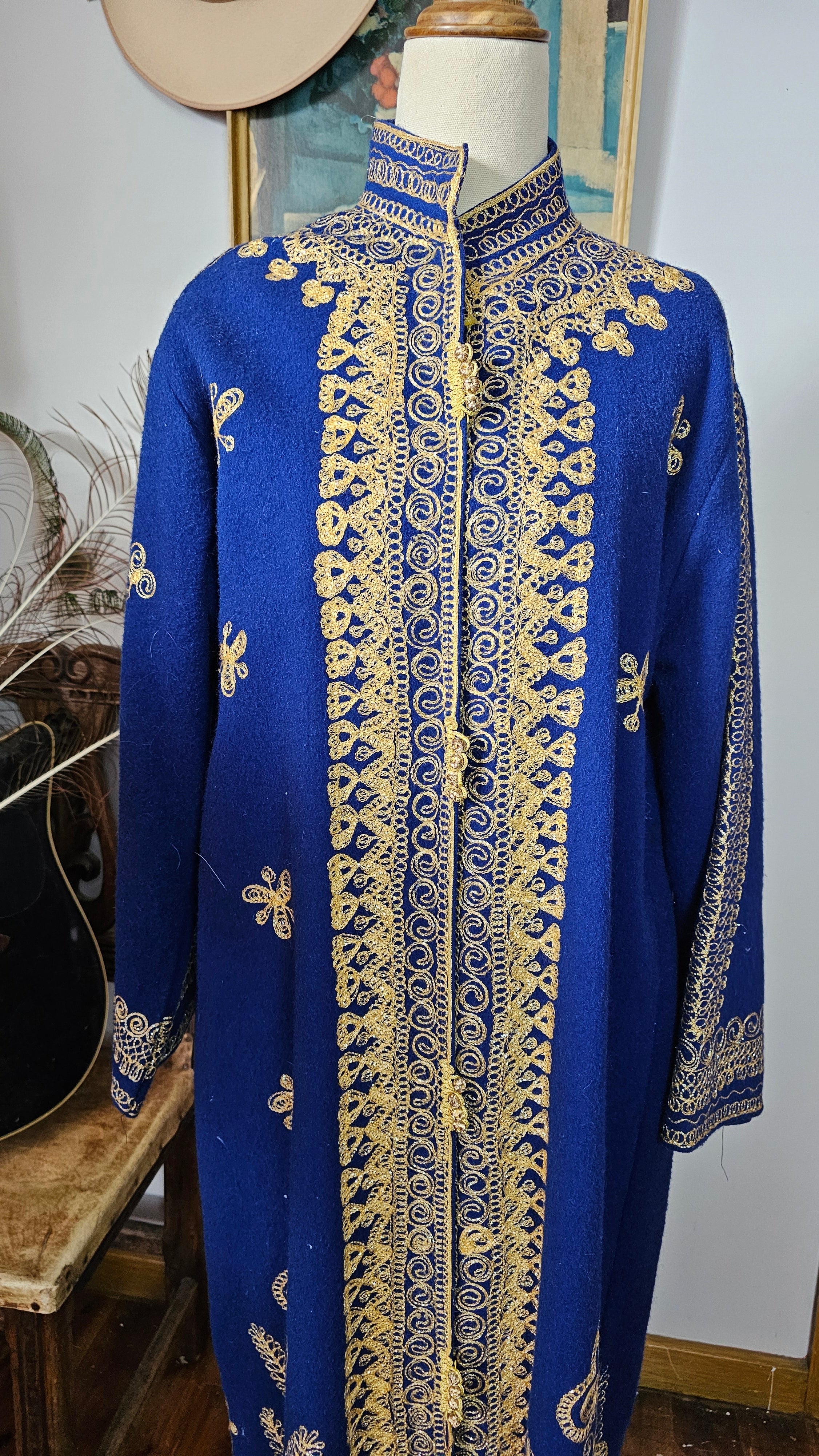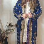 Royal Blue & Gold Embroidered Vintage Robe Coat – Bohemian Queen Energy M/L