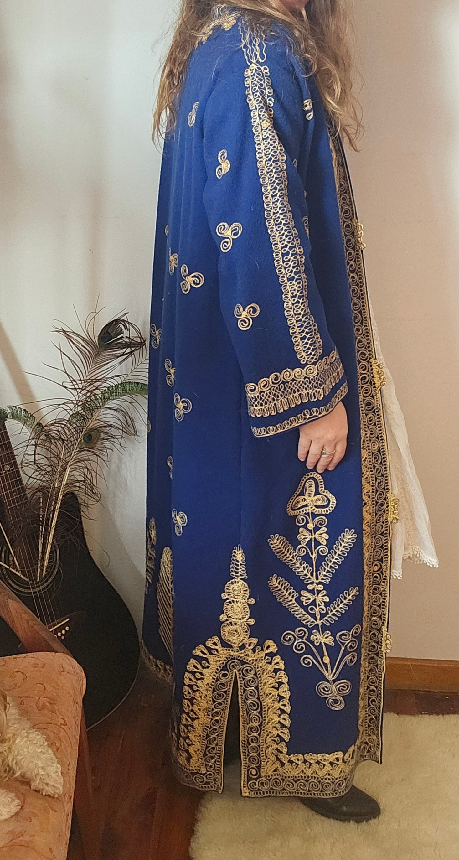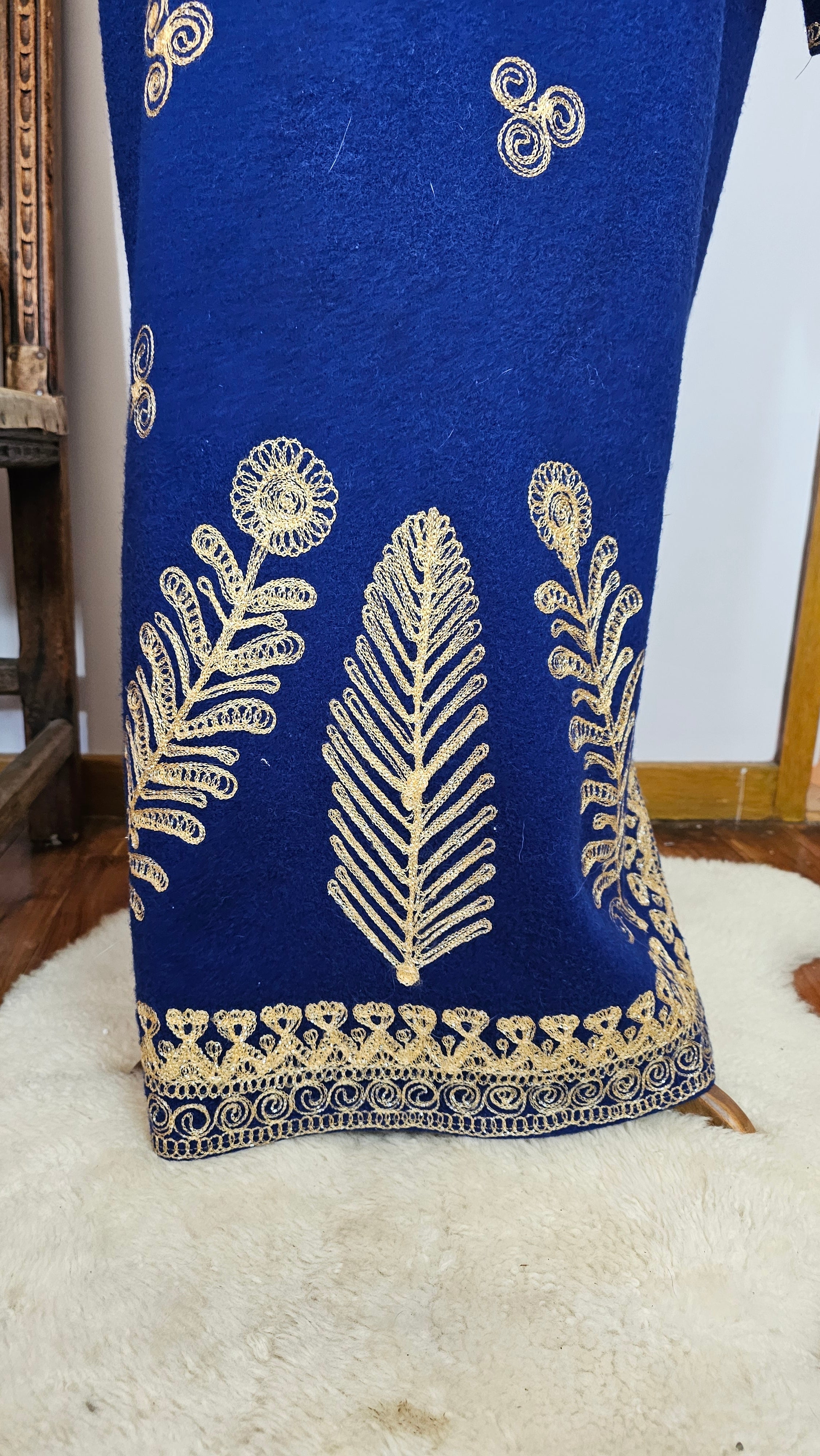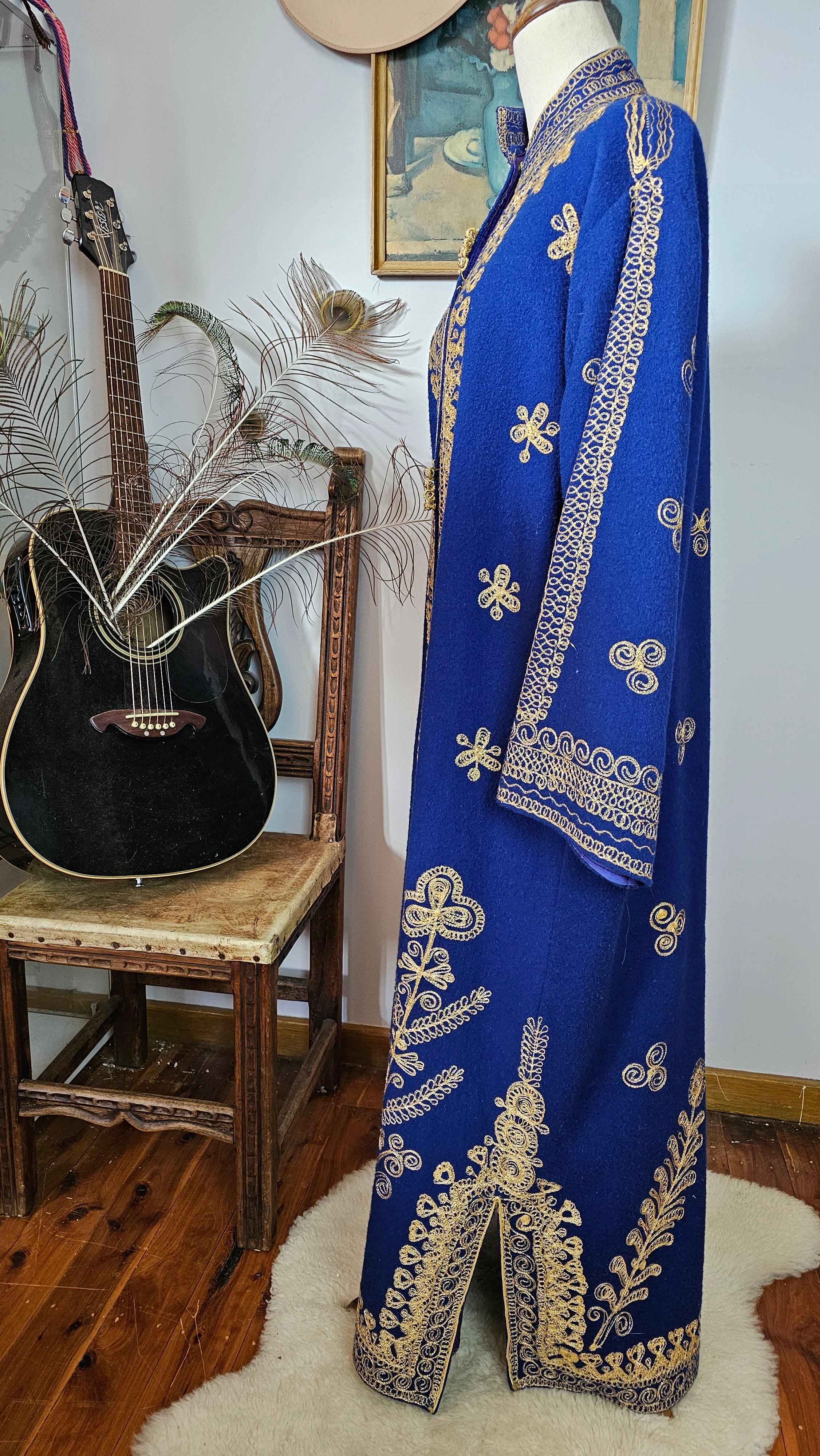 Royal Blue & Gold Embroidered Vintage Robe Coat – Bohemian Queen Energy M/L