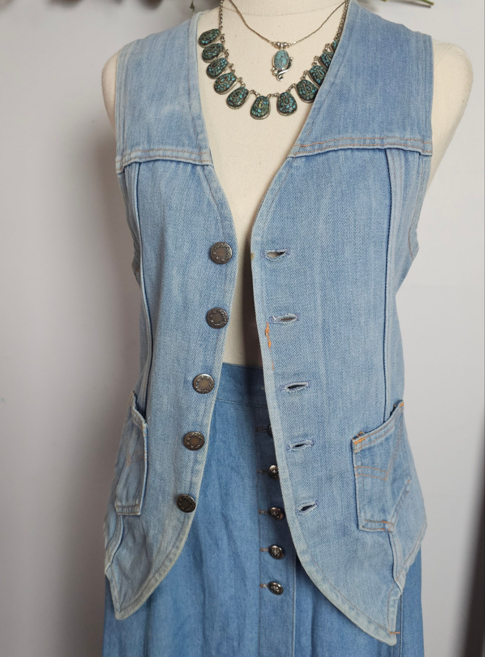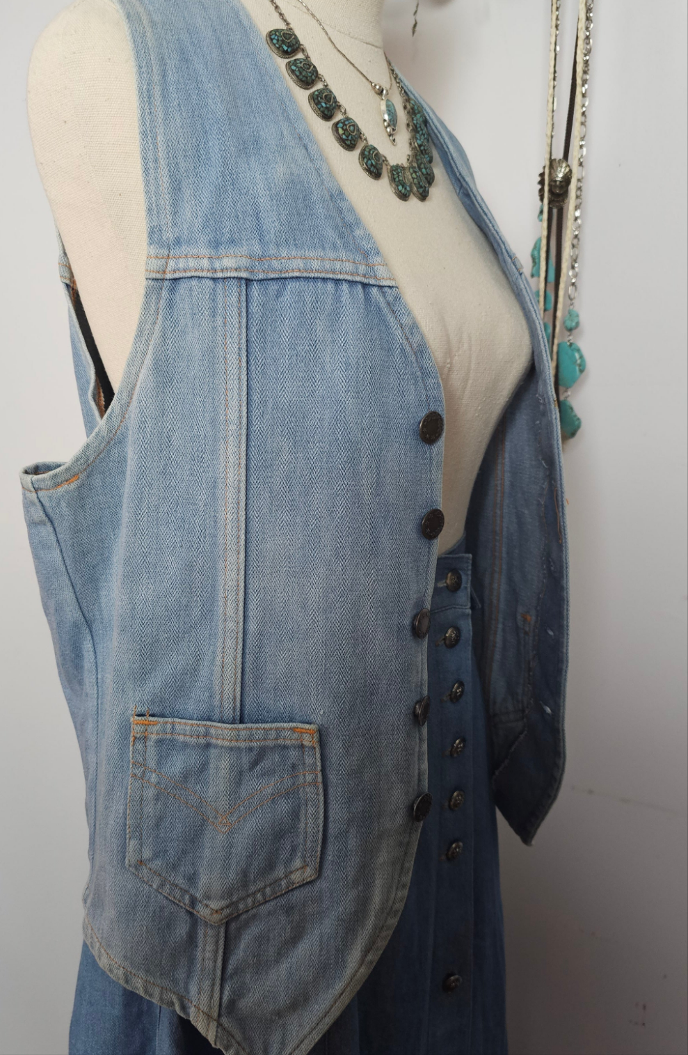 GENUINE VINTAGE 70s denim vest with button-up 10/12