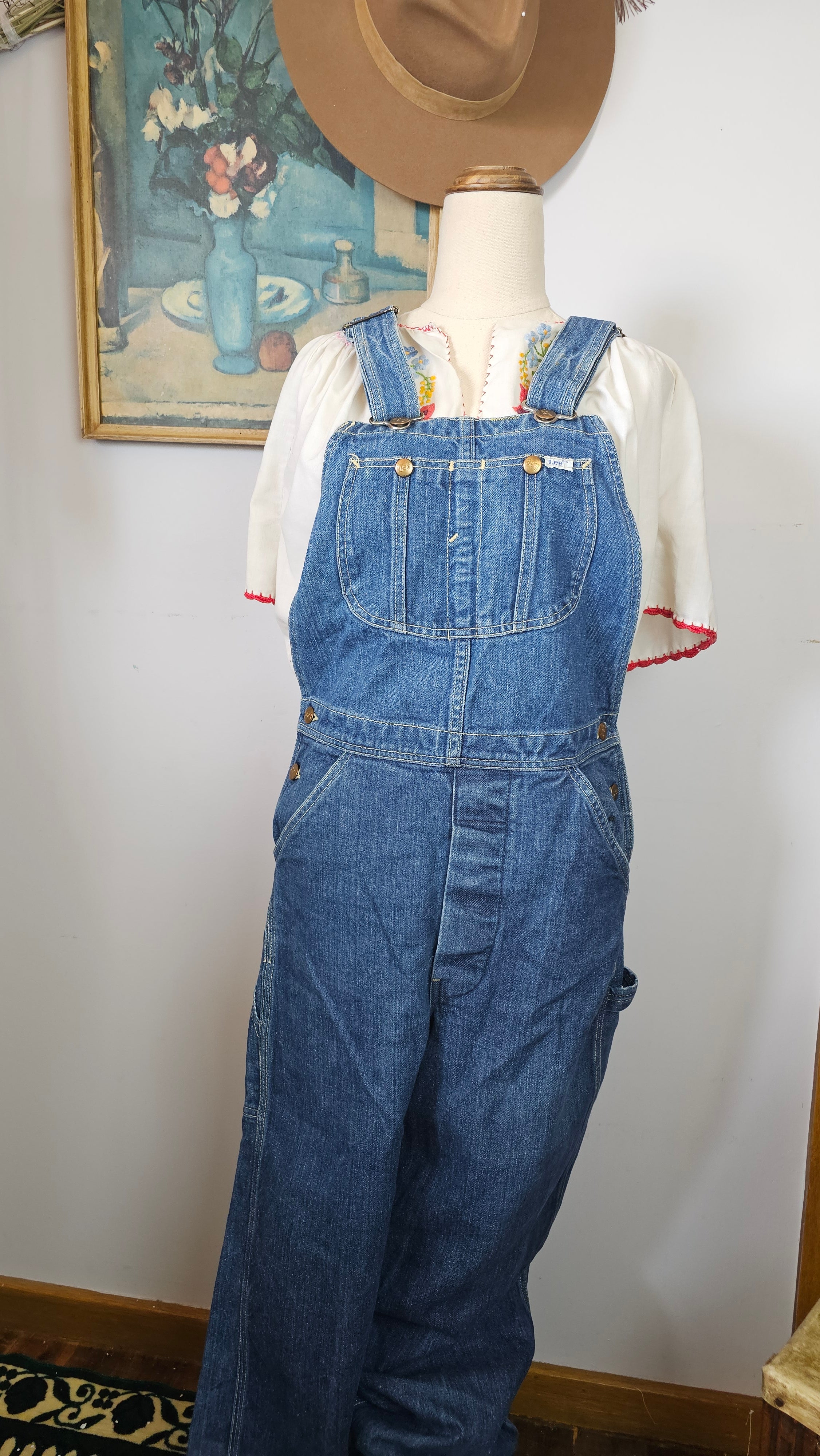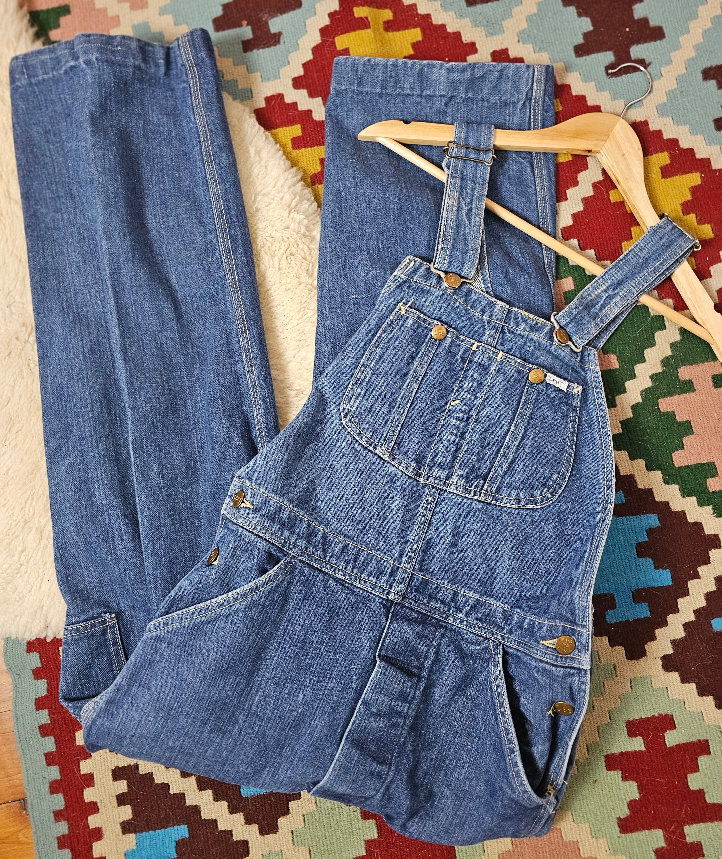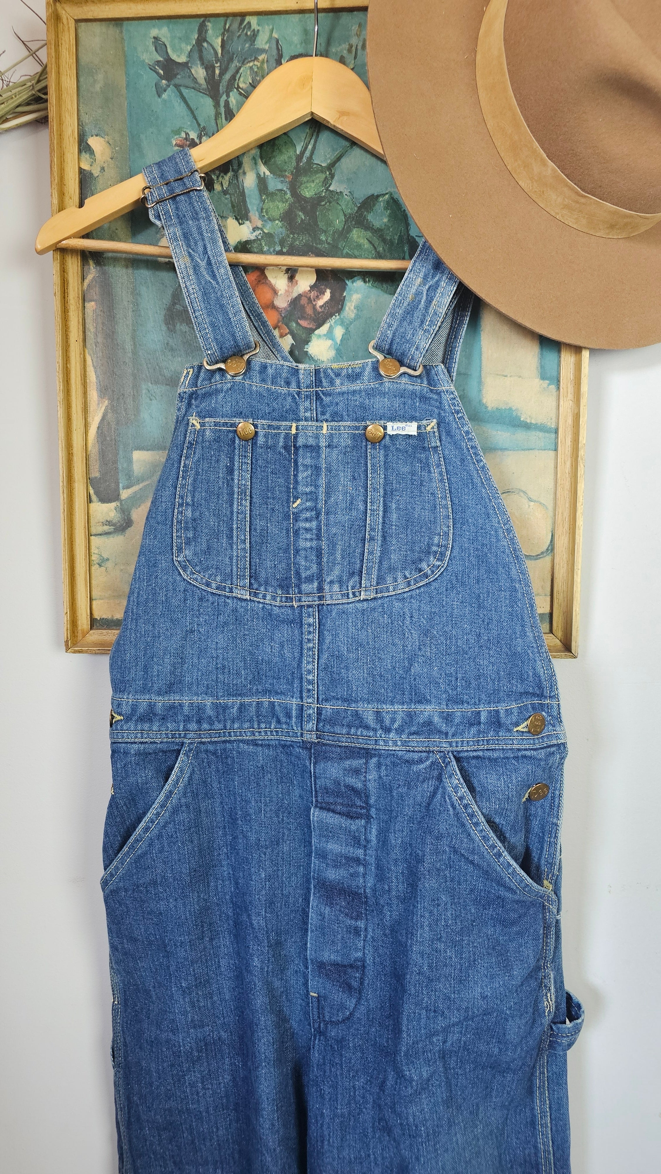 An effortless throwback to true vintage workwear, these original Lee overalls carry that perfectly worn mid-blue wash and relaxed straight leg that only gets better with time. The authentic carpenter detailing and iconic back patch give them that lived-in, all-American feel – the kind of piece you build outfits around season after season.