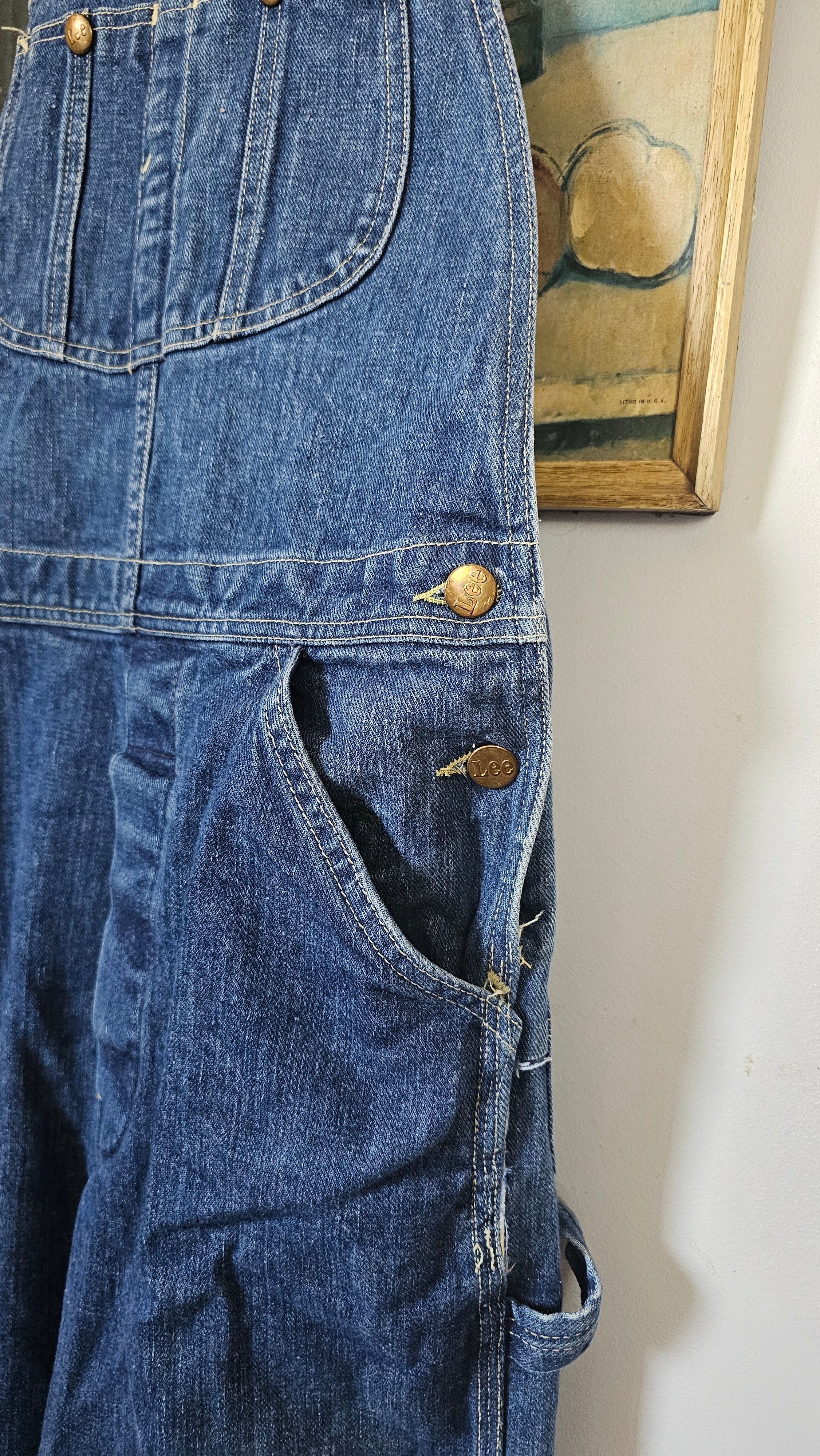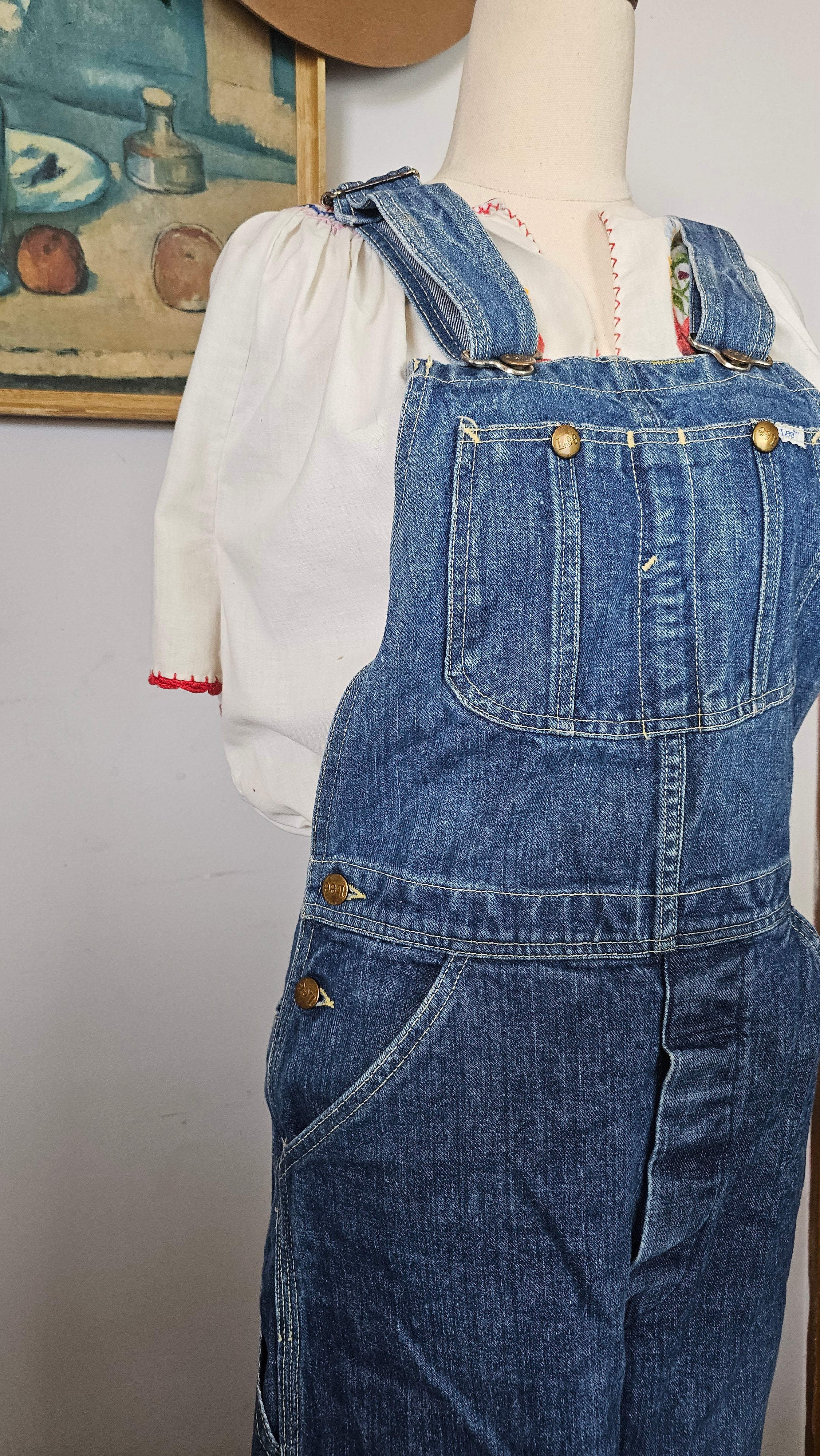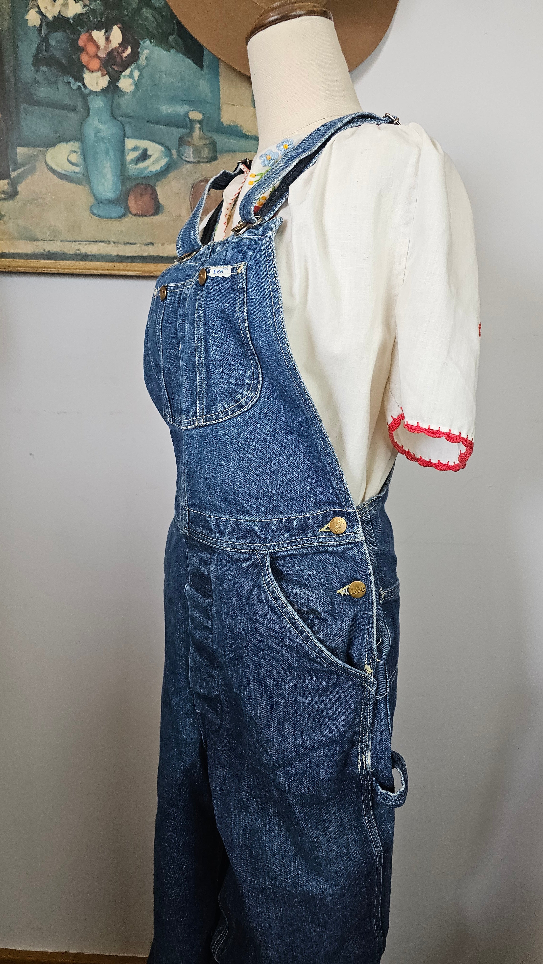 An effortless throwback to true vintage workwear, these original Lee overalls carry that perfectly worn mid-blue wash and relaxed straight leg that only gets better with time. The authentic carpenter detailing and iconic back patch give them that lived-in, all-American feel – the kind of piece you build outfits around season after season.
