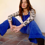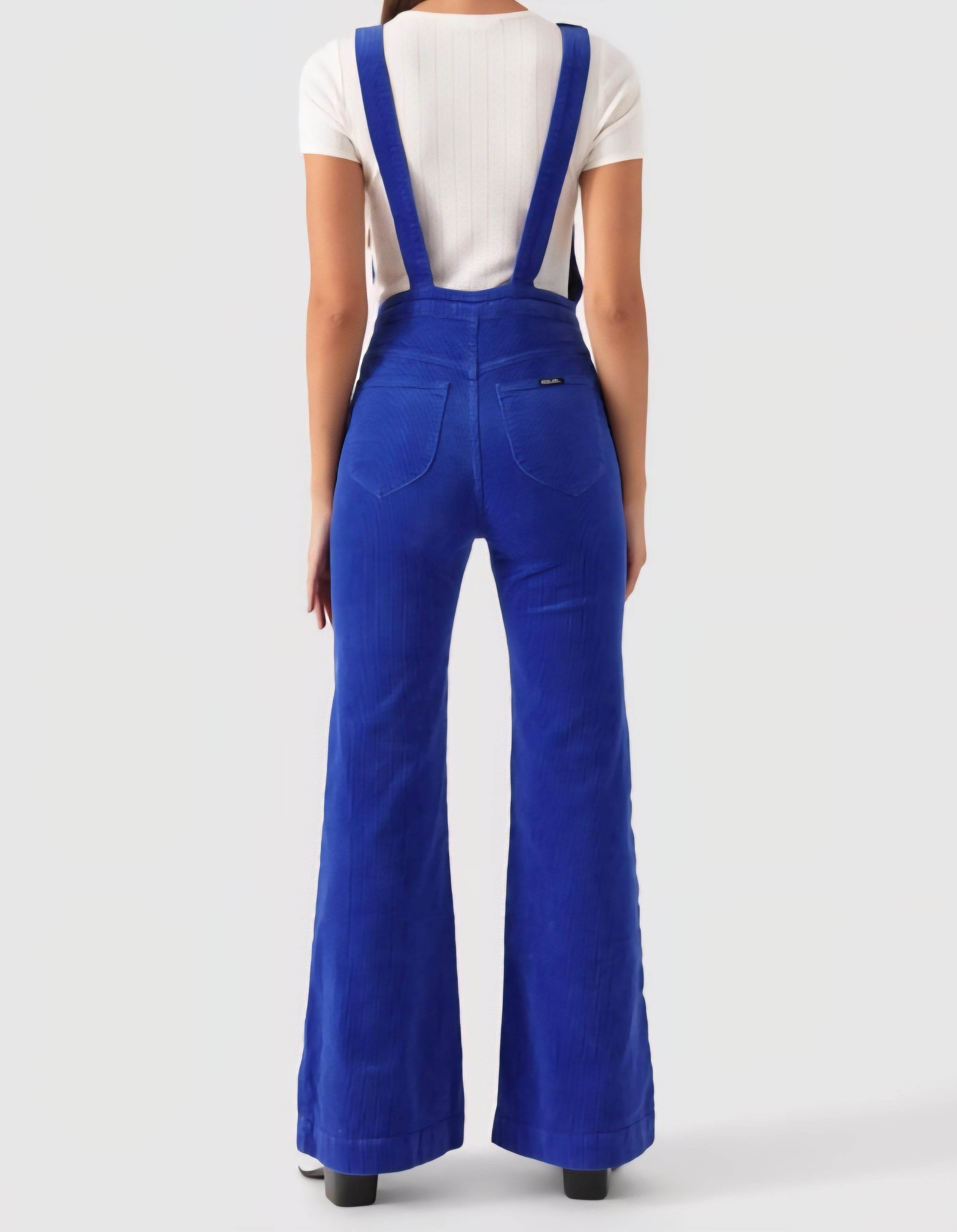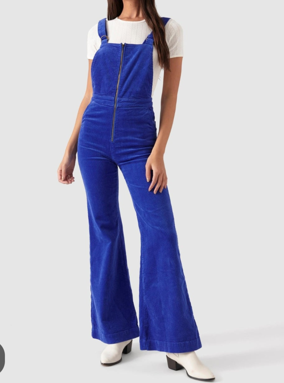 Step into 70s-inspired perfection with these rare cobalt blue corduroy overalls from the Phoebe Tonkin X Rolla’s collaboration. A sell-out style that’s become highly sought-after, designed in the signature Eastcoast Flare fit – snug through the hips and thighs with a dramatic retro flare leg.