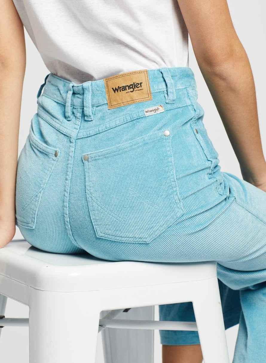 Turn heads in these Wrangler Hi Bells Flared Jeans in Blue Cord colourway — a true nod to the 70s with modern comfort built in. The soft, textured corduroy and flattering high-rise fit create that perfect balance of structure and ease, finished with Wrangler’s signature back patch and pocket stitching.