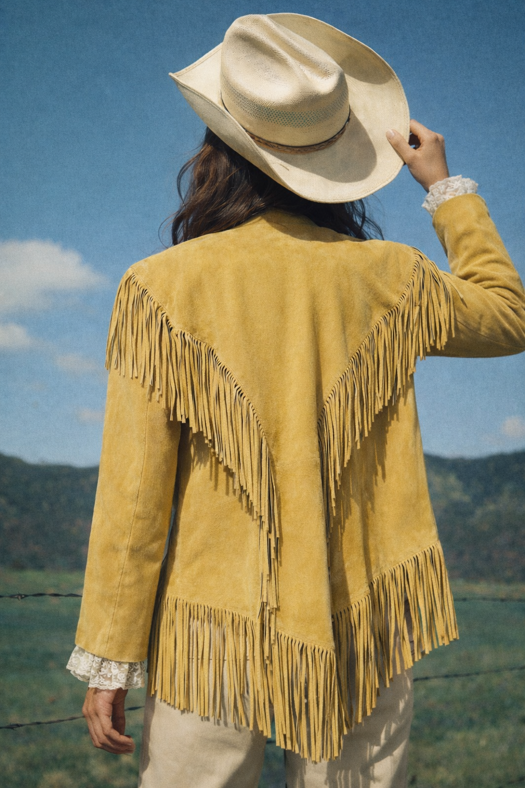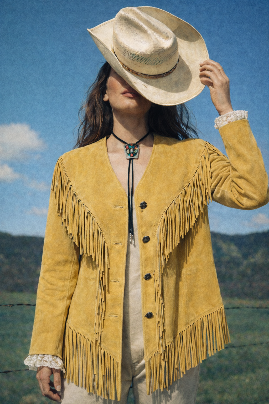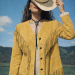 Some pieces don’t just belong to a moment — they carry one. This Cripple Creek fringe jacket is pure Western spirit, echoing classic American cowgirl style with the kind of craftsmanship that’s becoming harder to find. Designed to move with you, the flowing fringe and rich leather give this jacket that unmistakable road-trip, rodeo-ready energy that never dates.