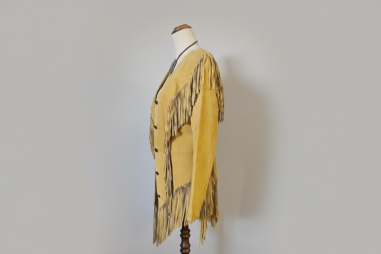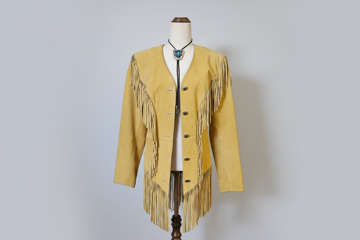 Western Fringe suede tan jacket - Cowgirl size Medium