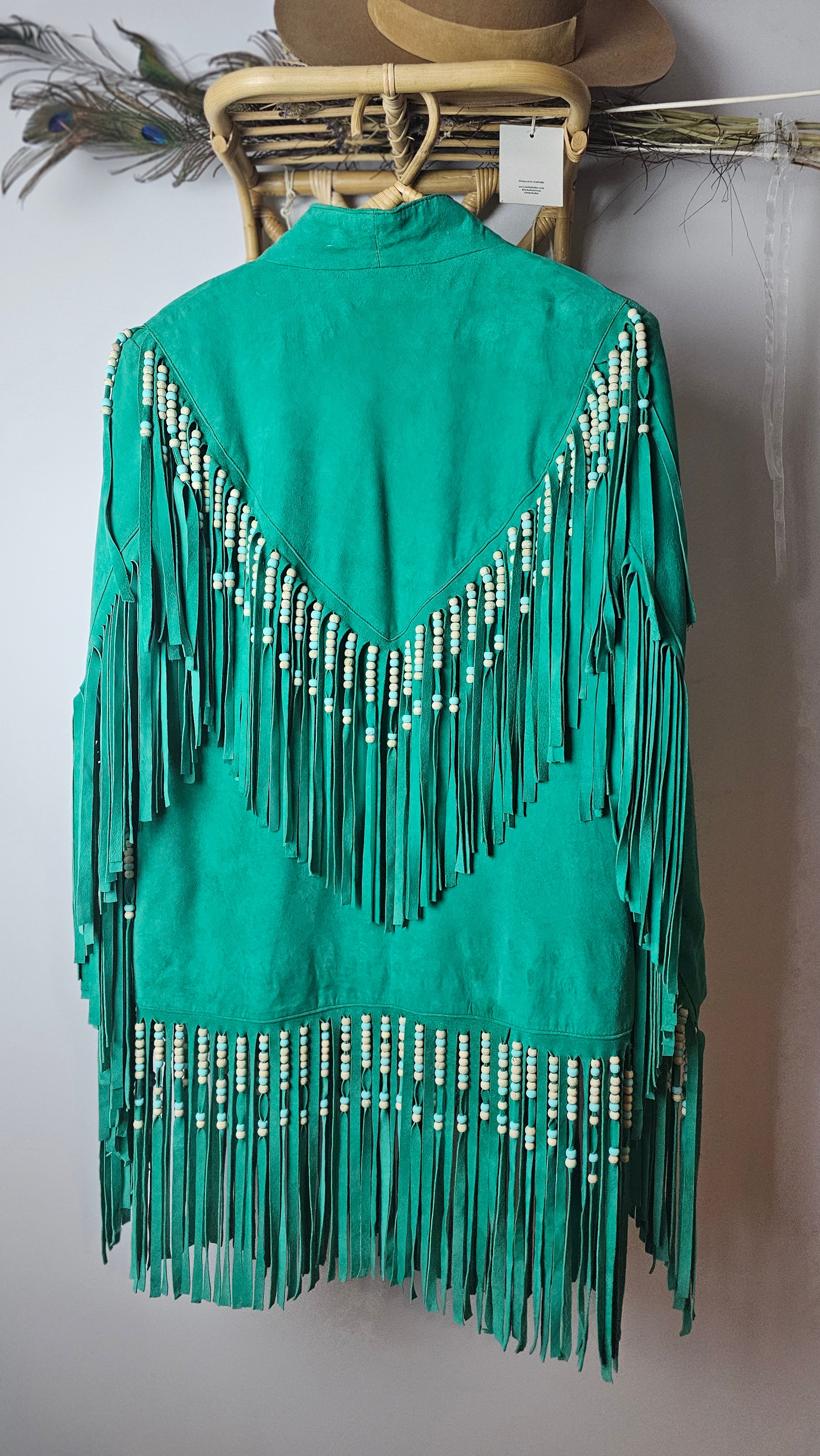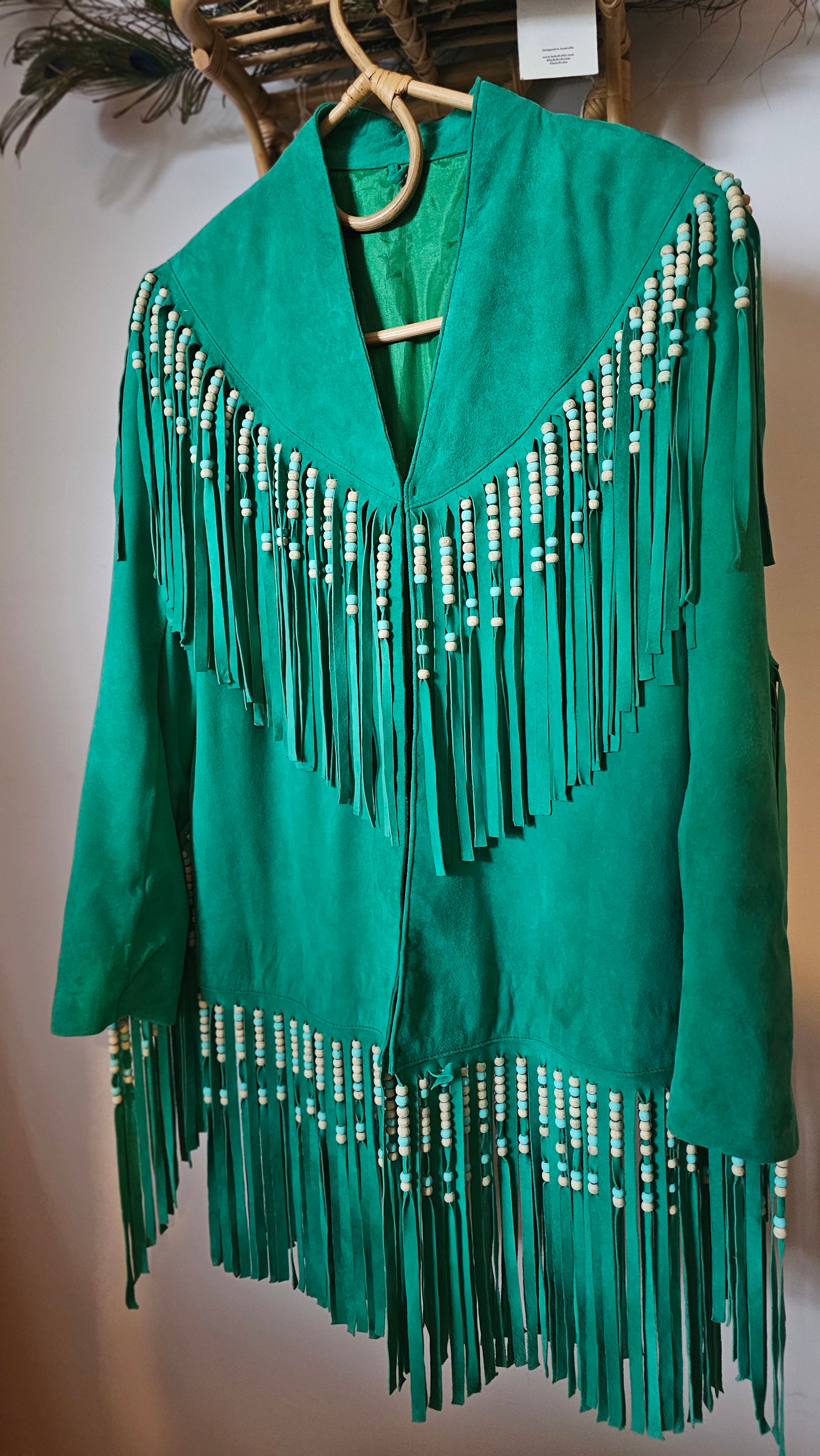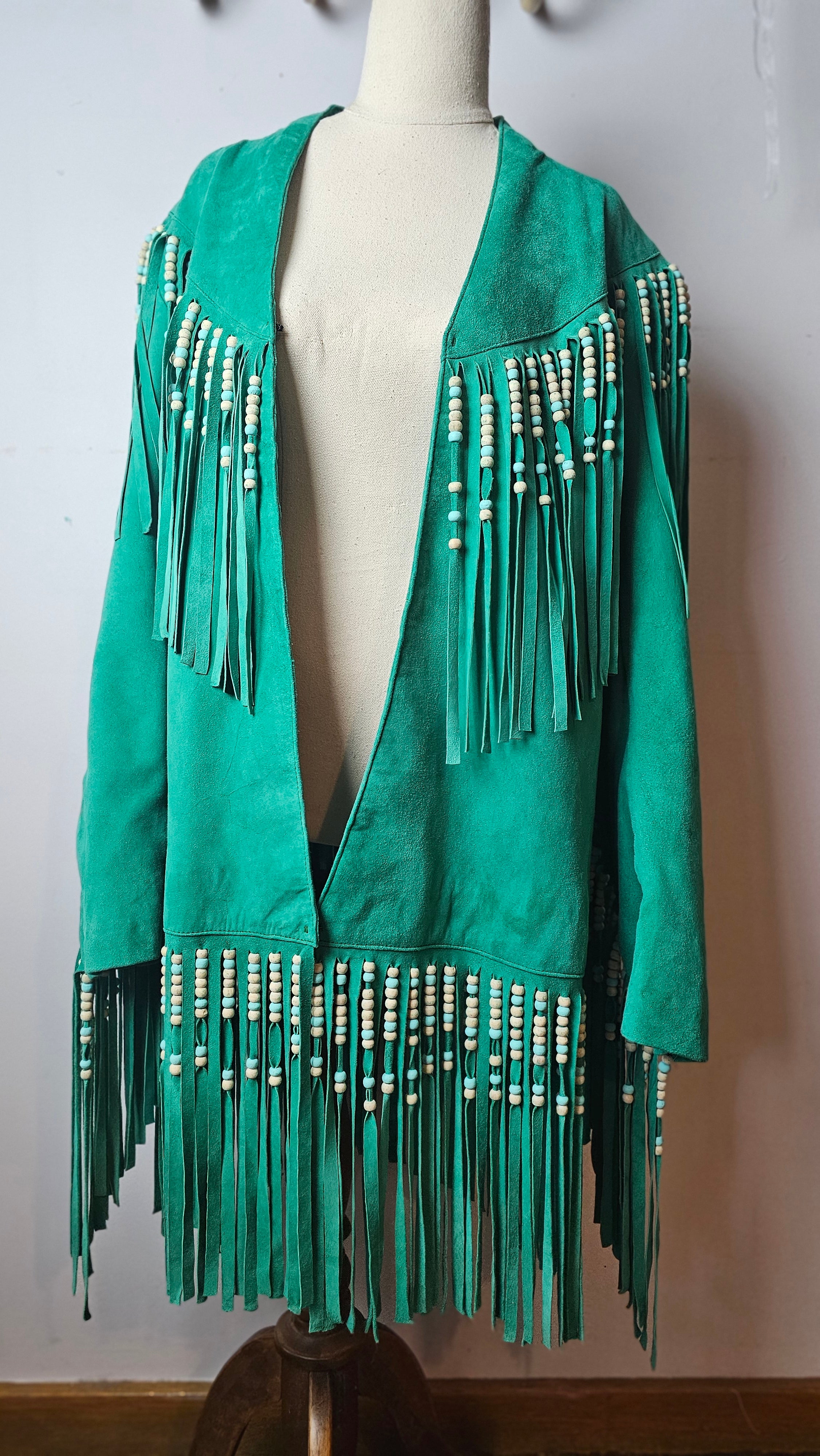 Emerald Fringe Suede Jacket – Custom Made Mexico rrp$600+