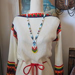 Crafted with care and rich in detail, this vintage beaded necklace brings colour, culture, and character to your collection. Style it over a simple tee or flowing dress for a bold, story-driven statement.