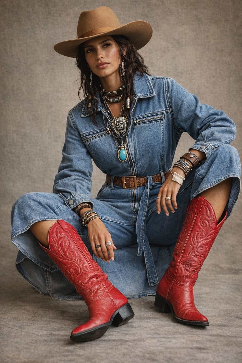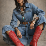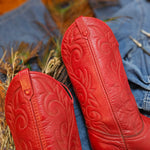 That bold, fire-red pair that instantly lifts any outfit — soft worn-in leather, classic Western stitching, and that perfect mid-height shaft. These are the kind you throw on with denim and never want to take off.