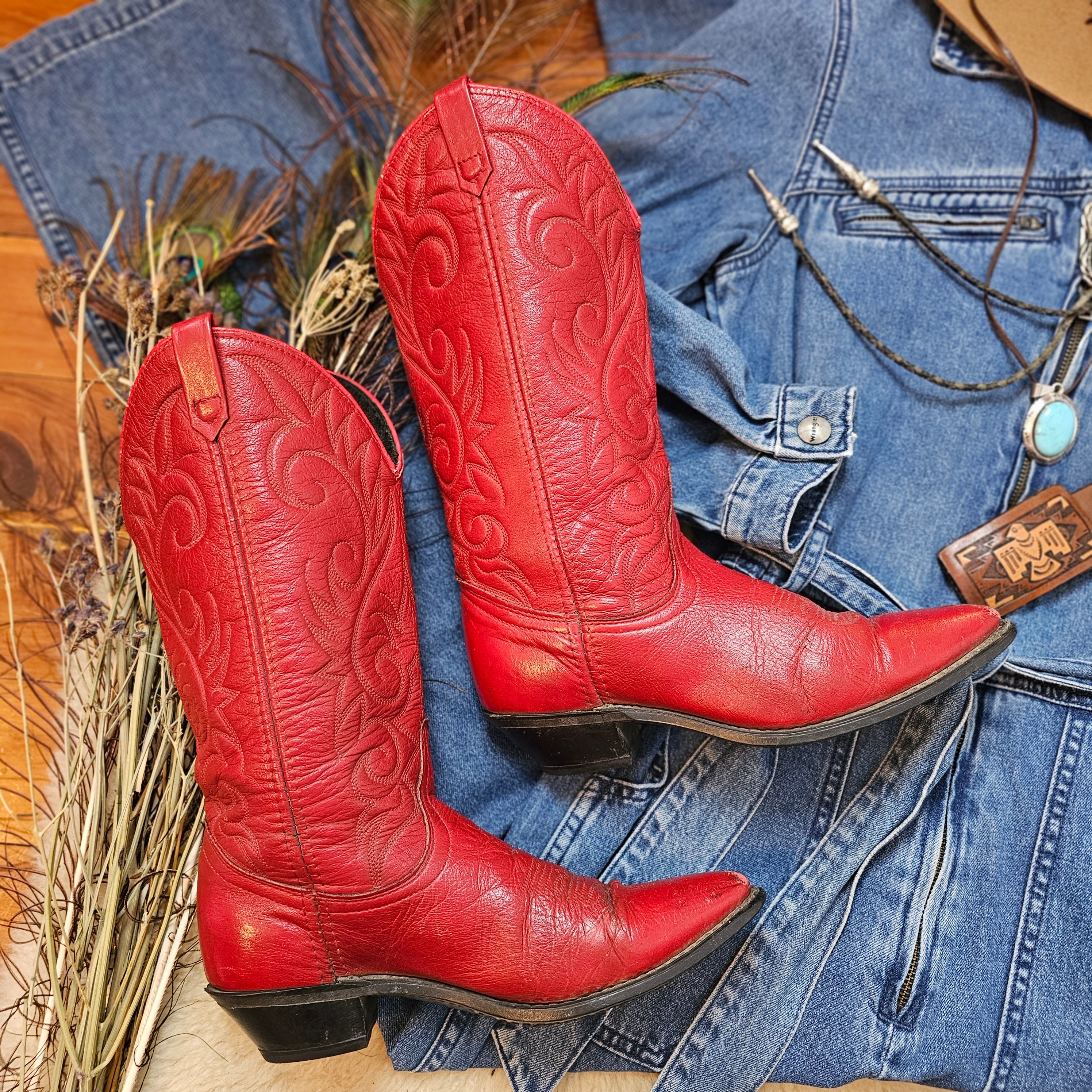 vintage red leather western boots – size 6.5 M