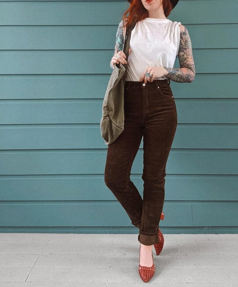 These Rolla’s chocolate corduroy pants are a must-have for fans of vintage, retro and sustainable fashion. Whether you’re dressing them up or down, they’re the perfect base for a standout outfit.