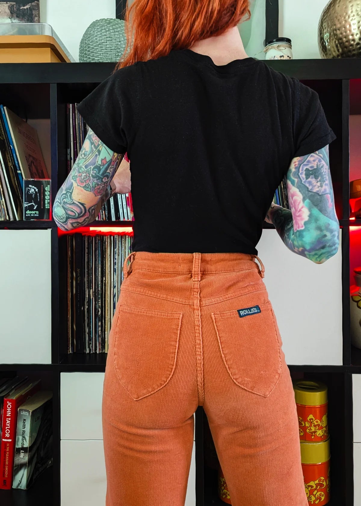 Rolla’s Original Straight Cord – Rust (Size 27 / AU 9) BNWT High-rise with a slim straight leg Slightly relaxed through the seat for comfort Iconic Rolla’s back pockets & design details Specially angled back shaping for a flattering fit Crafted from soft, ribbed corduroy (99% Cotton, 1% Elastane) Super soft & stretchy while keeping their shape Zip closure with silver-toned trims Tonal stitching for a classic finish Measurements (size 27 / AU 9): Waist: 73 cm Length: 100 cm Rise: 28 cm (11") Inleg: 72 cm (28") Hem: 38 cm (15") A flattering alternative to denim, designed to hug your curves and fit true to size.