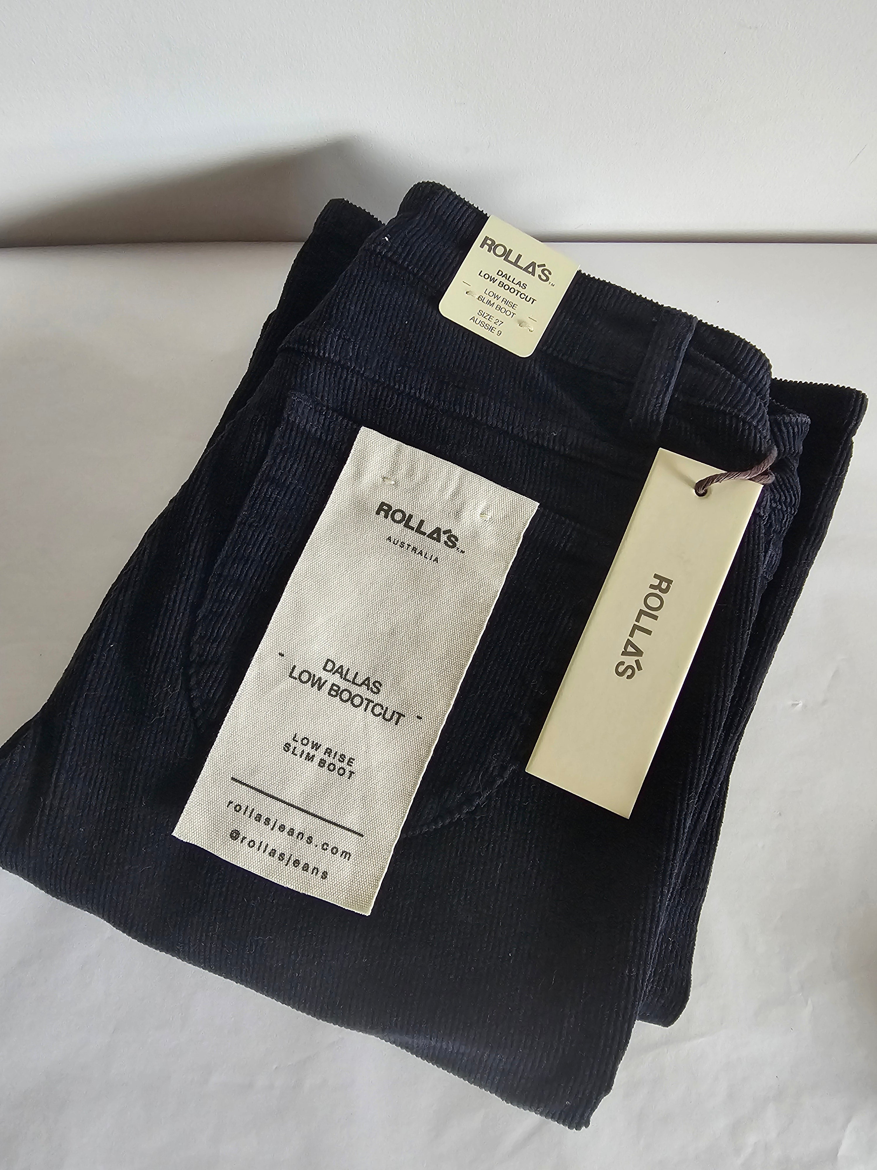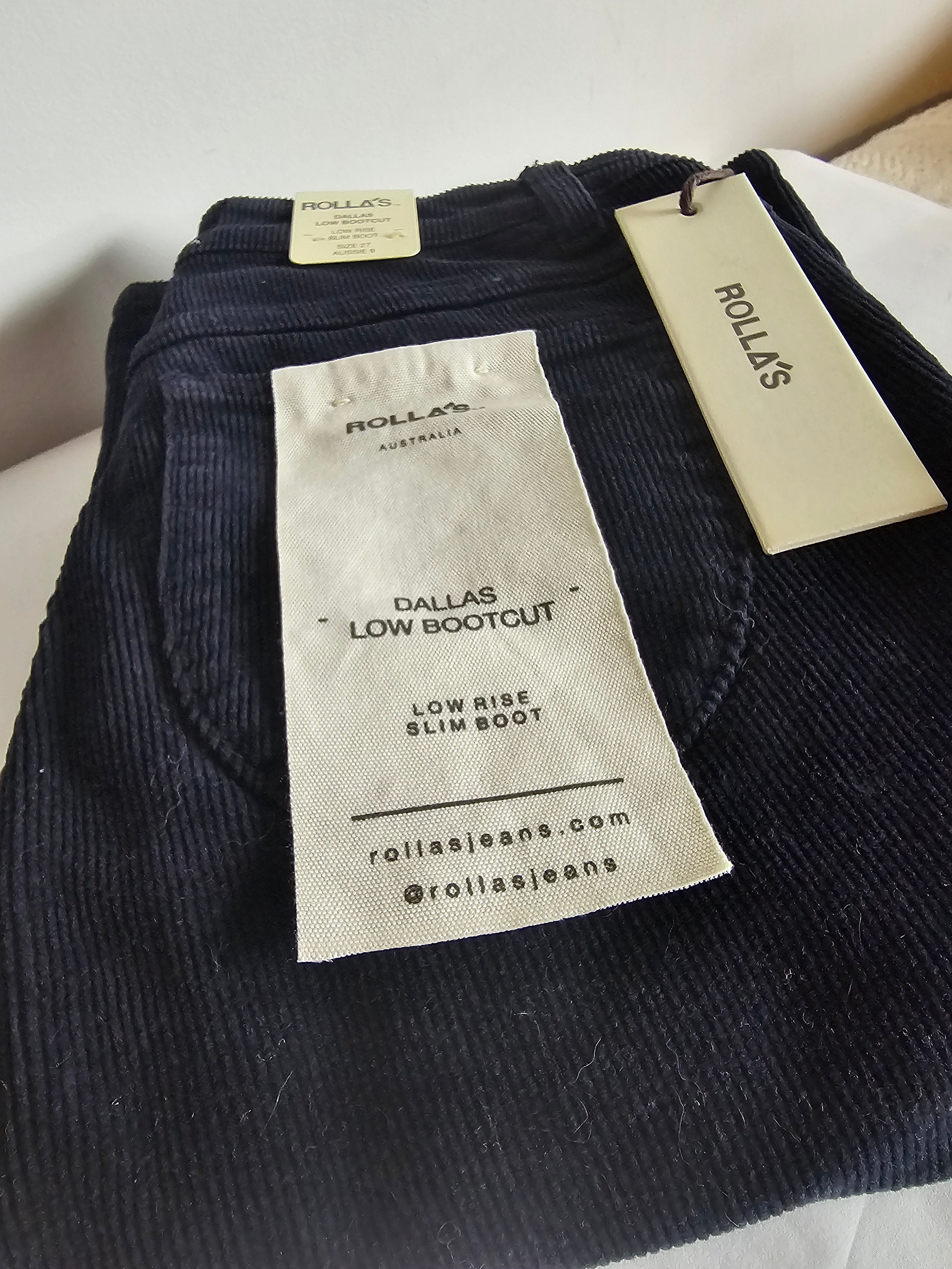Rollas Dallas low Bootcut cords 27/9 Navy Blue New With Tags