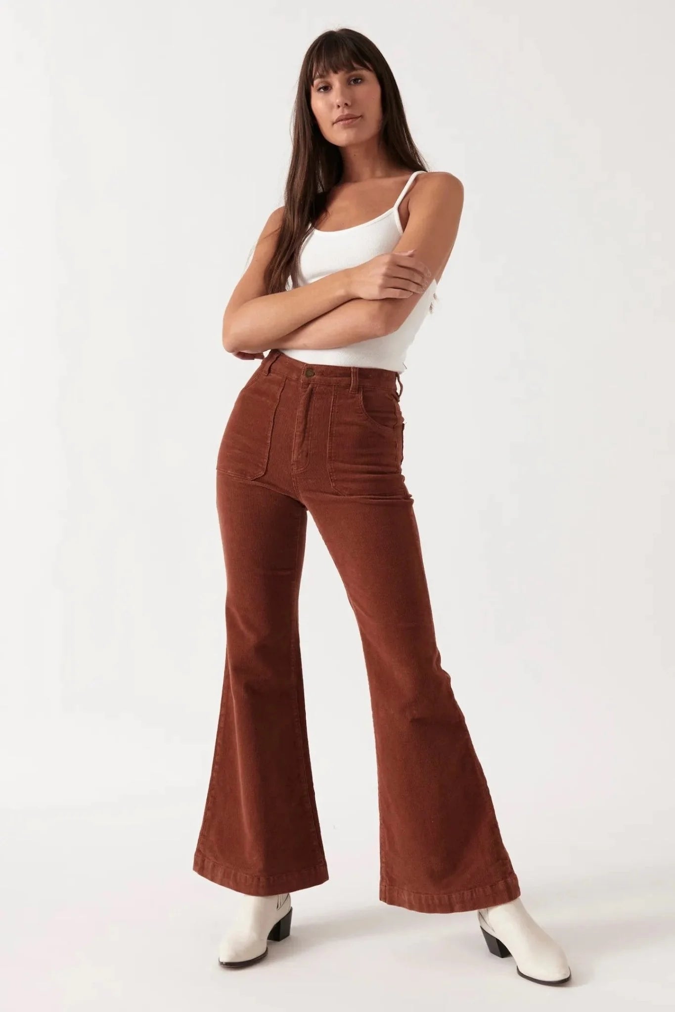 Rolla's Eastcoast Flare Cord Jeans – Chestnut | Size 33 / AU 15 | High Rise
