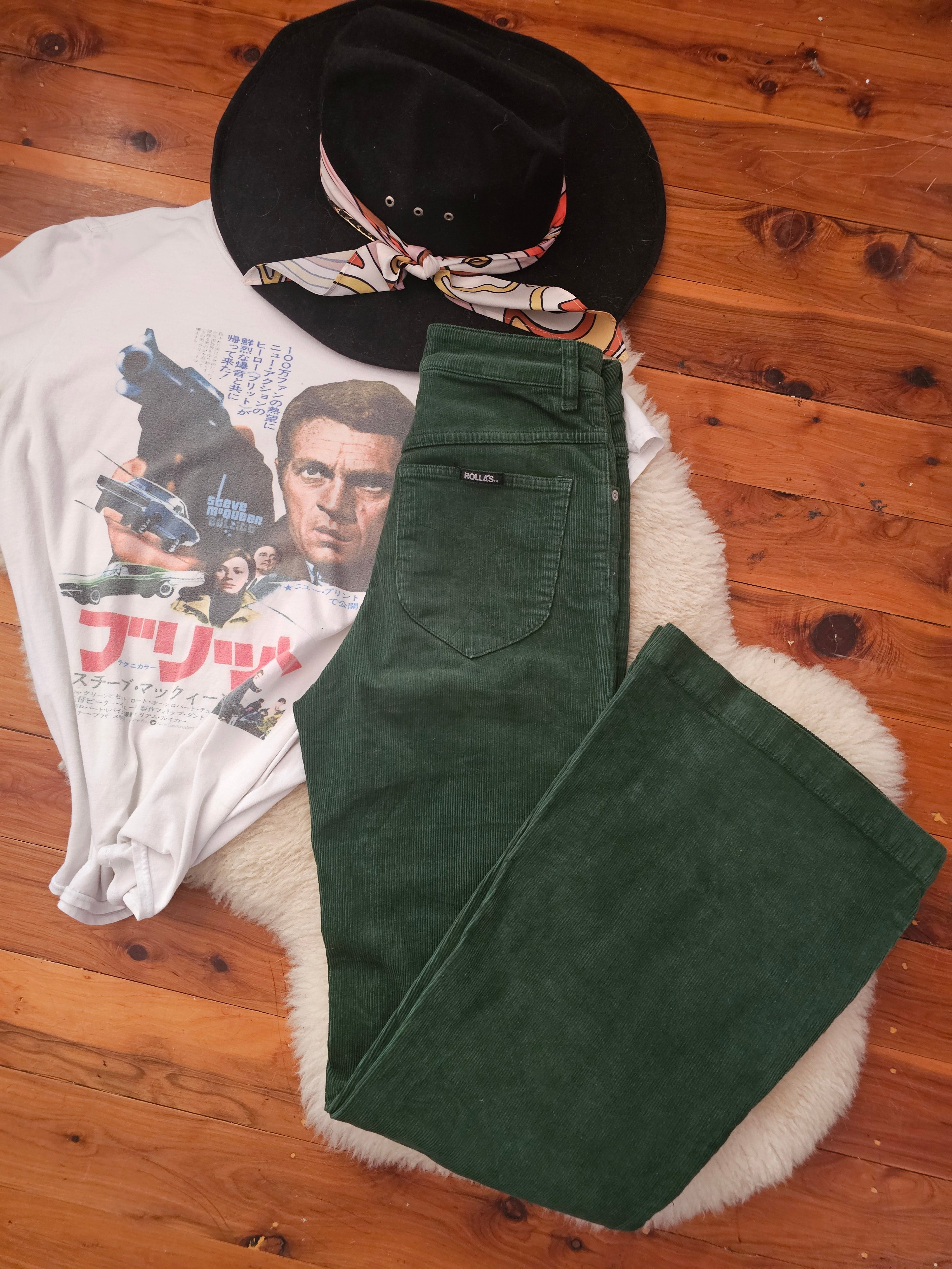 Rolla’s Basil Green Corduroy Flare Pants – Size 26 / AU 8
